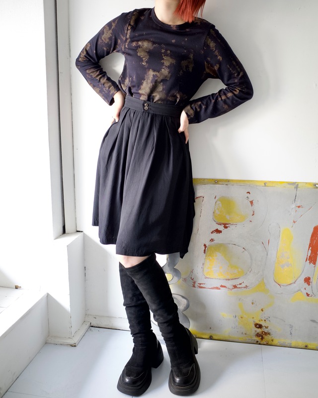 こちらもCOMME des GARÇONSより素敵アイテム。 一見スカートのようですが、実はハーフパンツです。 ポケットの下にたっぷり入ったタックが、 布を空気ごと抱え込み、まるで蝶のように広がります。 動くたびヒラリヒラリと舞い遊ぶように揺れて、 パンツなのにスカートのようなドレープが生まれるのが一番の魅力。 ただしウエストが細めなので、 もし入るようであれば男性にも是非お勧めしたい1着です。 model:161cm size:25 実寸 ウエスト : 約31.0cm 股上 : 約38.0cm 股下 : 約22.0cm わたり幅 : 約58.0cm 裾幅 : 約58.0cm ~condition~ A:目立った傷や汚れなし B:やや傷や汚れあり C:傷や汚れあり [B] ウエストにほつれ、股上に小さな穴がございます。 取扱店舗:memento下北沢 *店頭と在庫を共有しておりますのでご購入後に欠品の場合がございます。 また、お支払いの処理が完了した時点で店頭から在庫を確保いたしますので、入金待ちの段階では店頭併売中となりますのであらかじめご了承ください。 ※商品の素材等よっては実寸表記に若干の誤差が生じる場合がございますのであらかじめご了承ください。