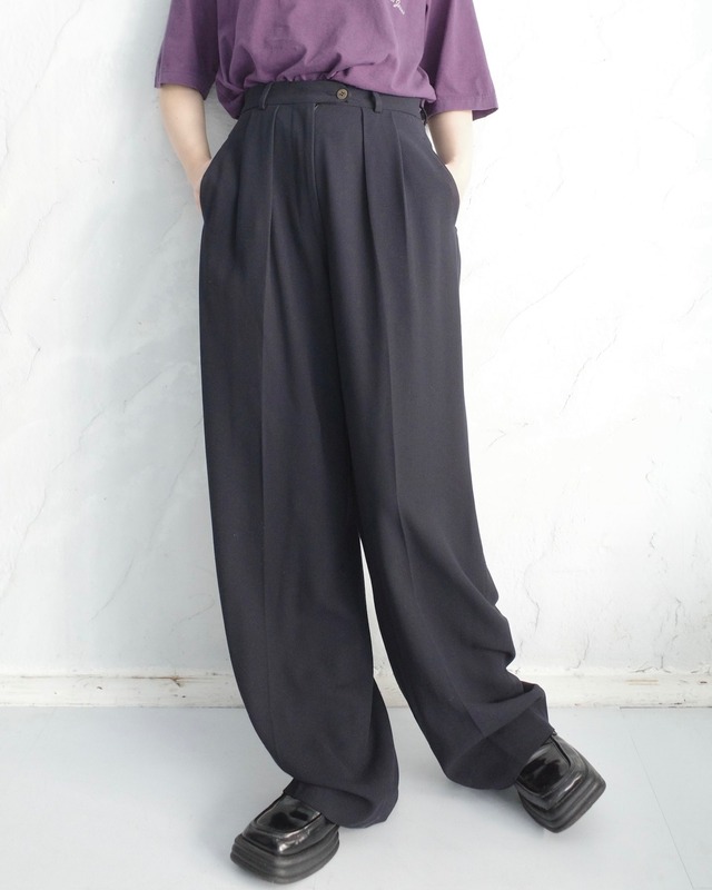 柔らかくストンと落ちる2タックのスラックス。 裾まであまりテーパードのかからないシルエット。 私共含め顔馴染みの方々からの要望に応え、 選り好みに選り好んだ末お出しした個体です。 レディースサイズではありますが、 ウエストの細い方や数少ない女性のお客様。 大きなウエストを絞らずに履ける子が来ましたよ。 size:40 model:161cm 実寸 ウエスト : 約32.0cm 股上 : 約32.0cm 股下 : 約75.0cm わたり幅 : 約31.0cm 裾幅 : 約25.0cm ~condition~ A:目立った傷や汚れなし B:やや傷や汚れあり C:傷や汚れあり [A] 取扱店舗:memento下北沢 ※商品の素材等よっては実寸表記に若干の誤差が生じる場合がございますのであらかじめご了承ください。