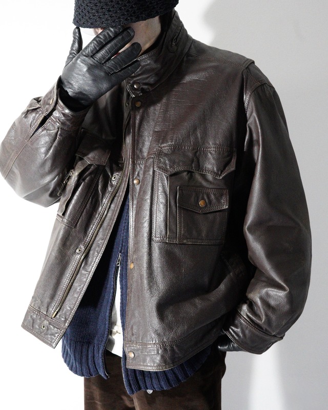 Vintage Lamb Leather Jacket Italy イタリア製の超上質レザージャケット。 静かに反射する光は色気ダダ漏れ注意報です。 無駄を削ぎ落としたミニマルなデザインのため、 より一層レザーの質に左右される個体ですが、 もう文句なしの究極の逸品かなと思います。 SIZE:L model:178cm 実寸 着丈 : 約71.5cm 肩幅 : 約50.5cm 身幅 : 約65.0cm 袖丈 : 約67.5cm ~condition~ A:目立った傷や汚れなし B:やや傷や汚れあり C:傷や汚れあり [B] ※袖リブにダメージ、襟裏に色褪せがございます。 取扱店舗: memento 1st *店頭と在庫を共有しておりますのでご購入後に欠品の場合がございます。 また、お支払いの処理が完了した時点で店頭から在庫を確保いたしますので、入金待ちの段階では店頭併売中となりますのであらかじめご了承ください。 ※商品の素材等よっては実寸表記に若干の誤差が生じる場合がございますのであらかじめご了承ください。
