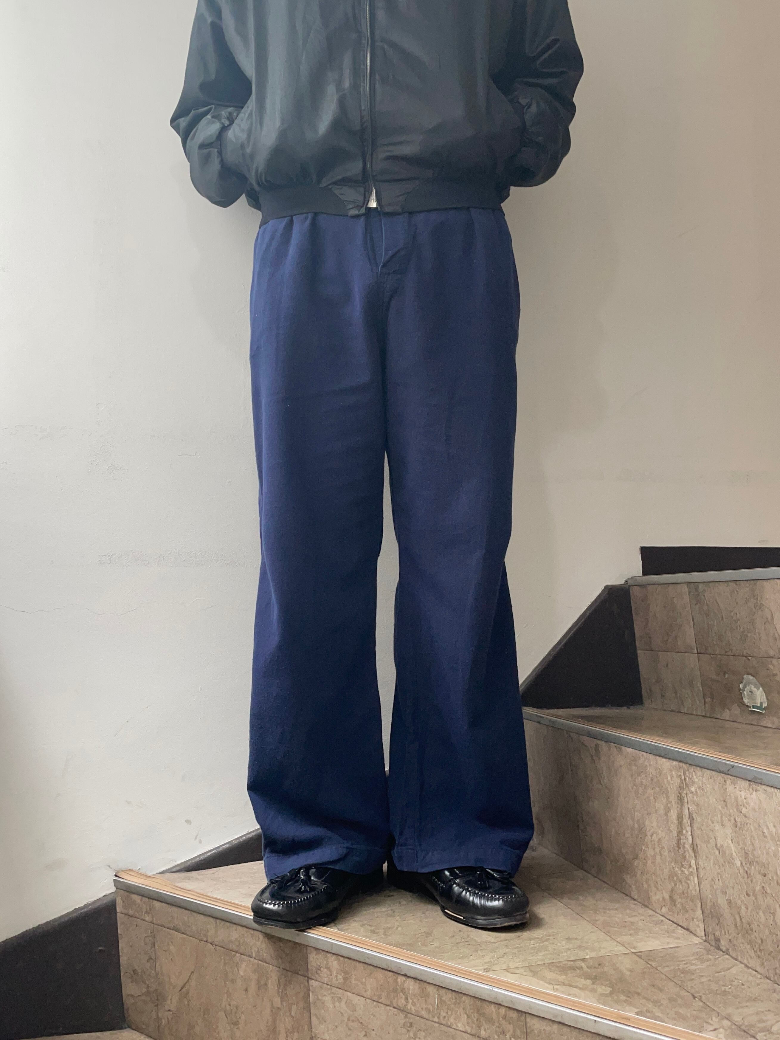 ネイビーで薄手のコットン生地。いくらでも履いていたくなるような履き心地です。