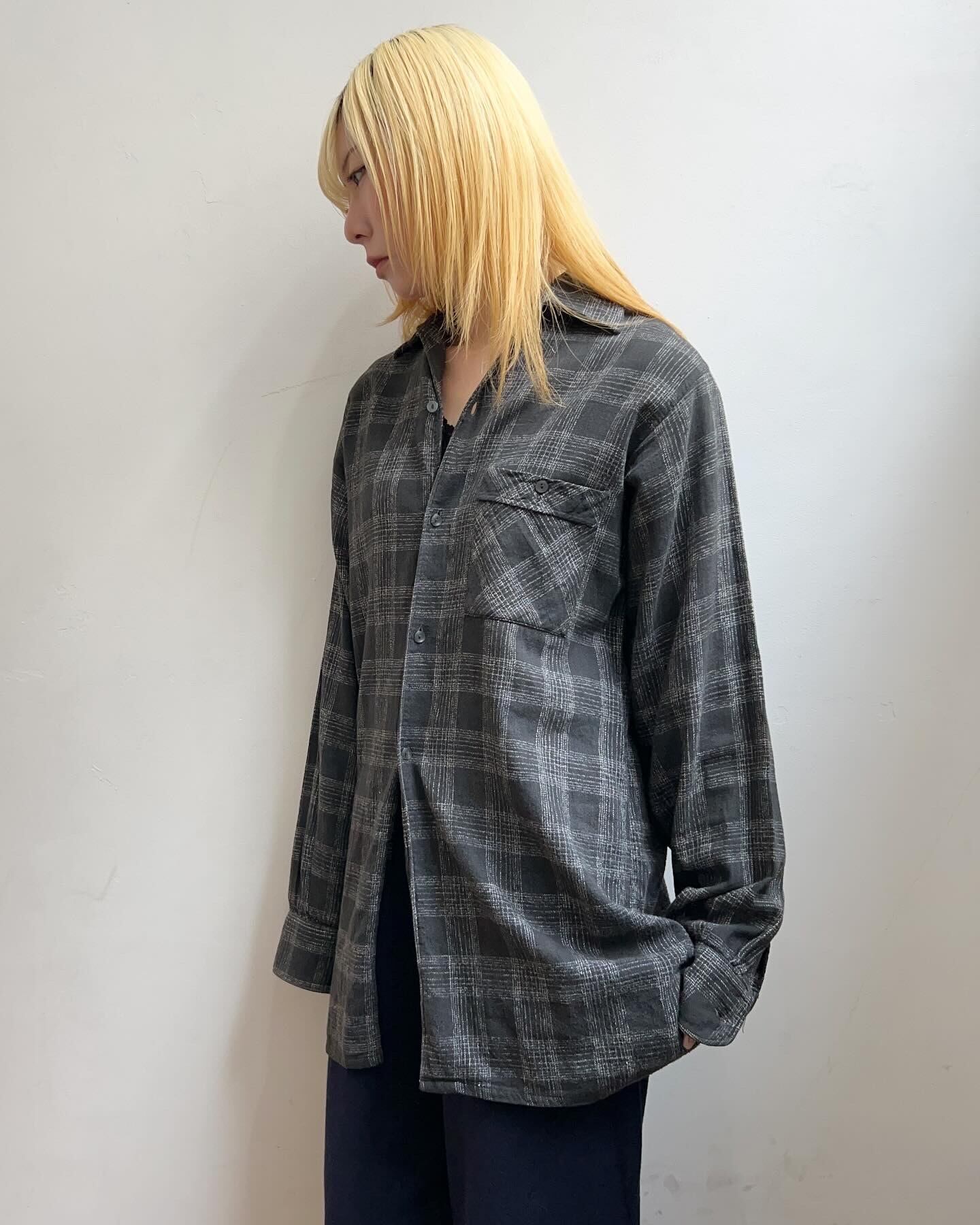 古めのチェックシャツ。