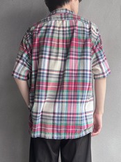 赤を基調にしたマドラスチェックを、少しくすませたようなトーンで構成した1着。