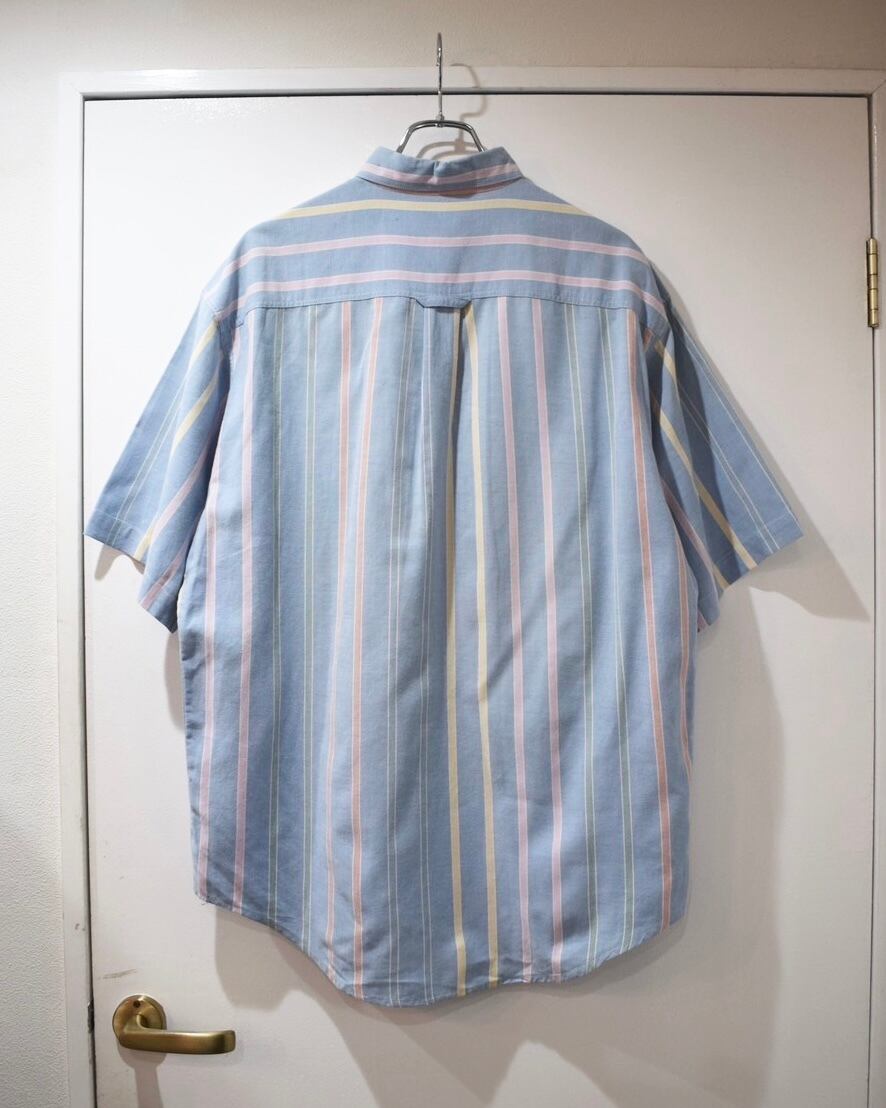 夏らしい爽やかなカラーのストライプシャツ。