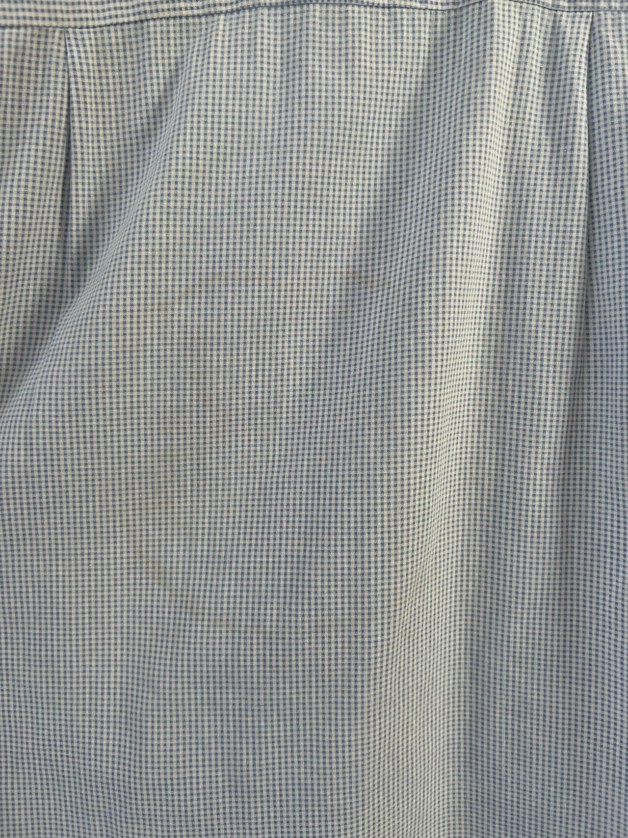 白に水色のギンガムチェック柄で、清潔感とクラシカルな雰囲気が魅力の一枚です。