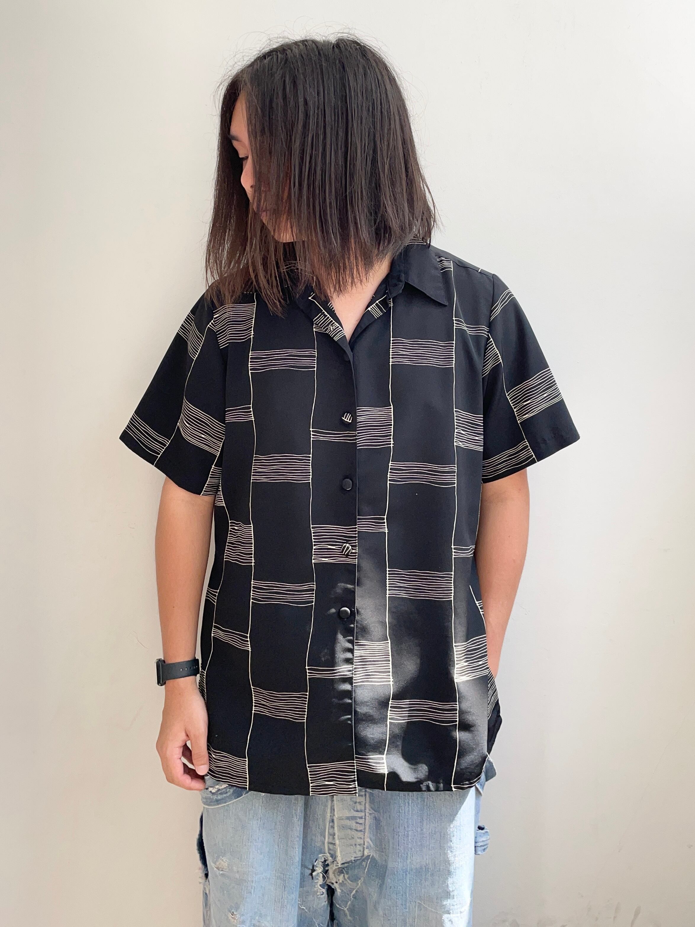 手書きのような線が特徴的なデザインシャツ。