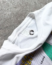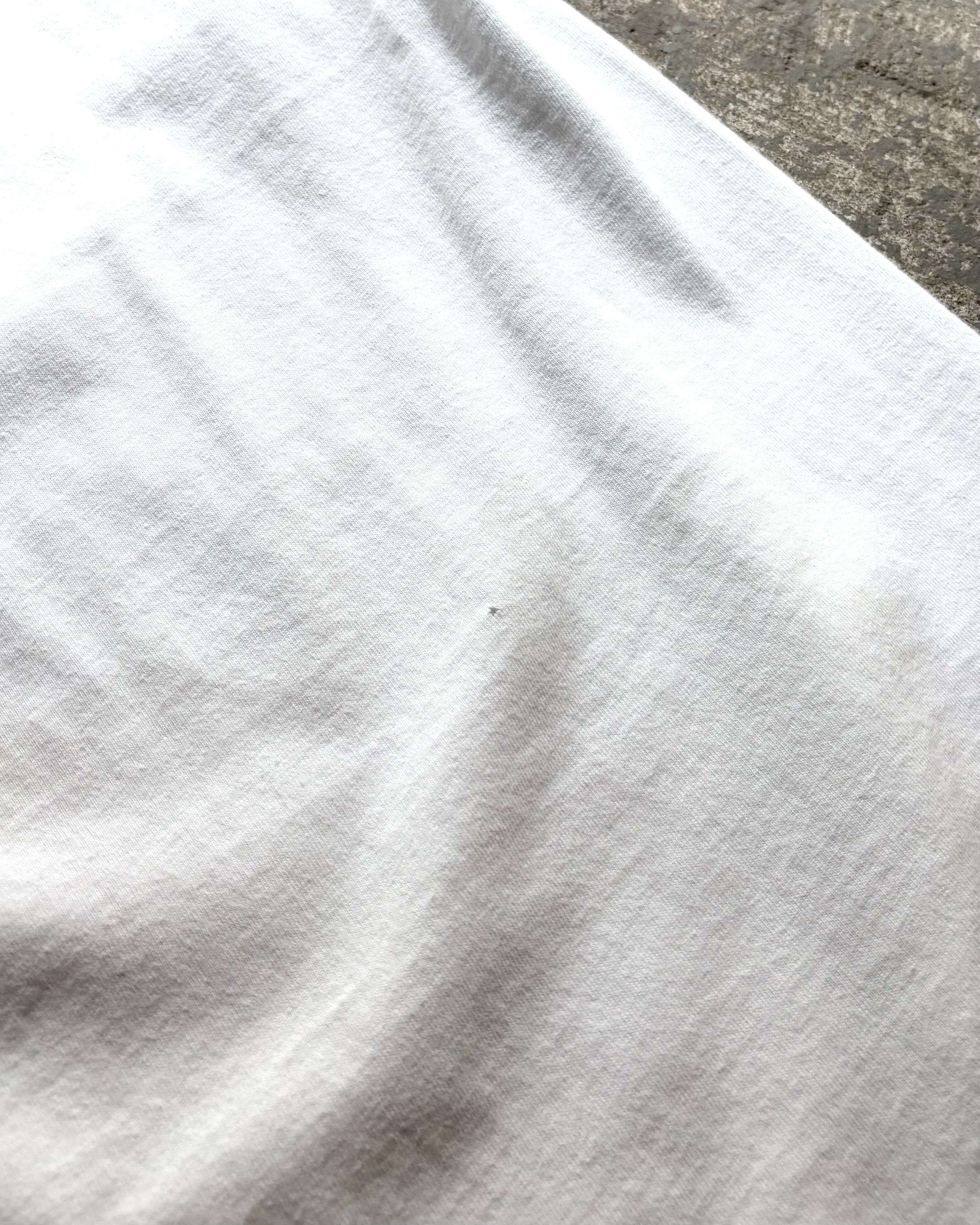背タグのスレと首元のヨレ。フロント、背面共に小穴がございます。