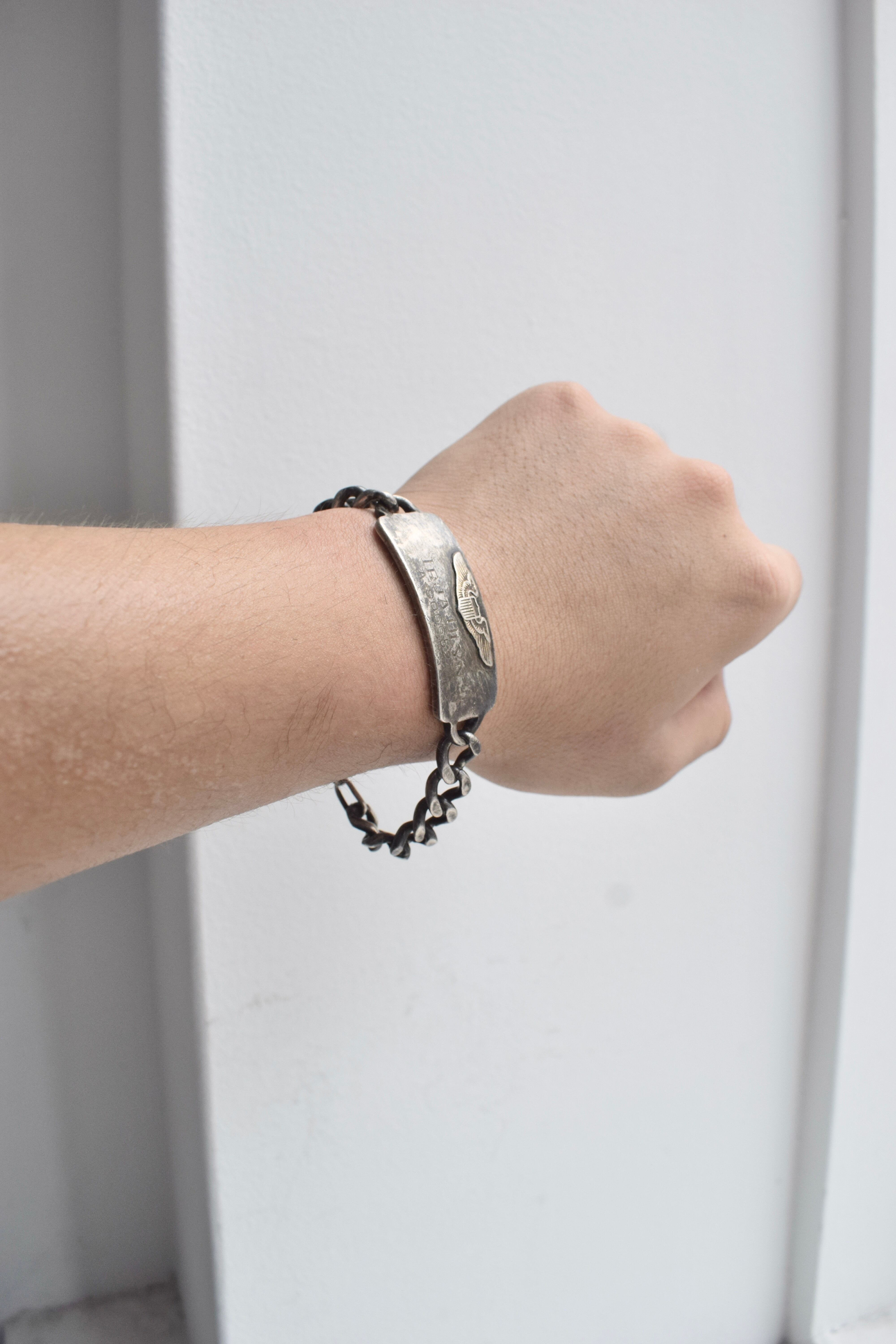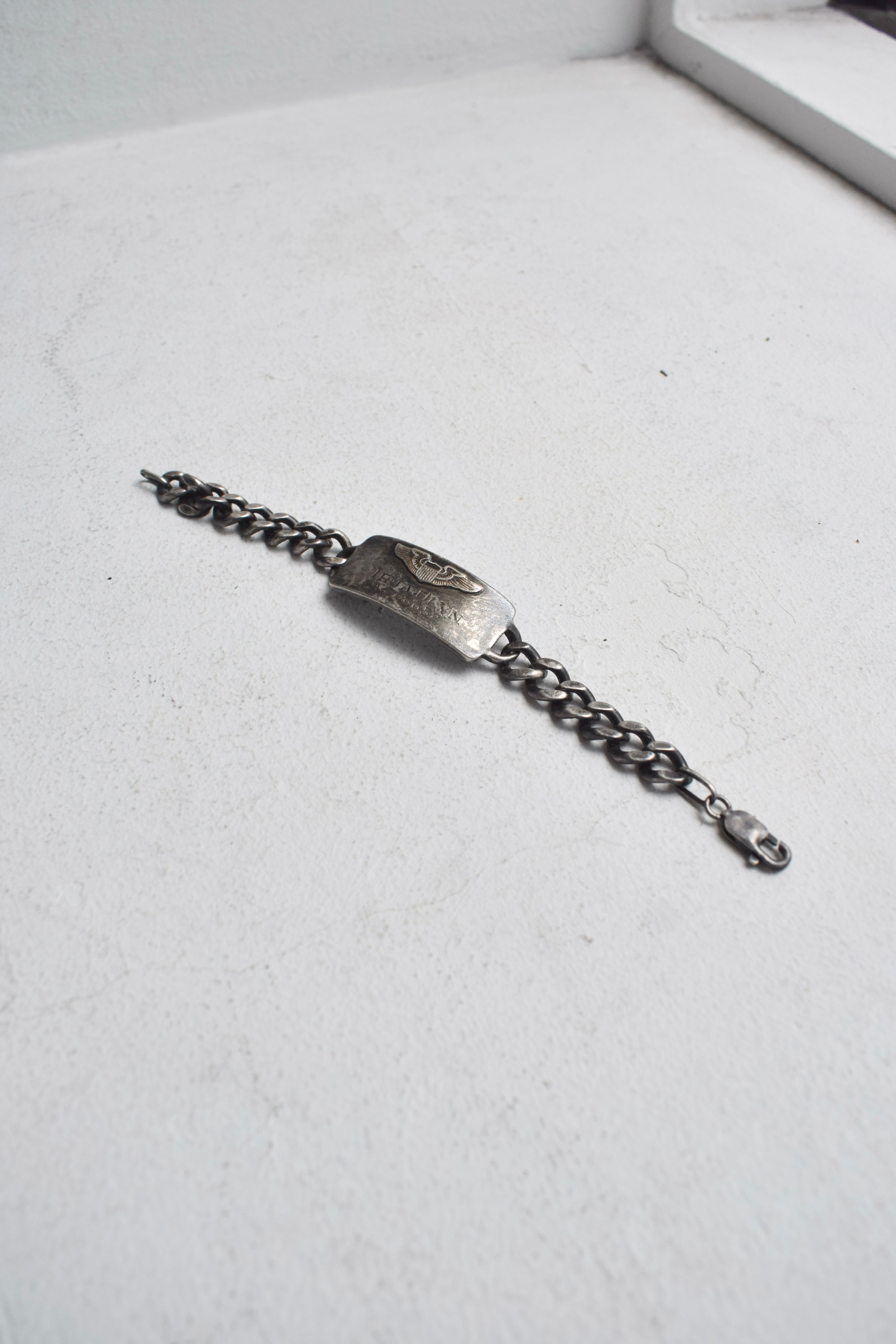 IDブレスレットと言われており、ドックタグとは別に身元確認やお守りとして着用されていたものになります。