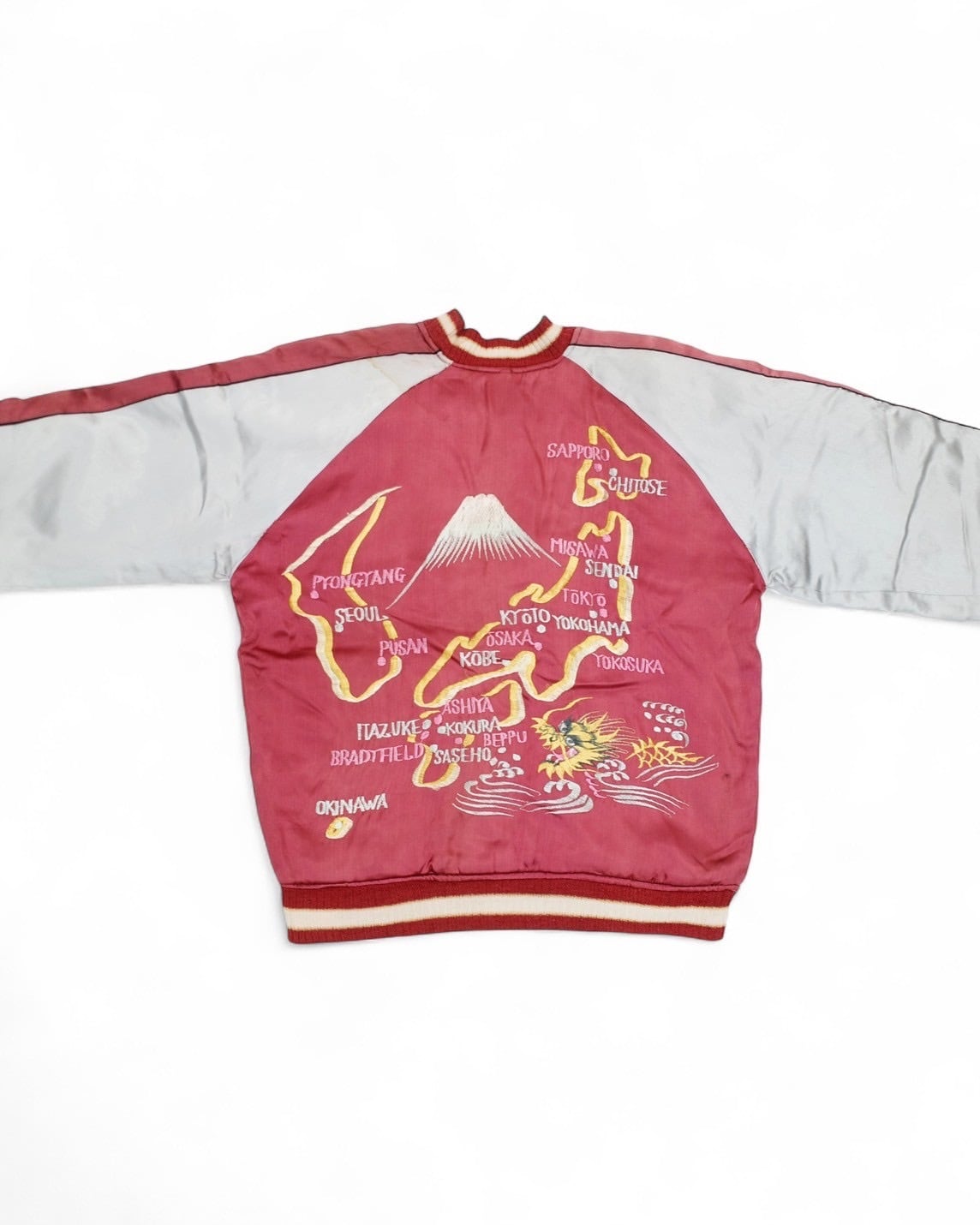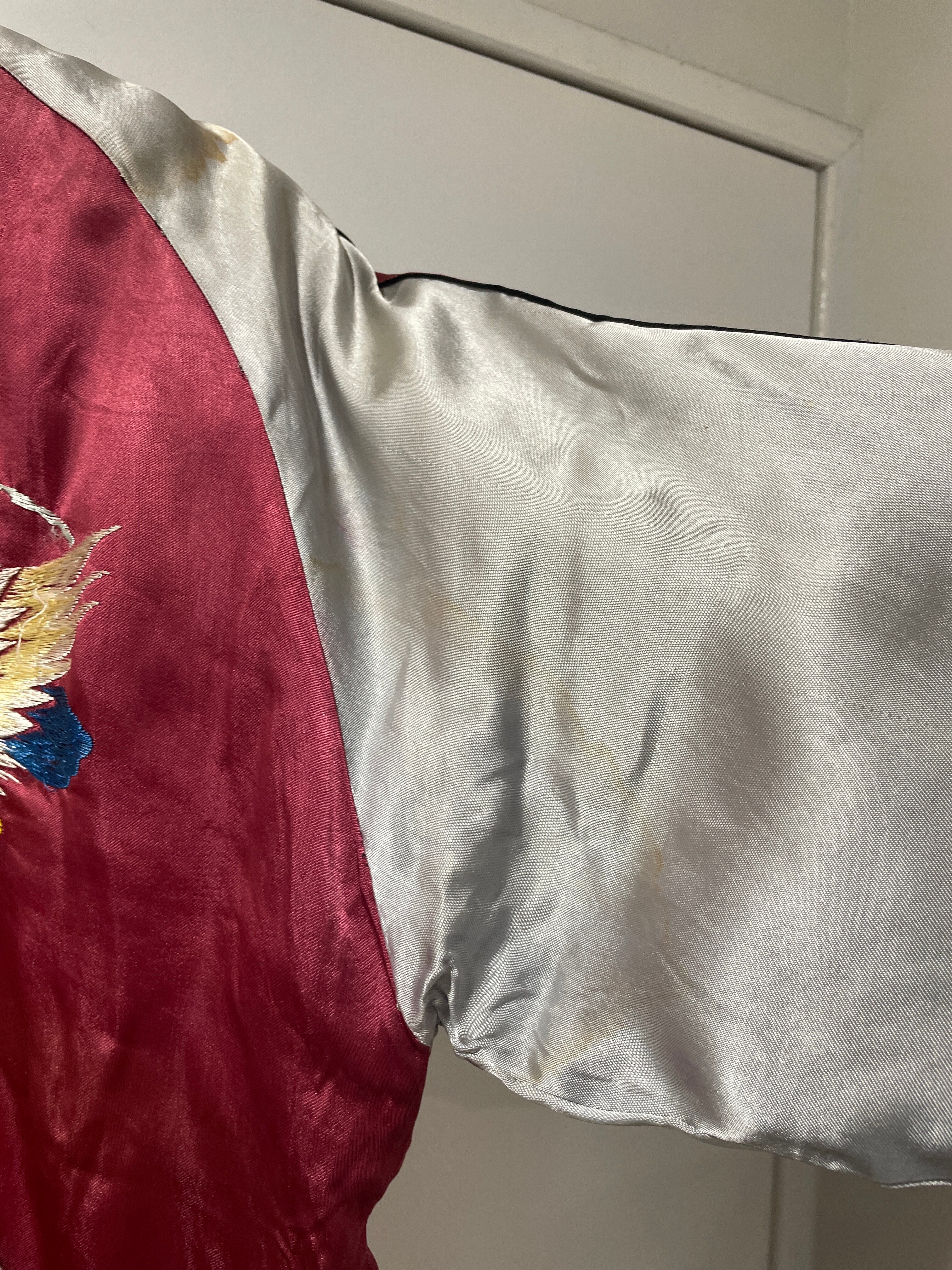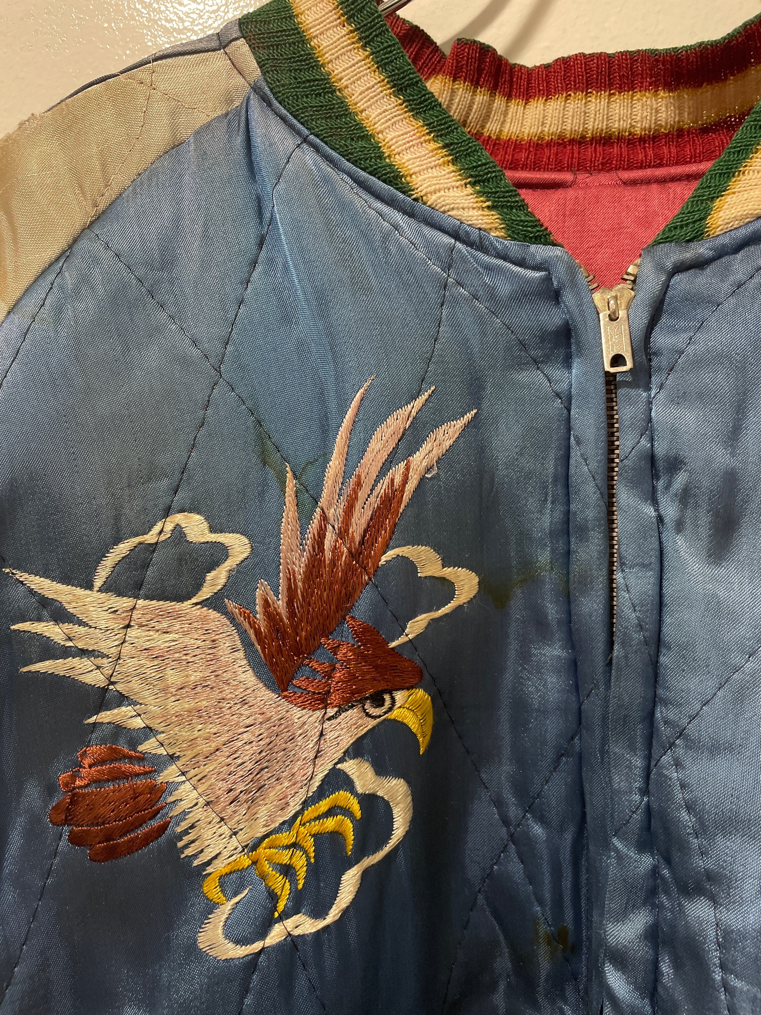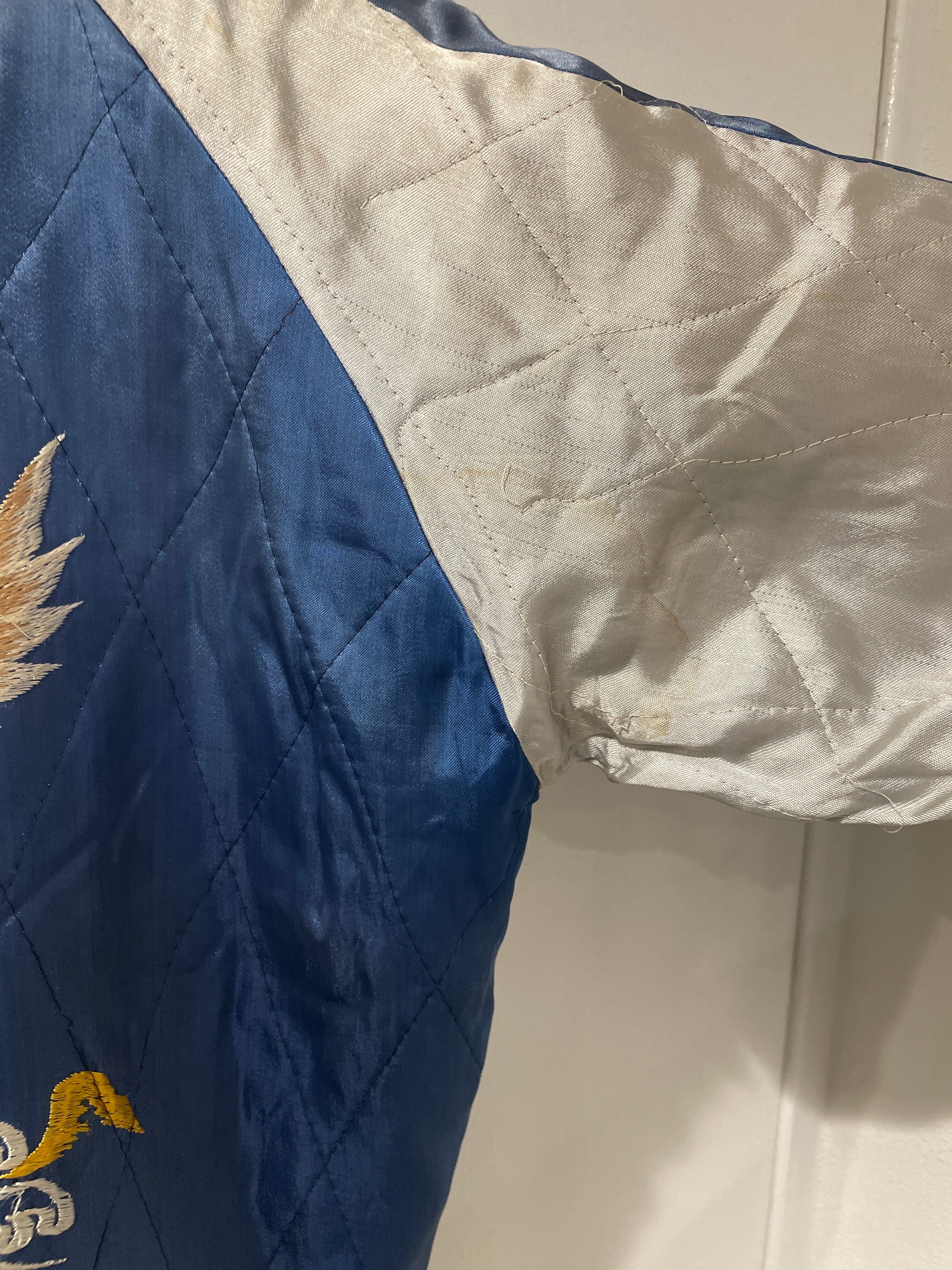 スカジャンはサイズ問題が付き物ですが、こちらの個体はなんと言ってもでかい。L-XLくらいあります。