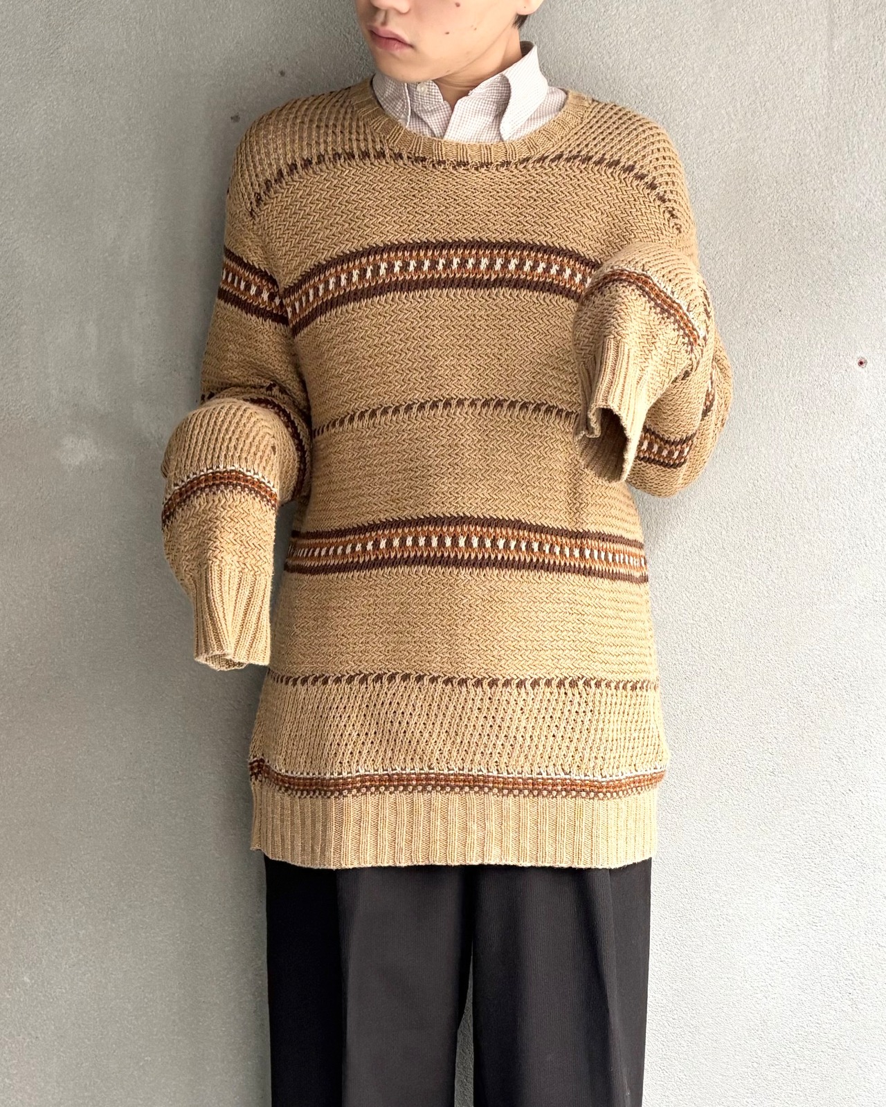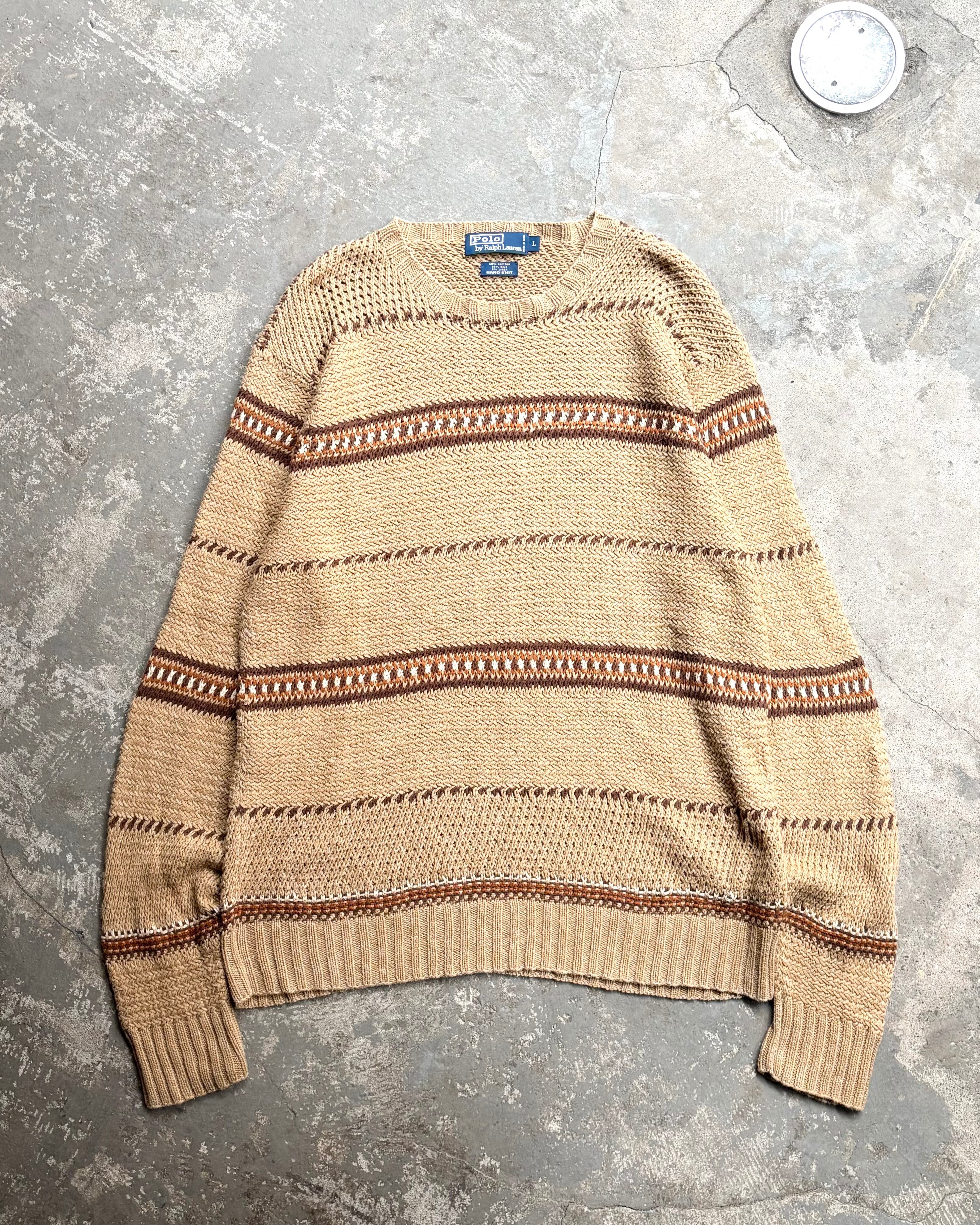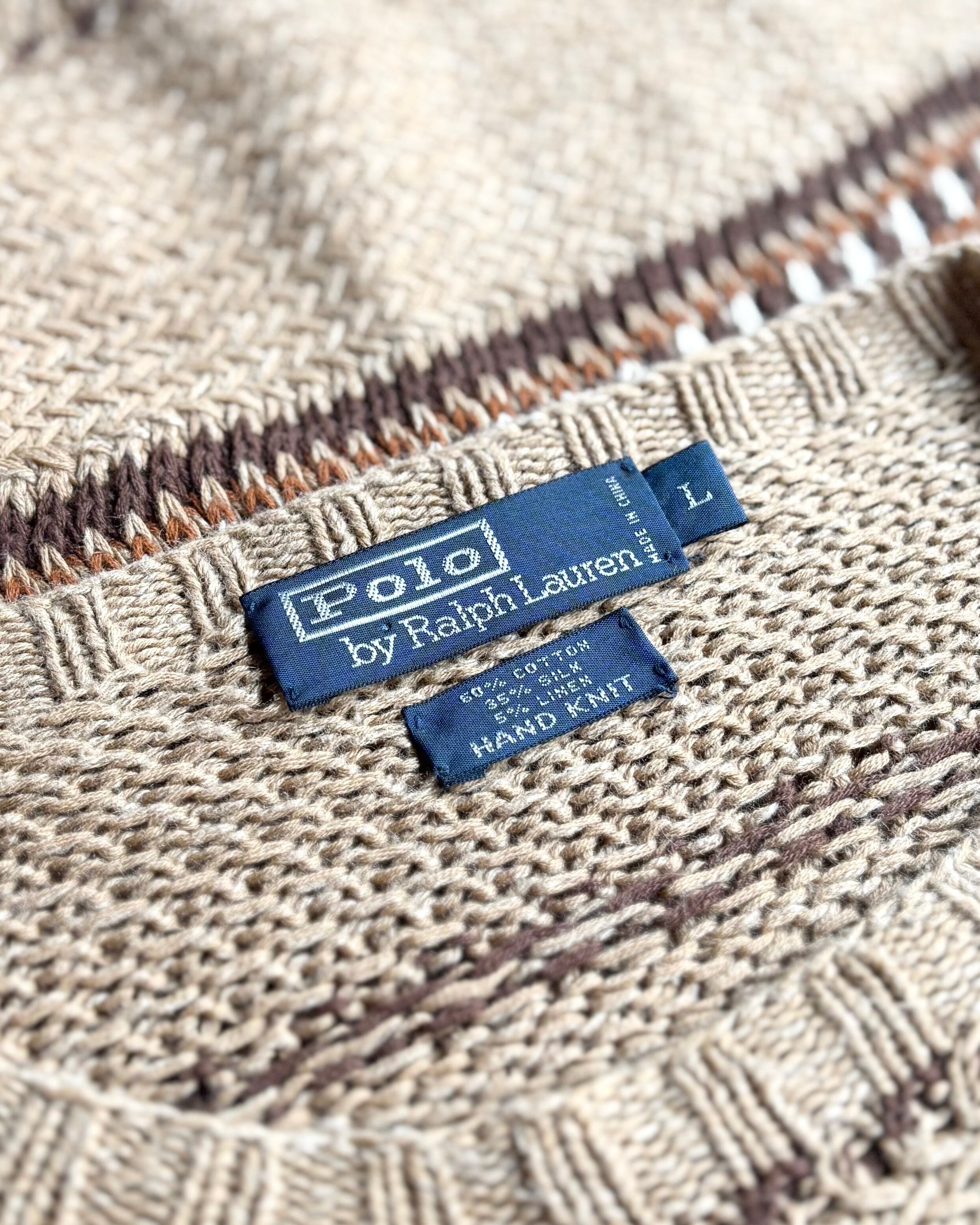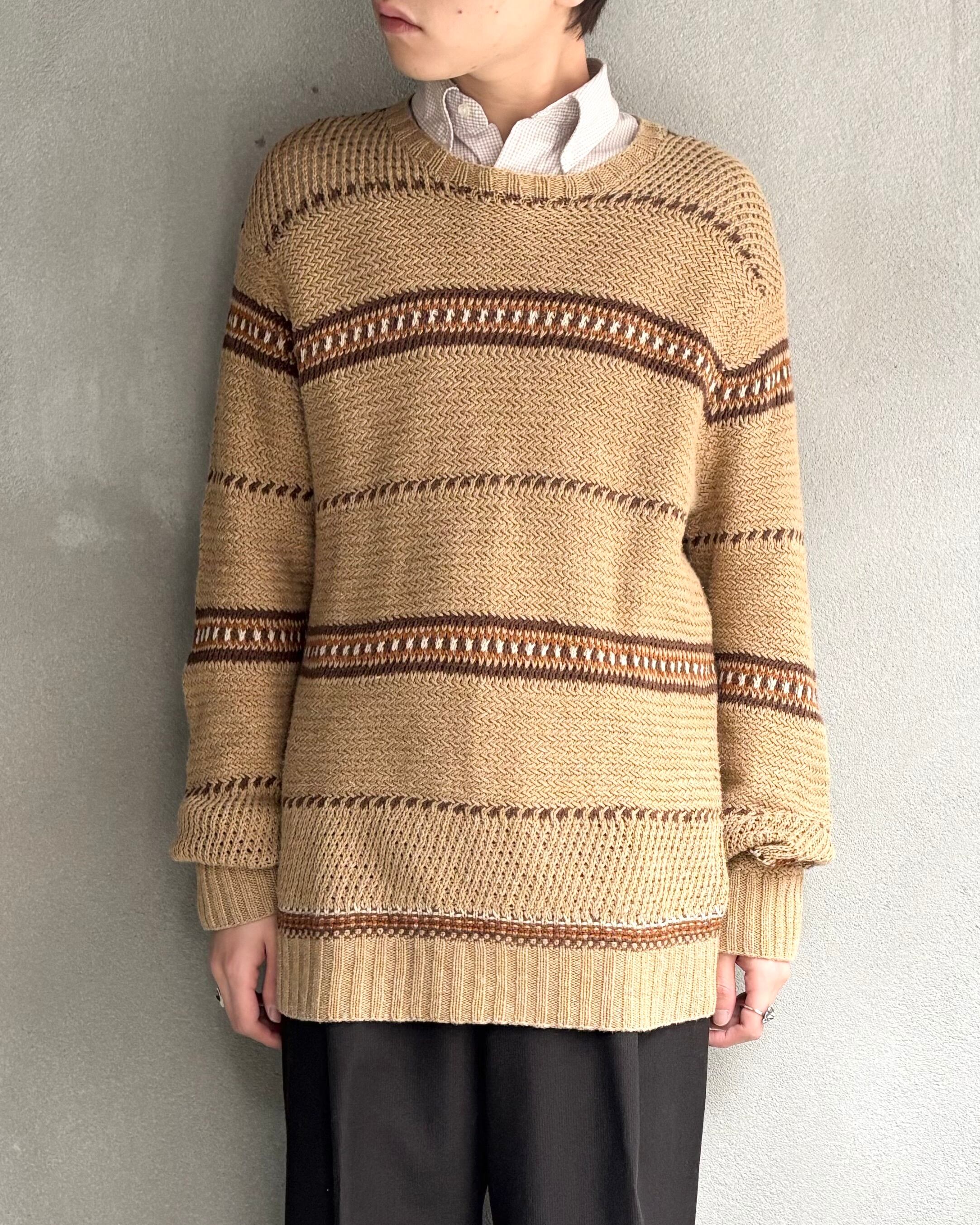 【90s Polo by Ralph Lauren】cotton × silk × linen border hand knit