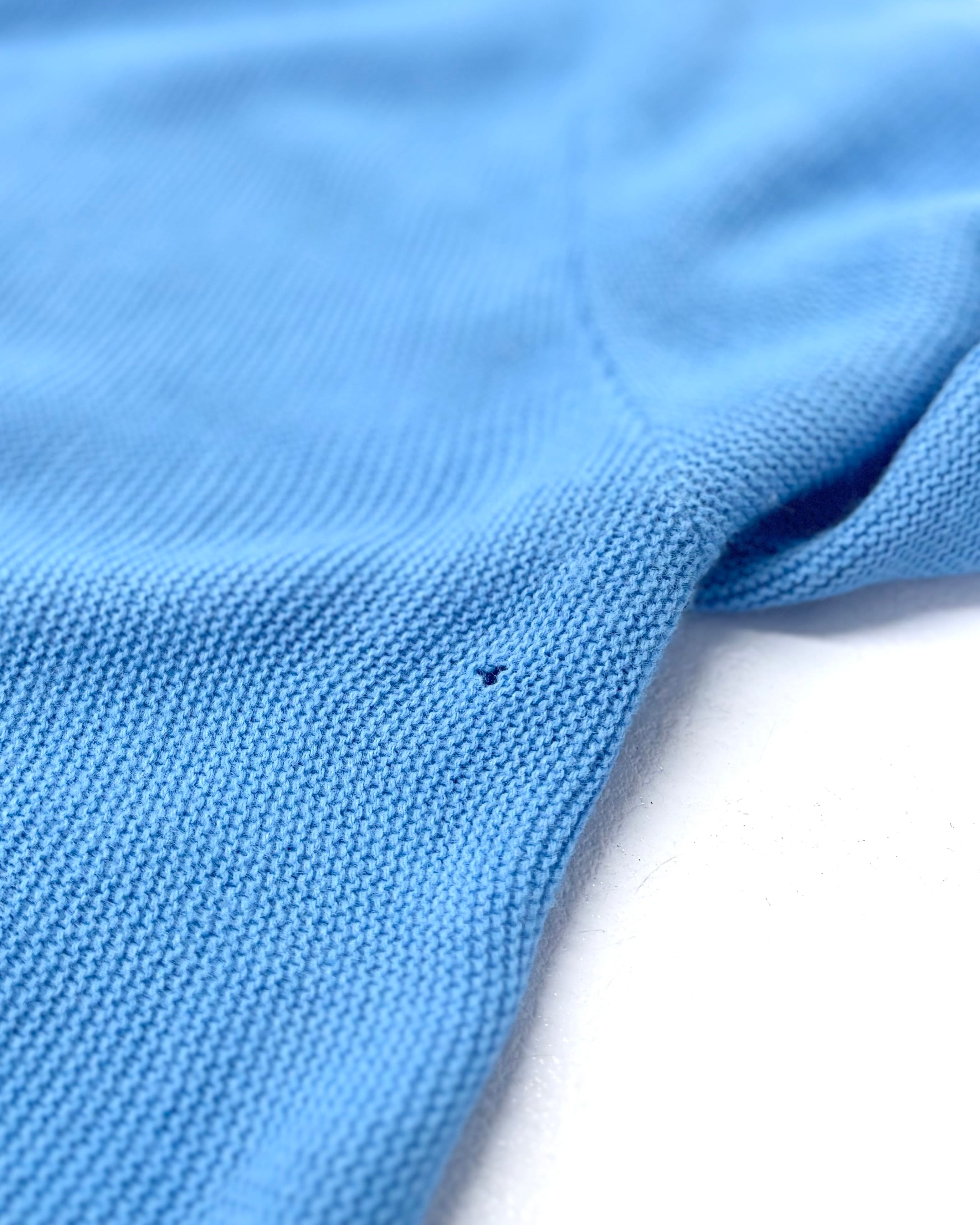左ポケット付近、フロント左脇、左袖中間部あたりにそれぞれ小穴がございます。また、バック左脇付近、右袖中間部あたりに目立たぬシミ汚れがございます。