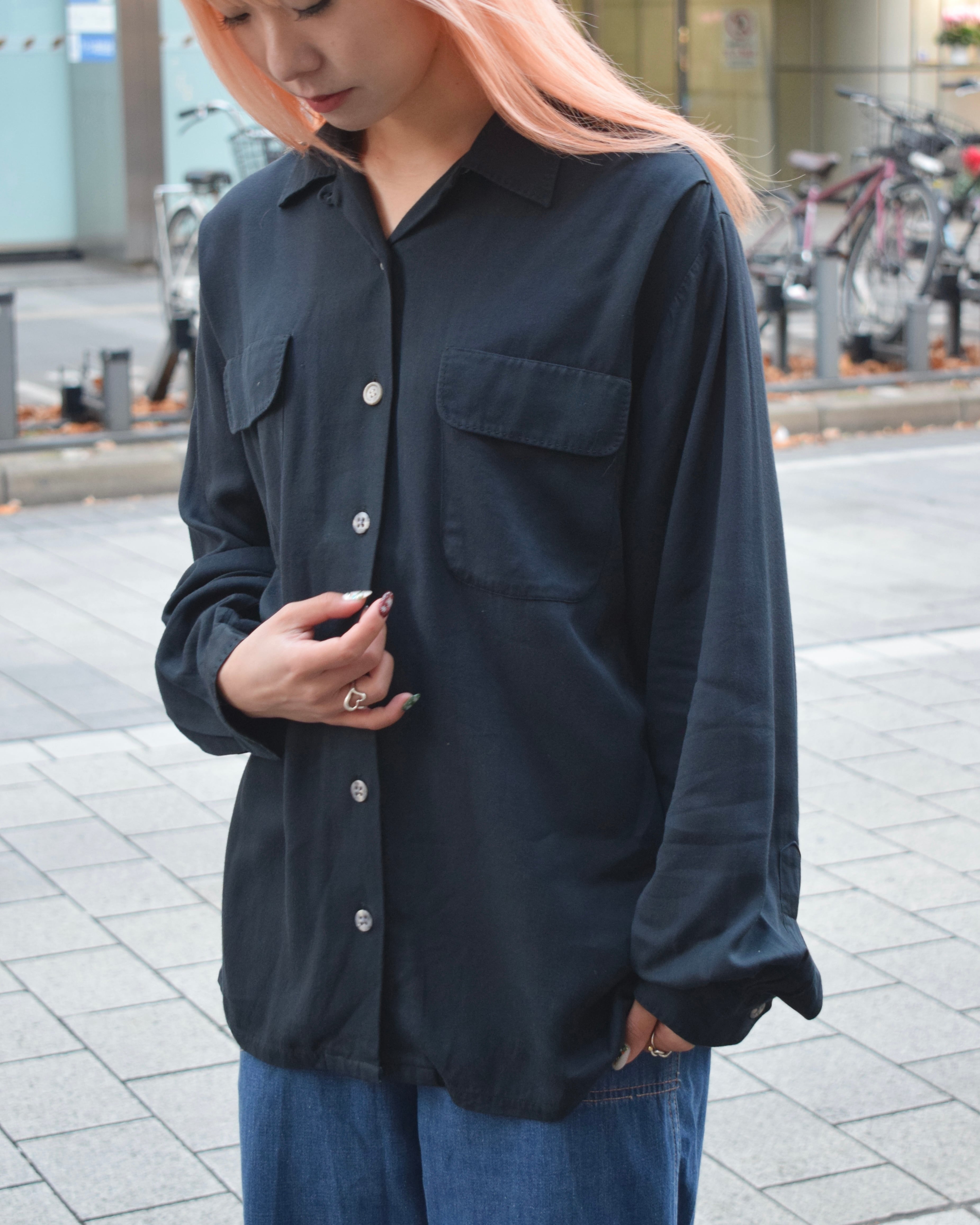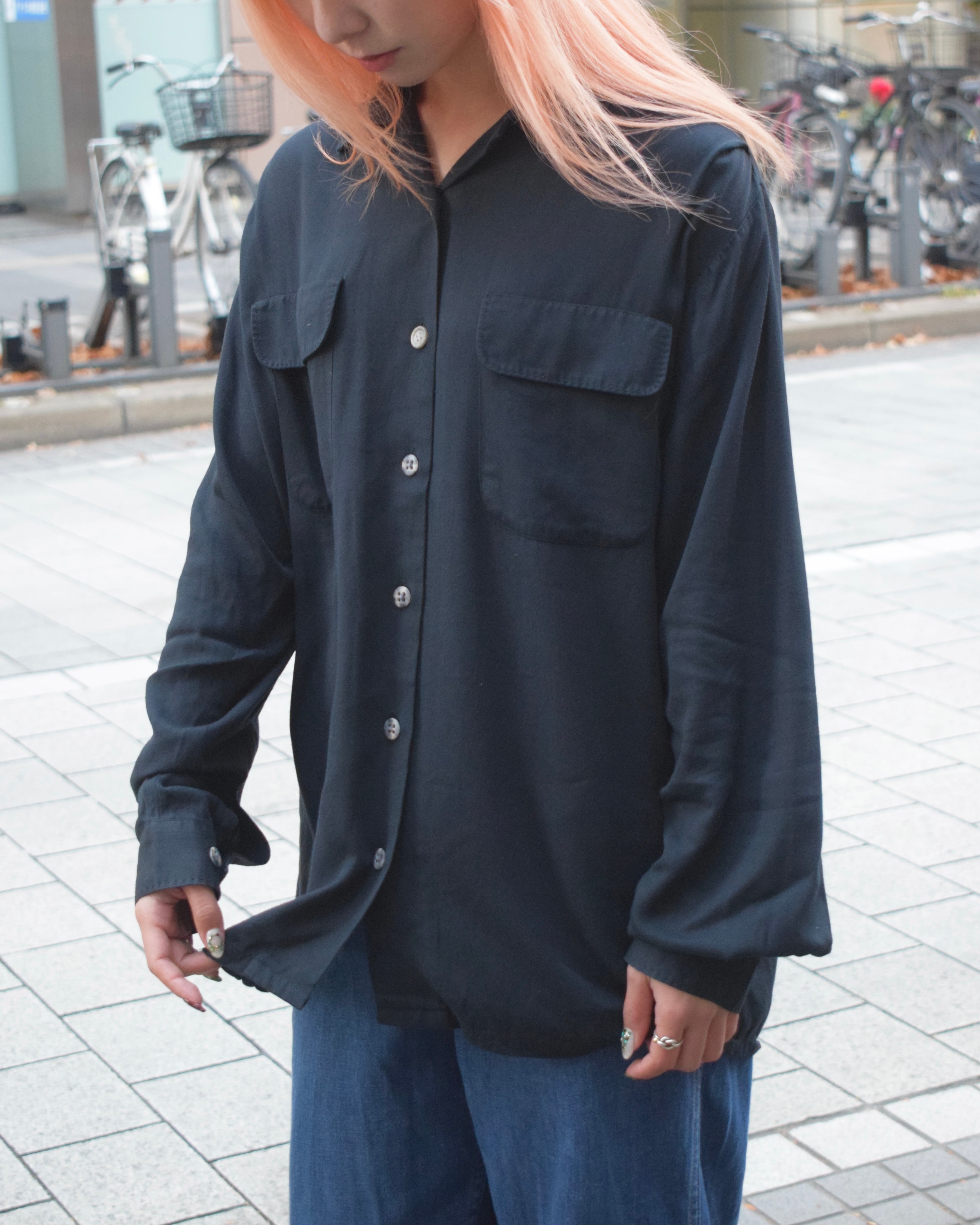 【80s BANANA REPUBLIC】black rayon shirts
