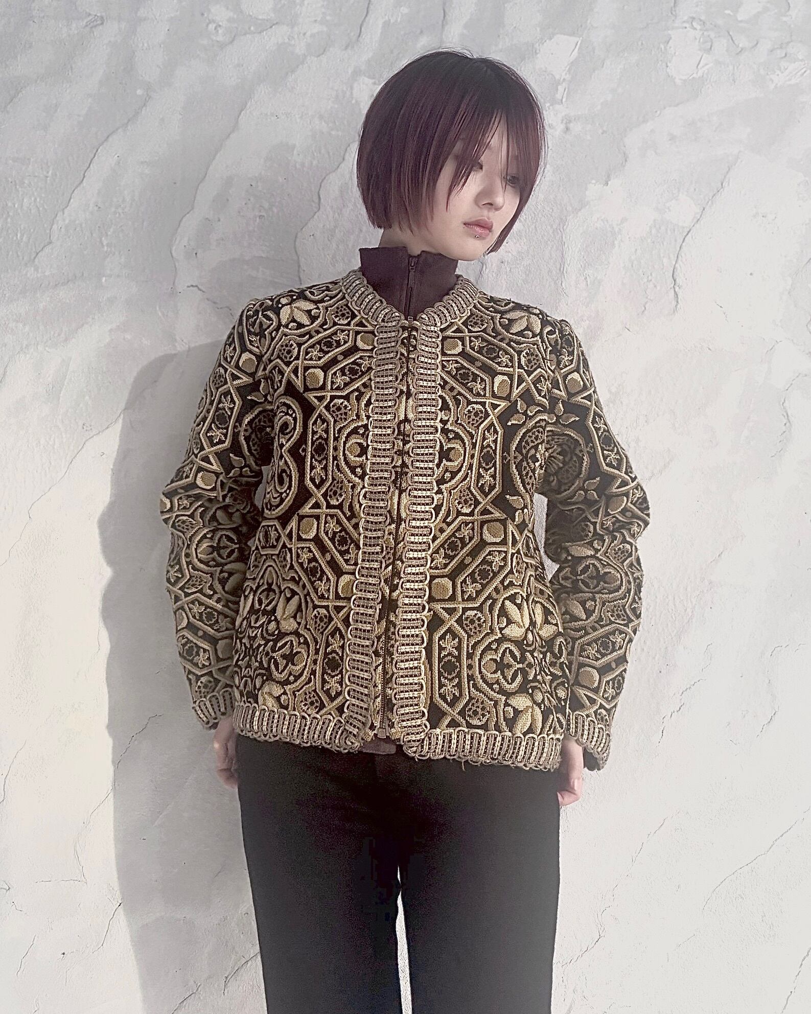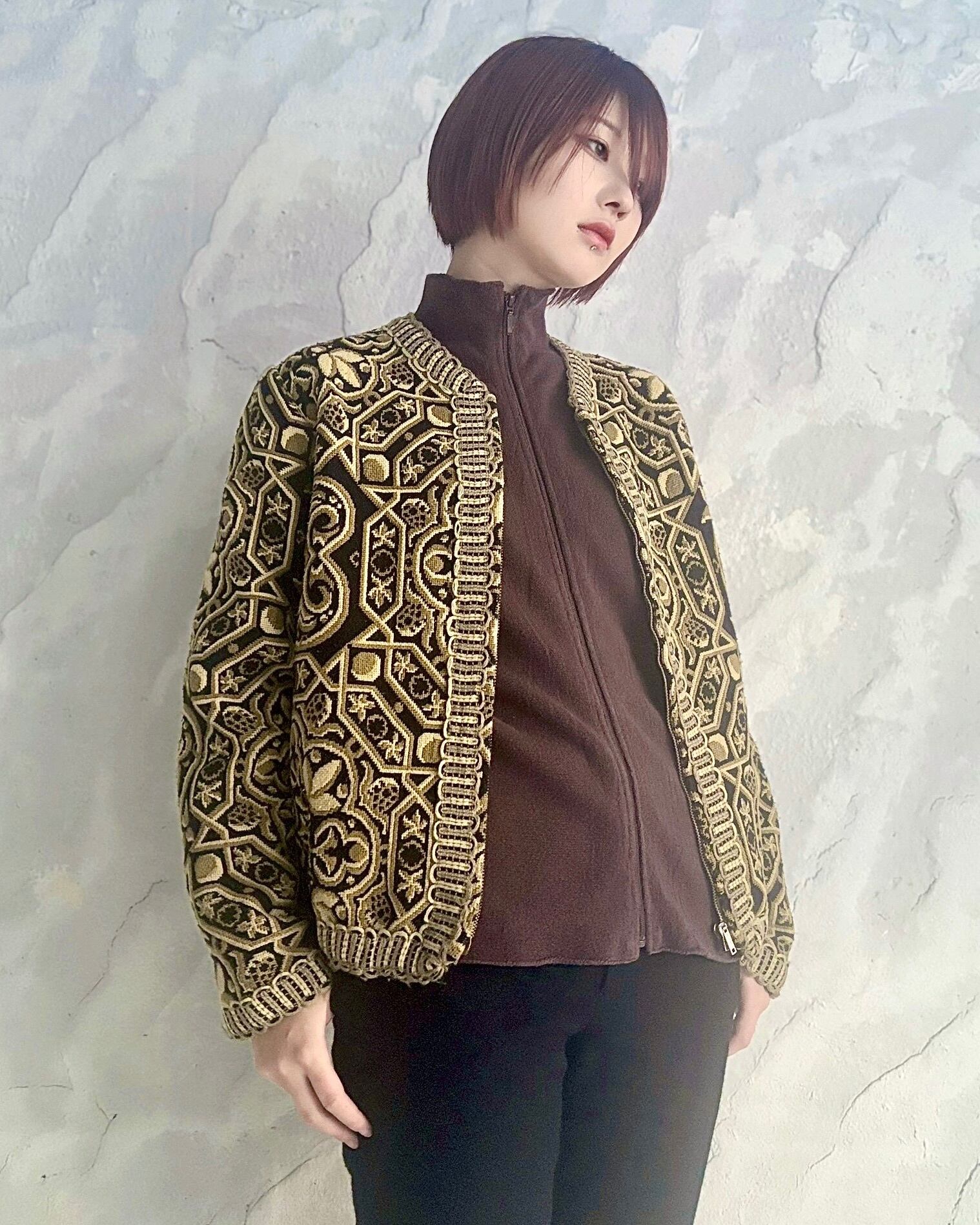 【70~80s】Zip up Jacpuard jacket "made in spain"