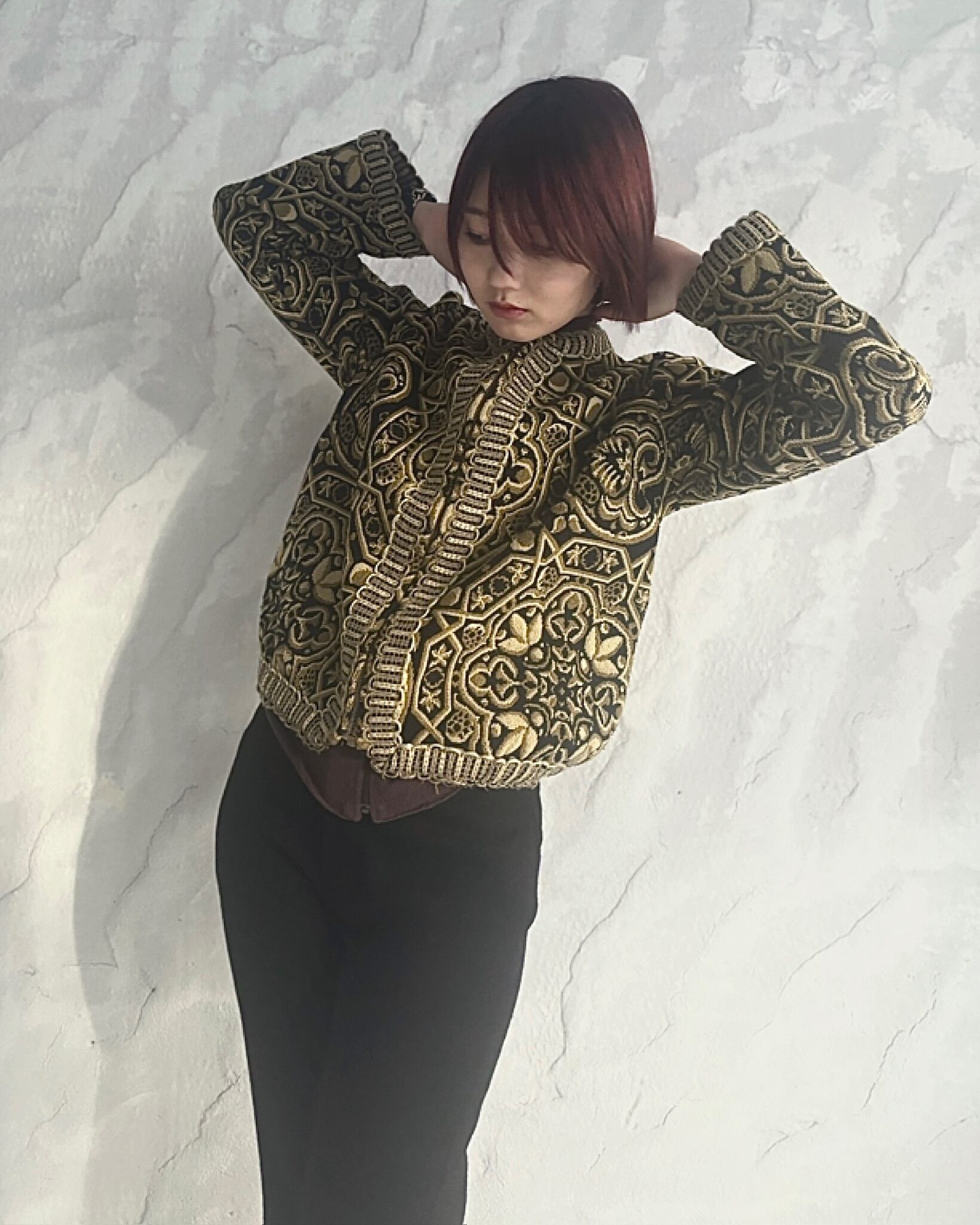 ジャガードの編み込みの凹凸が映えるような