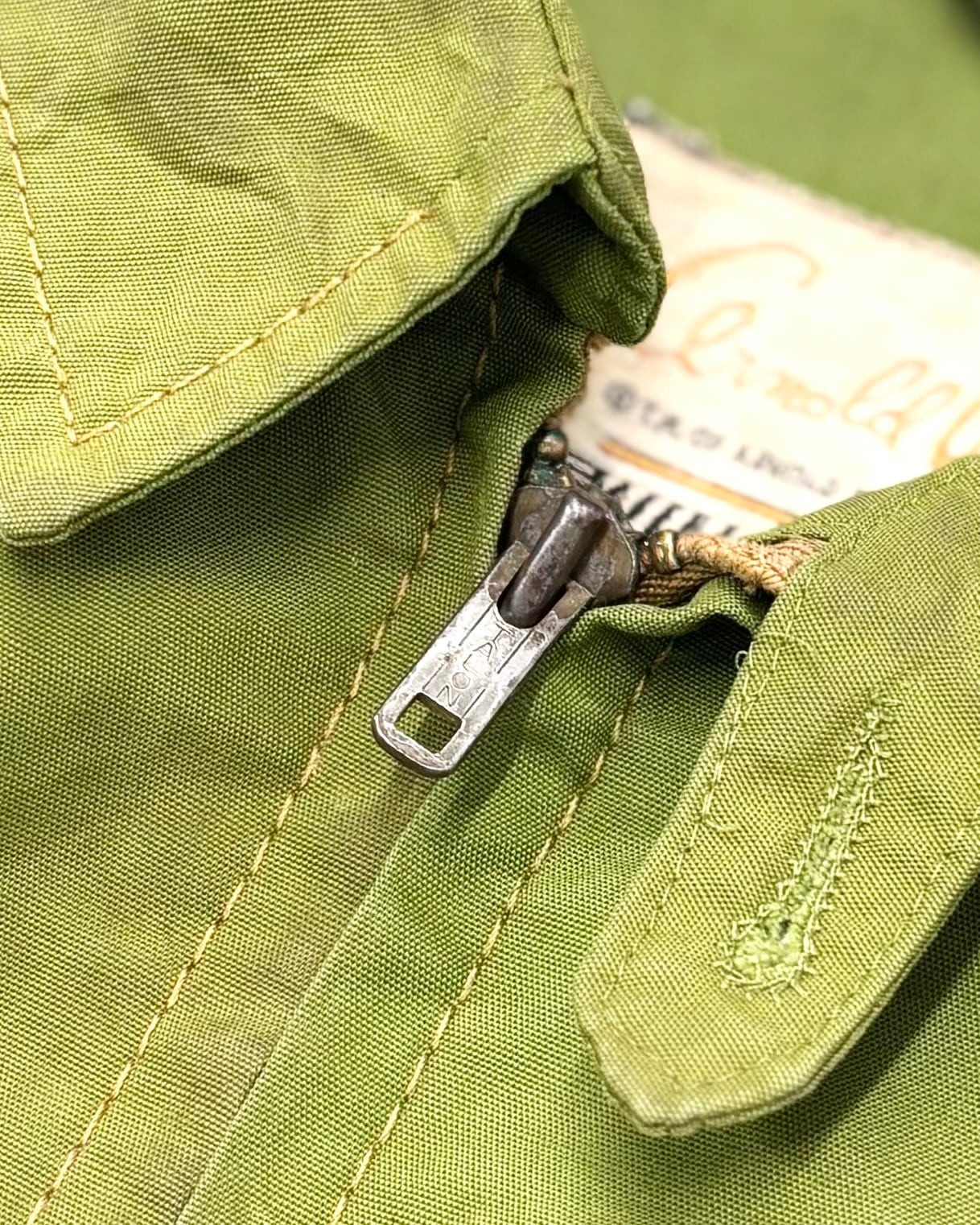 フロントポケットのリペア。ジッパーヘッドに若干のサビ付き。また全体的にかなりの汚れがあり、雰囲気として最高です。