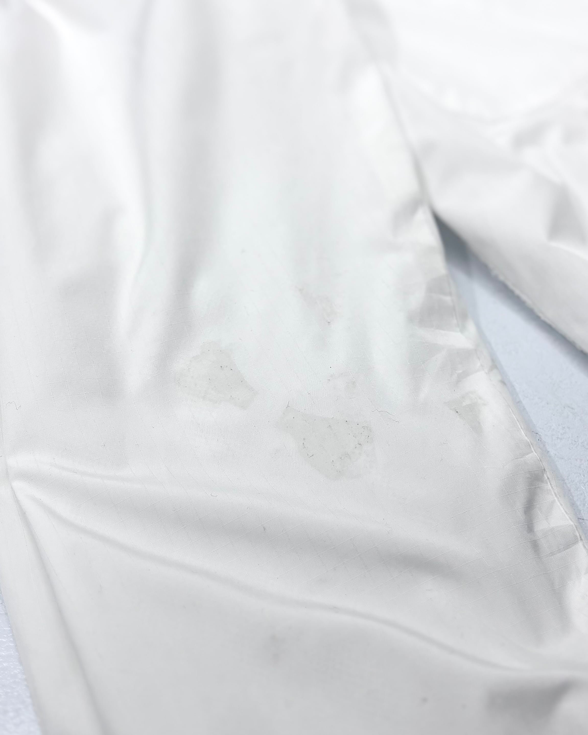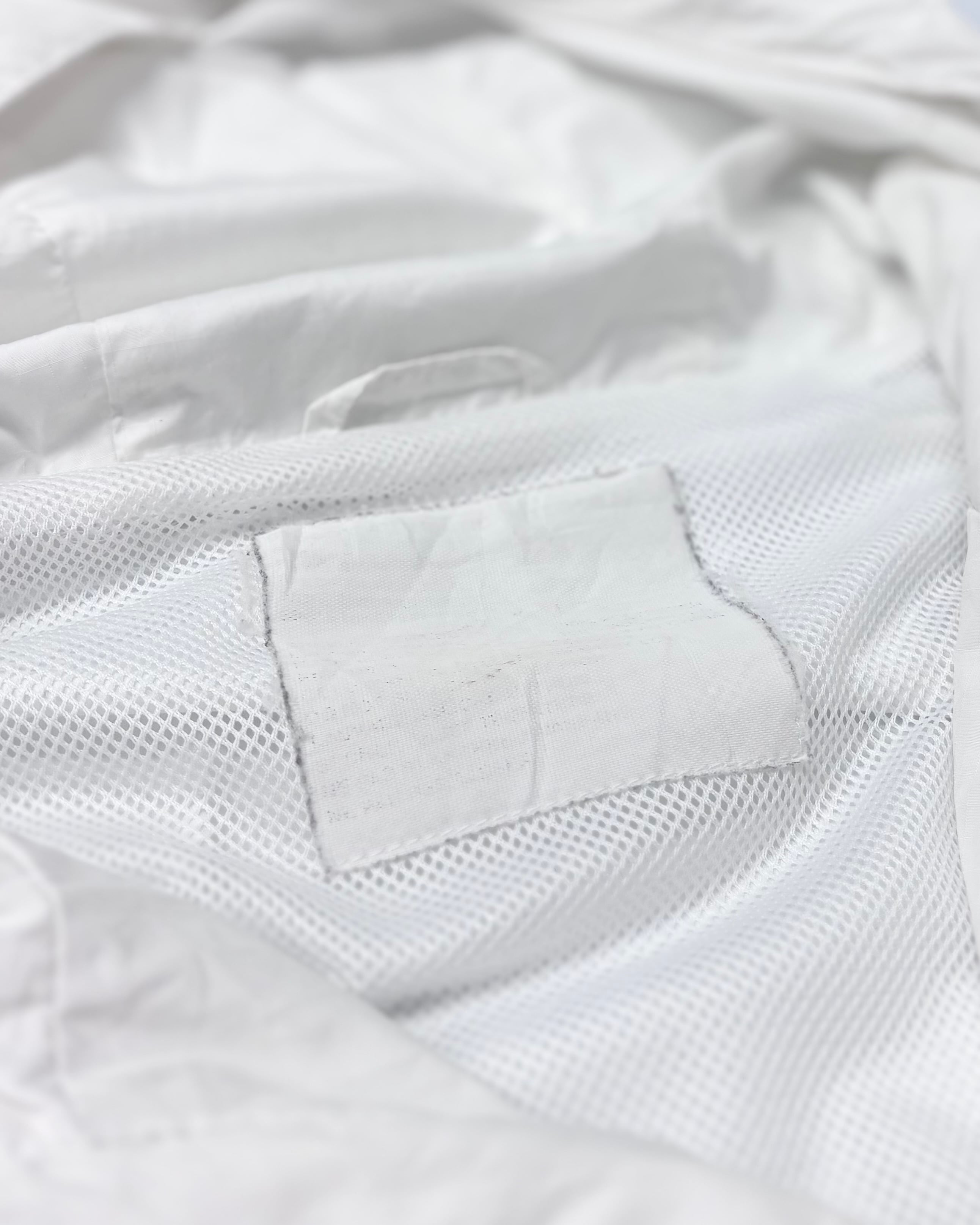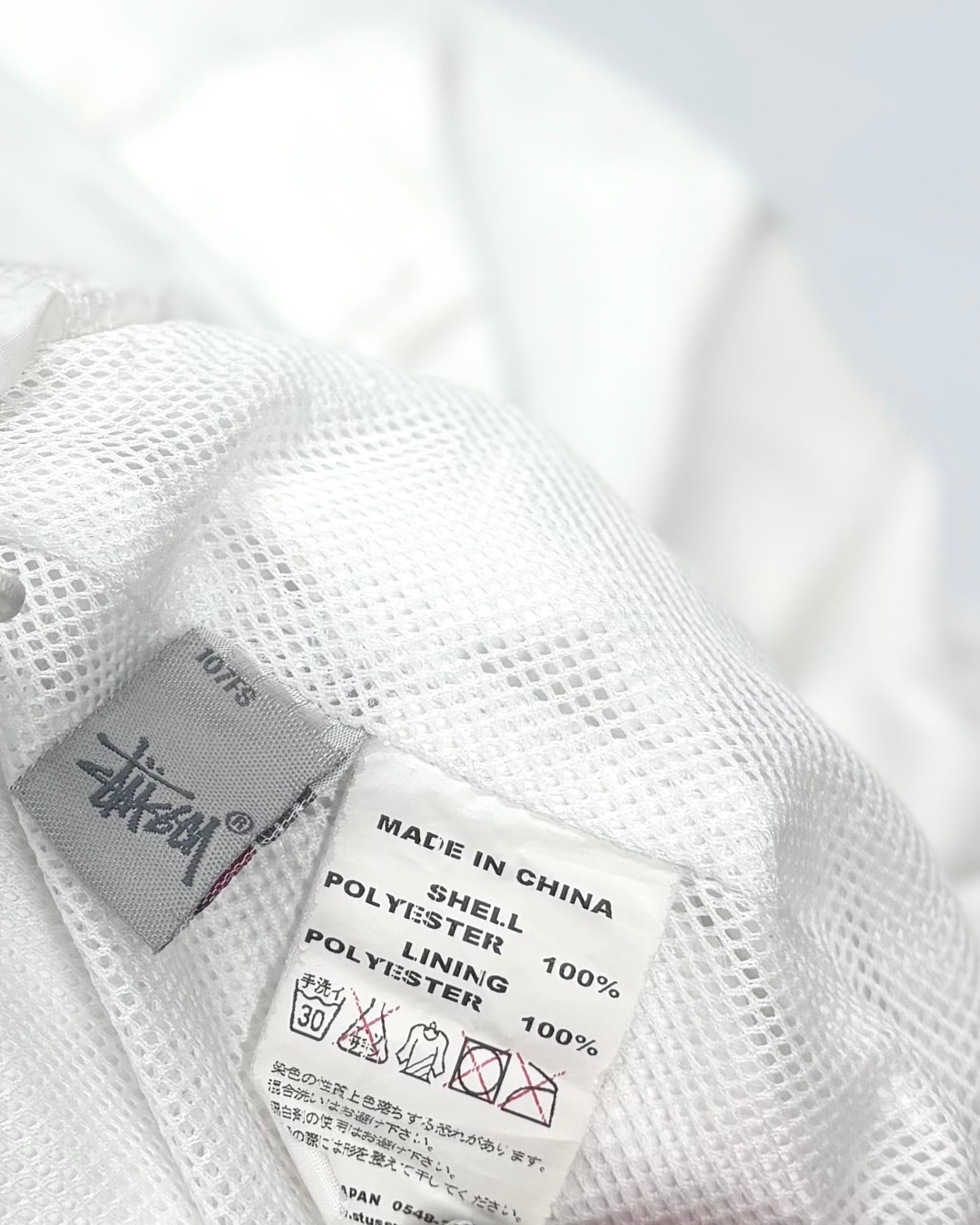 ゴム紐に若干の劣化。右袖にシミ汚れ。また他にも目立たぬ汚れ。背タグが擦り切れております。