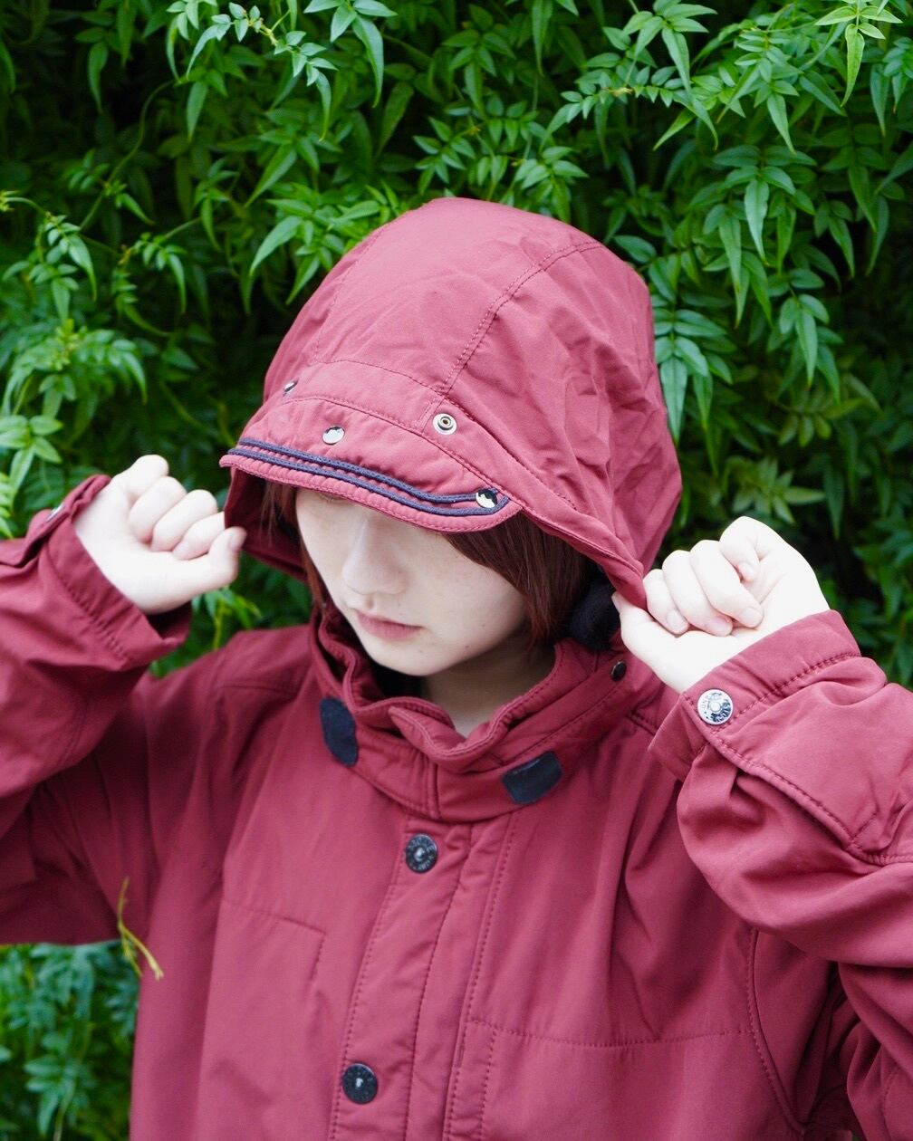 内タグのスレ。裾、フロント両胸、左胸ポケットあたりに小さな擦れ傷。各ボタン、スナップのトップに色剥がれ。フード先部分に軽い汚れがございます。