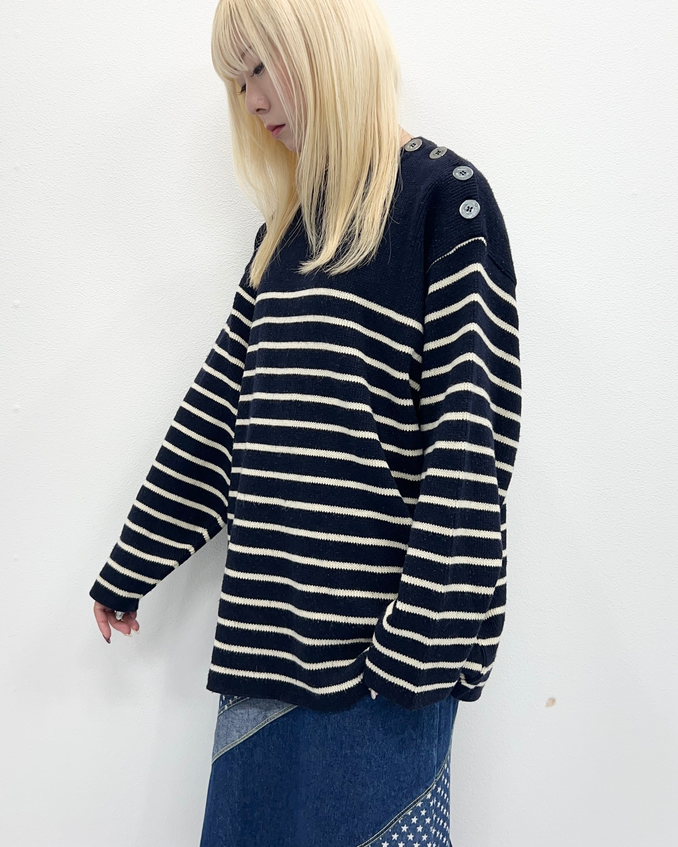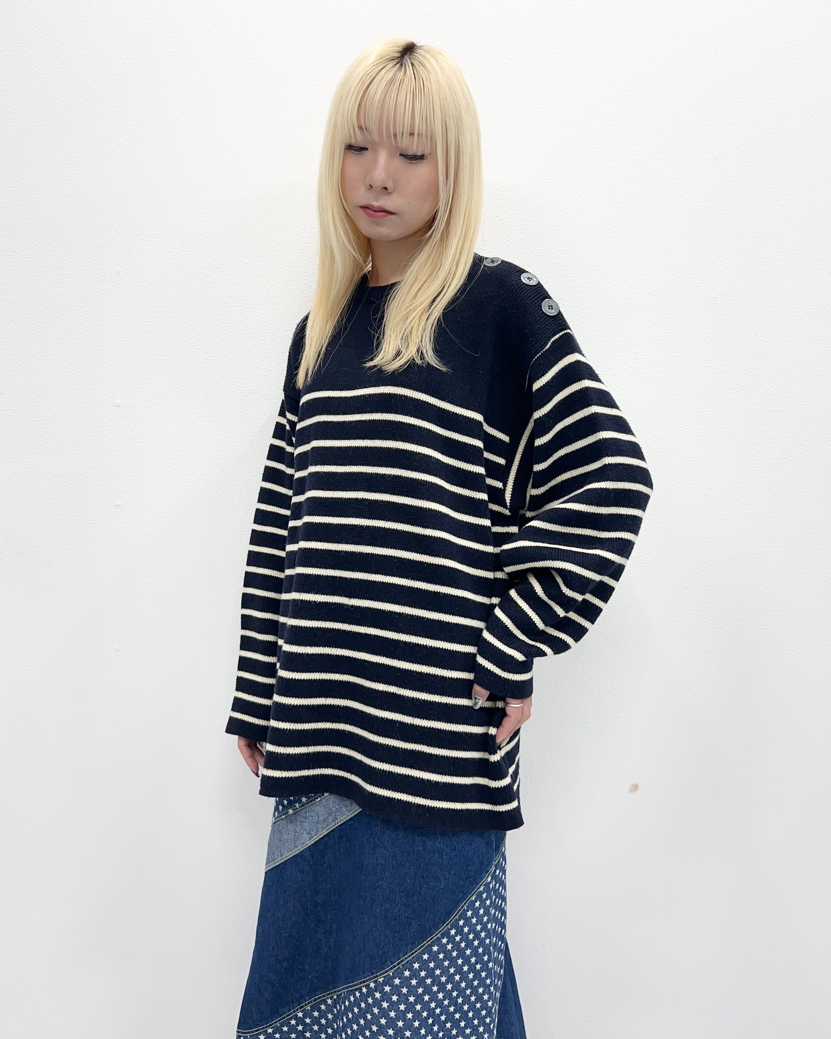 マリンルーツらしいボーダーと肩のボタンが特徴的。
