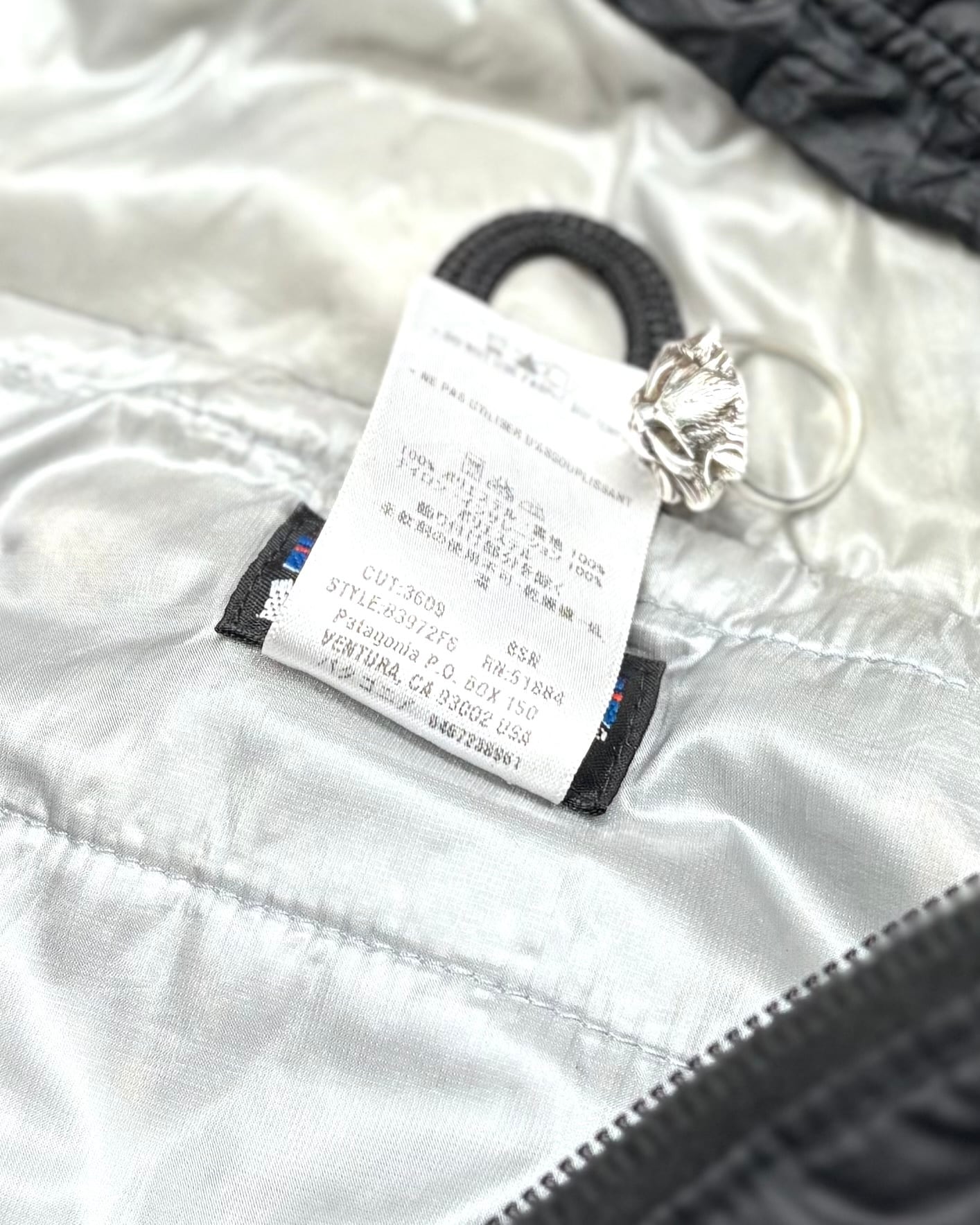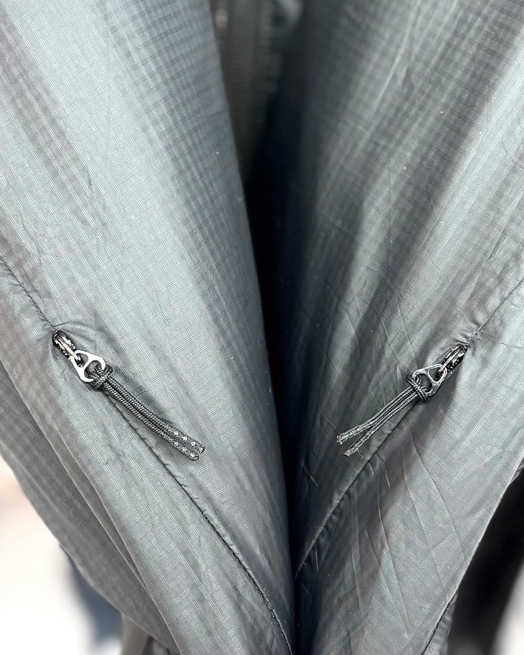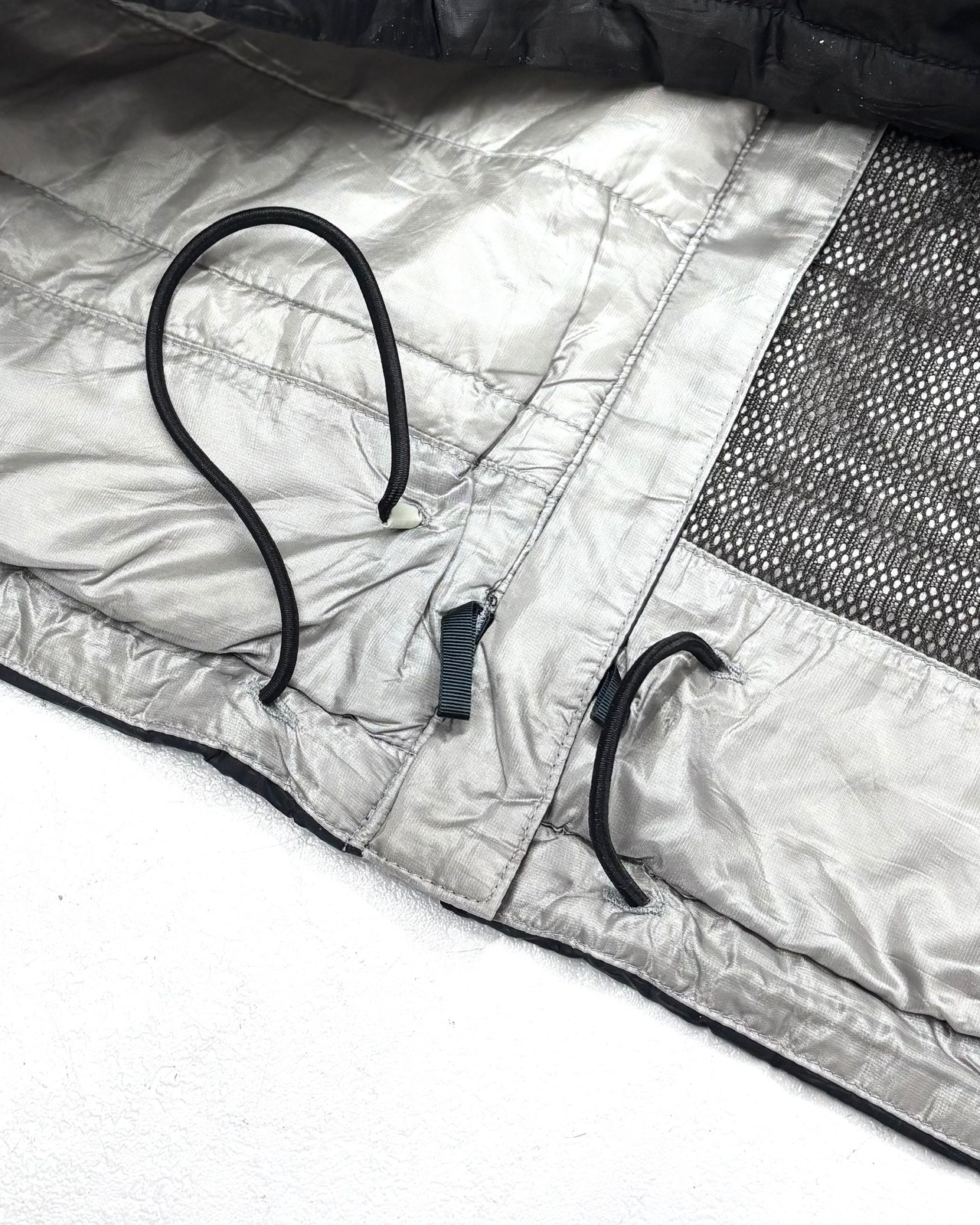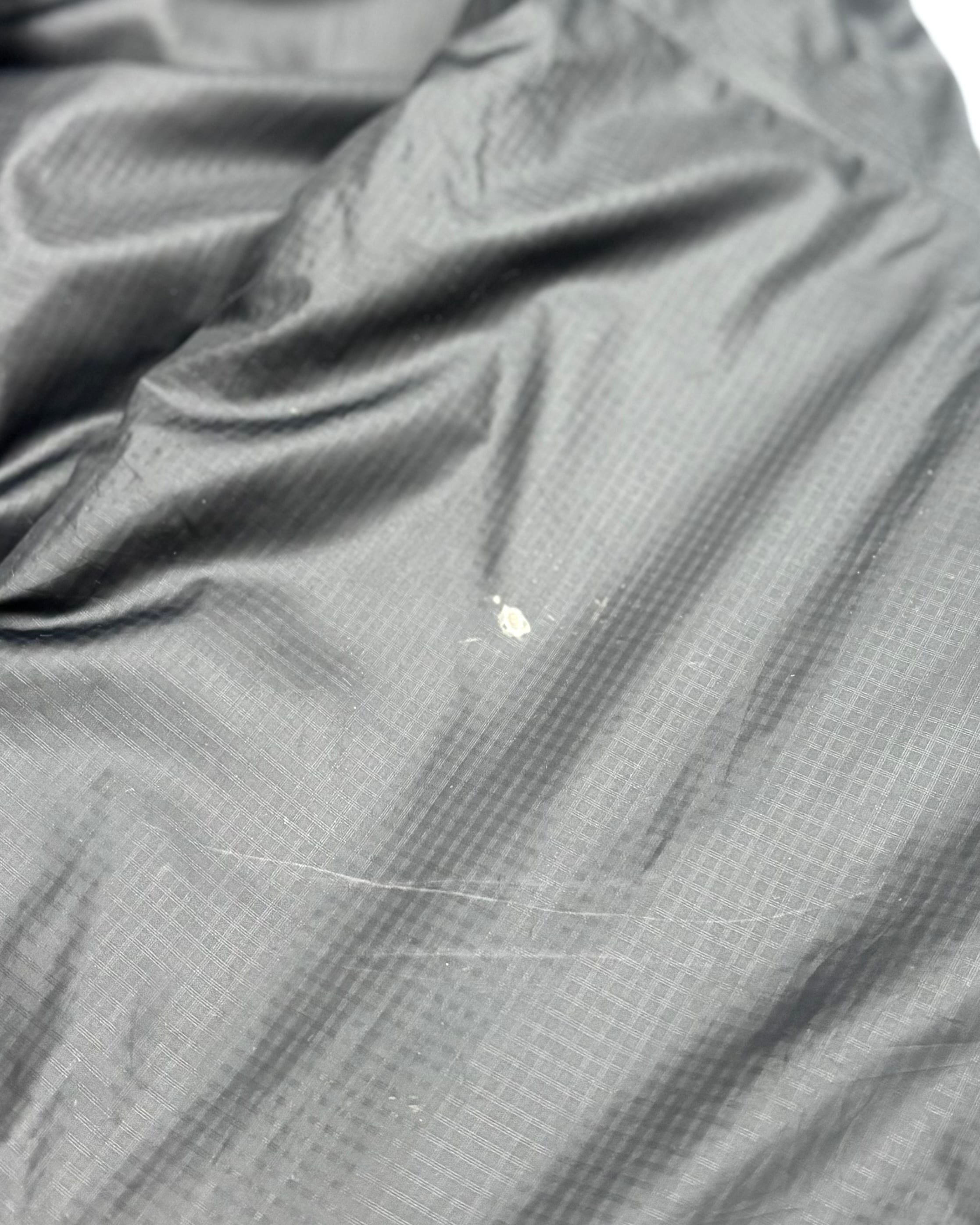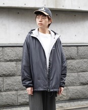 フロント裾に大きなリペア痕。裾ドローコードの留め具欠損。フード裏に若干の黄ばみ。ジッパーヘッドの割れや欠損。また各所に汚れがございます。