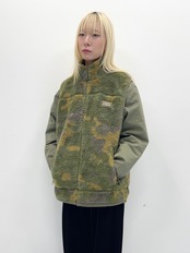 ふわふわのボアフリースに主張しすぎないカモ柄。