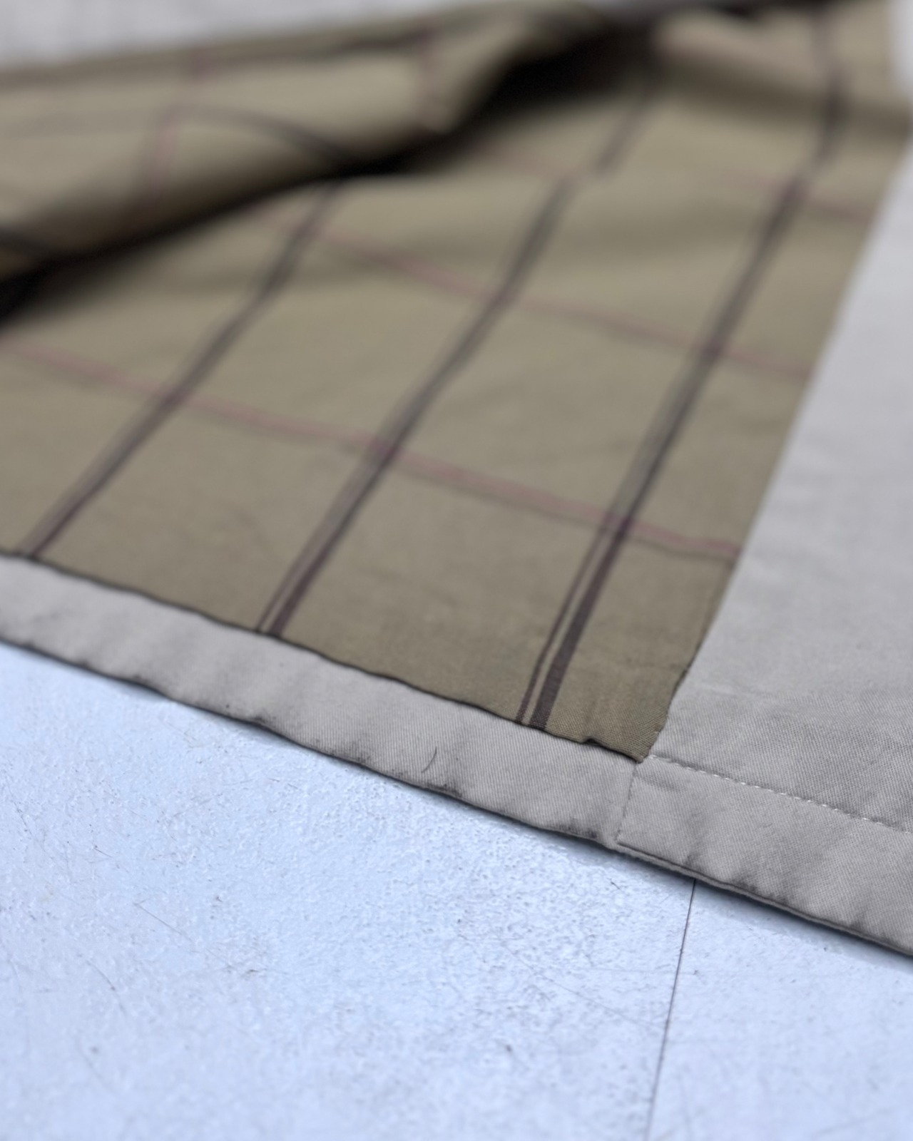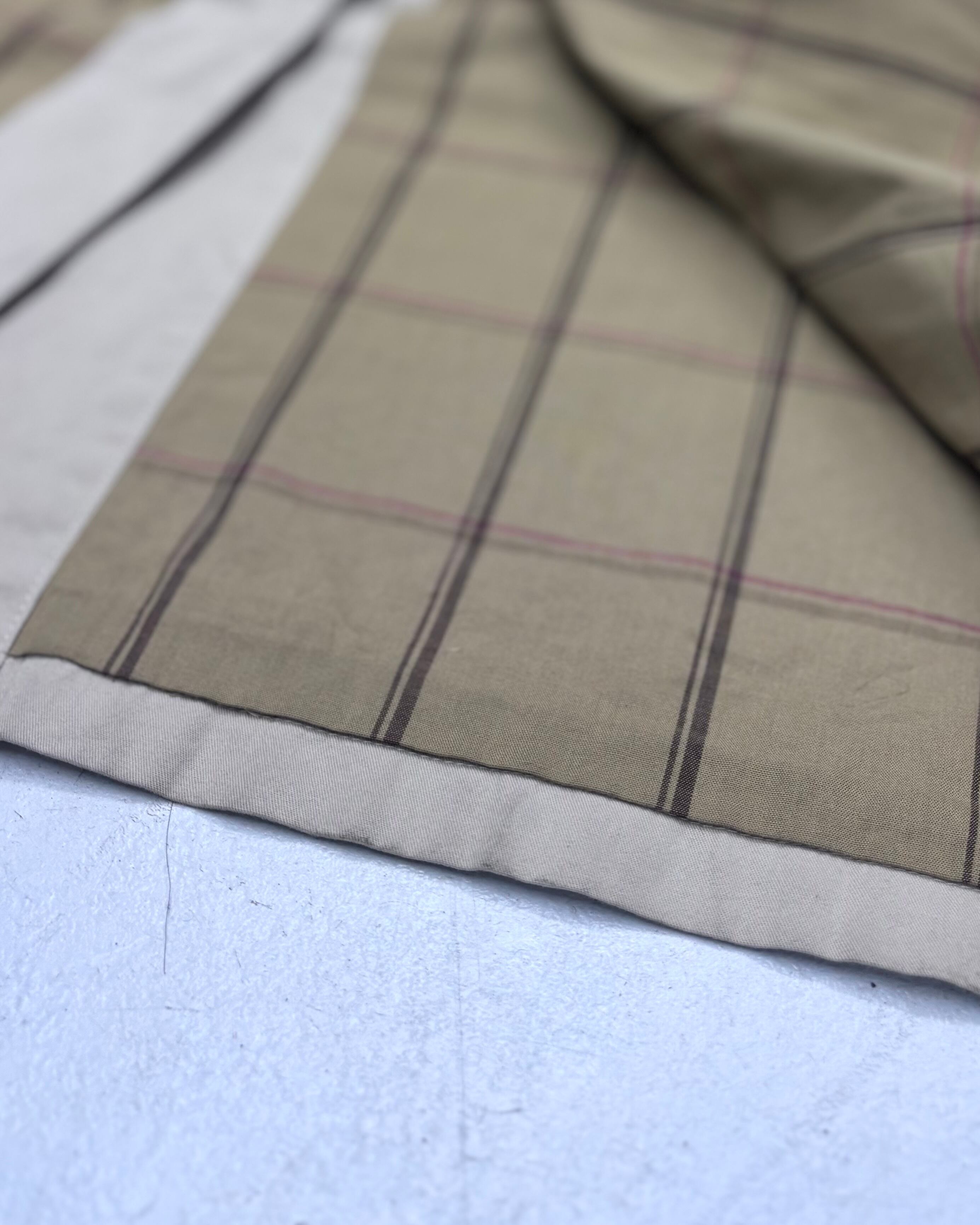 チェックの裏地と腰ベルトや
