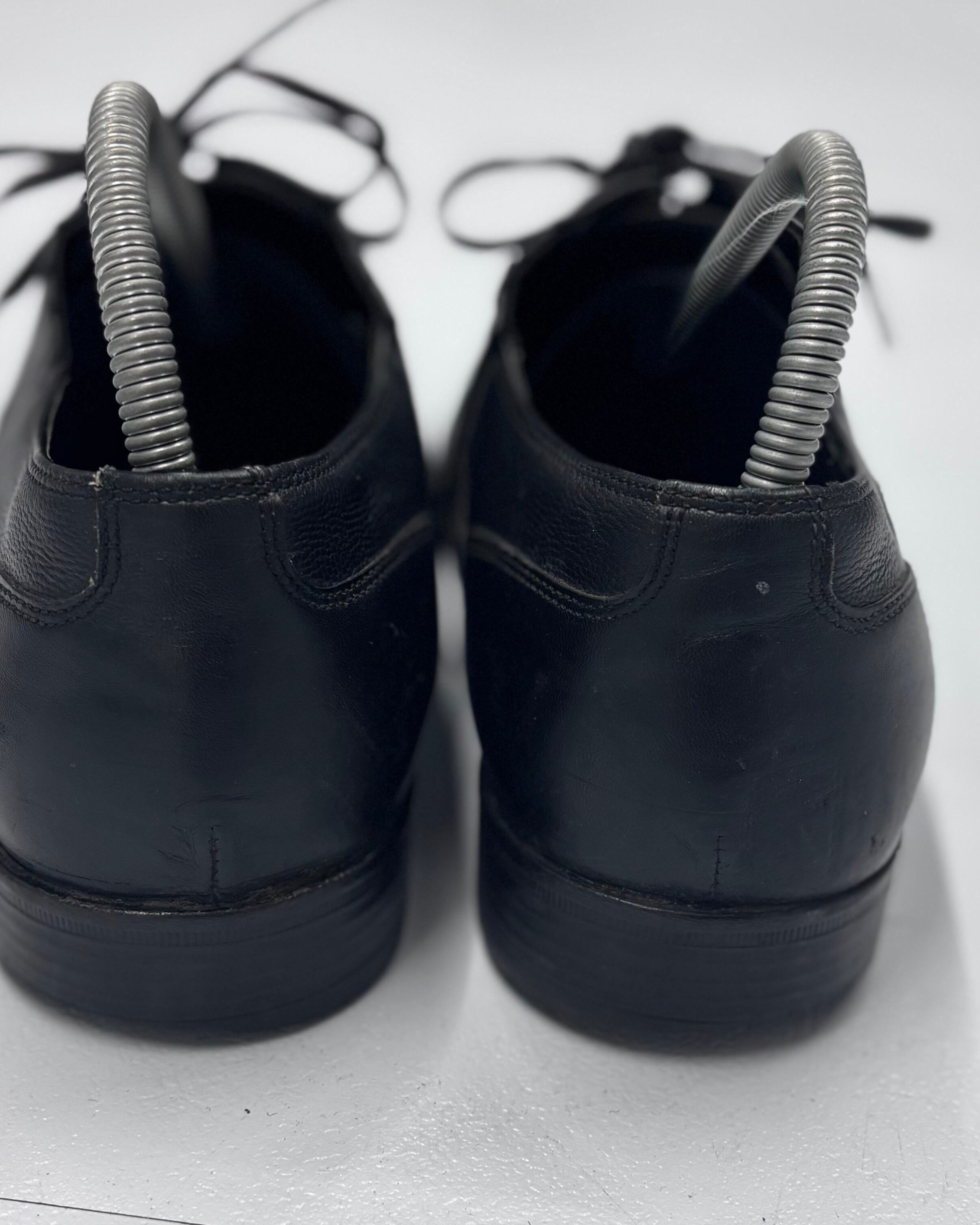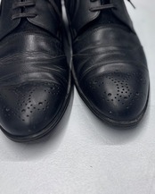 左足トゥーの先、外側の踵近く。右足トゥーの先、踵。それぞれに目立たぬ傷。全体にごく微少な若干の汚れ。また履き皺がございます。