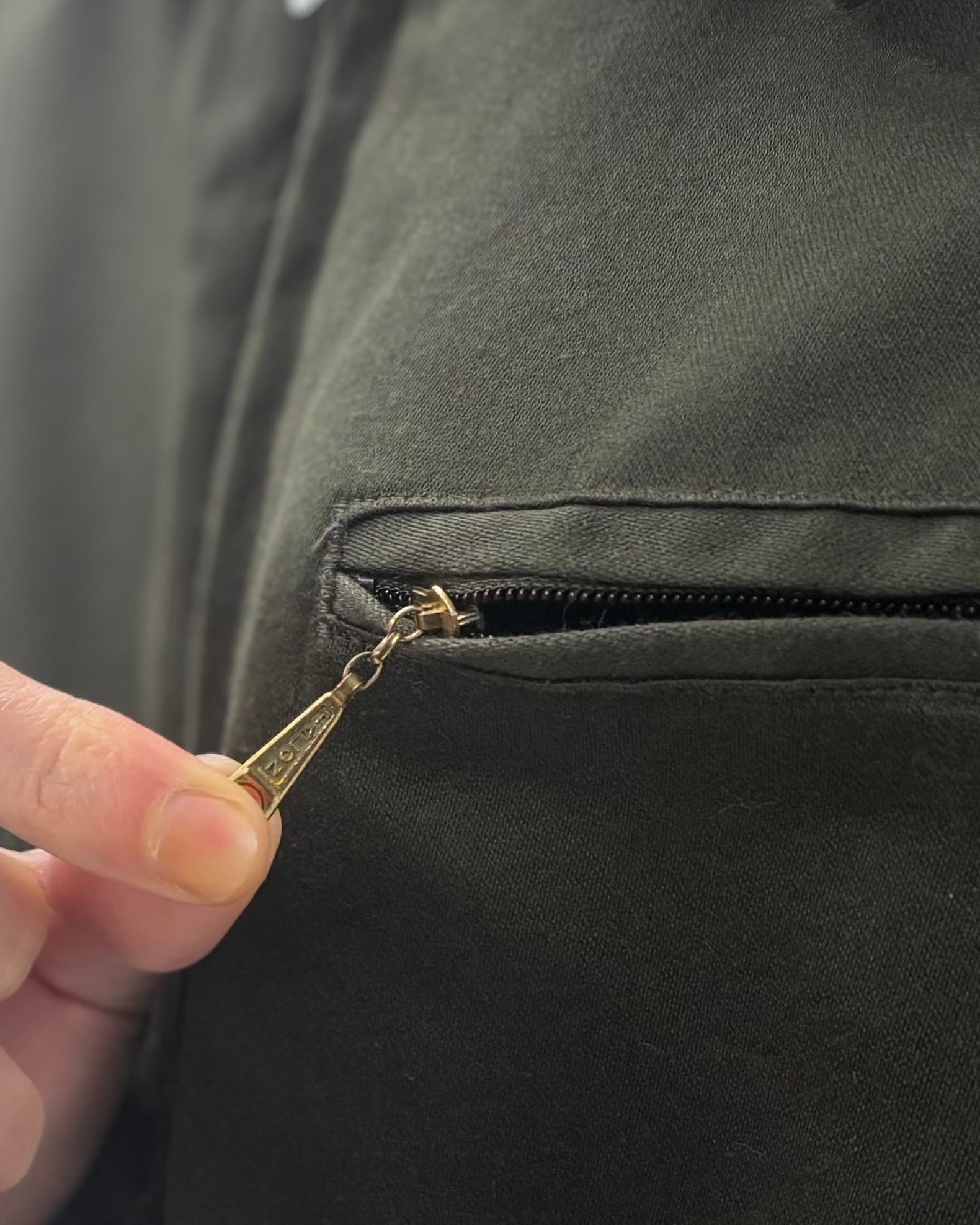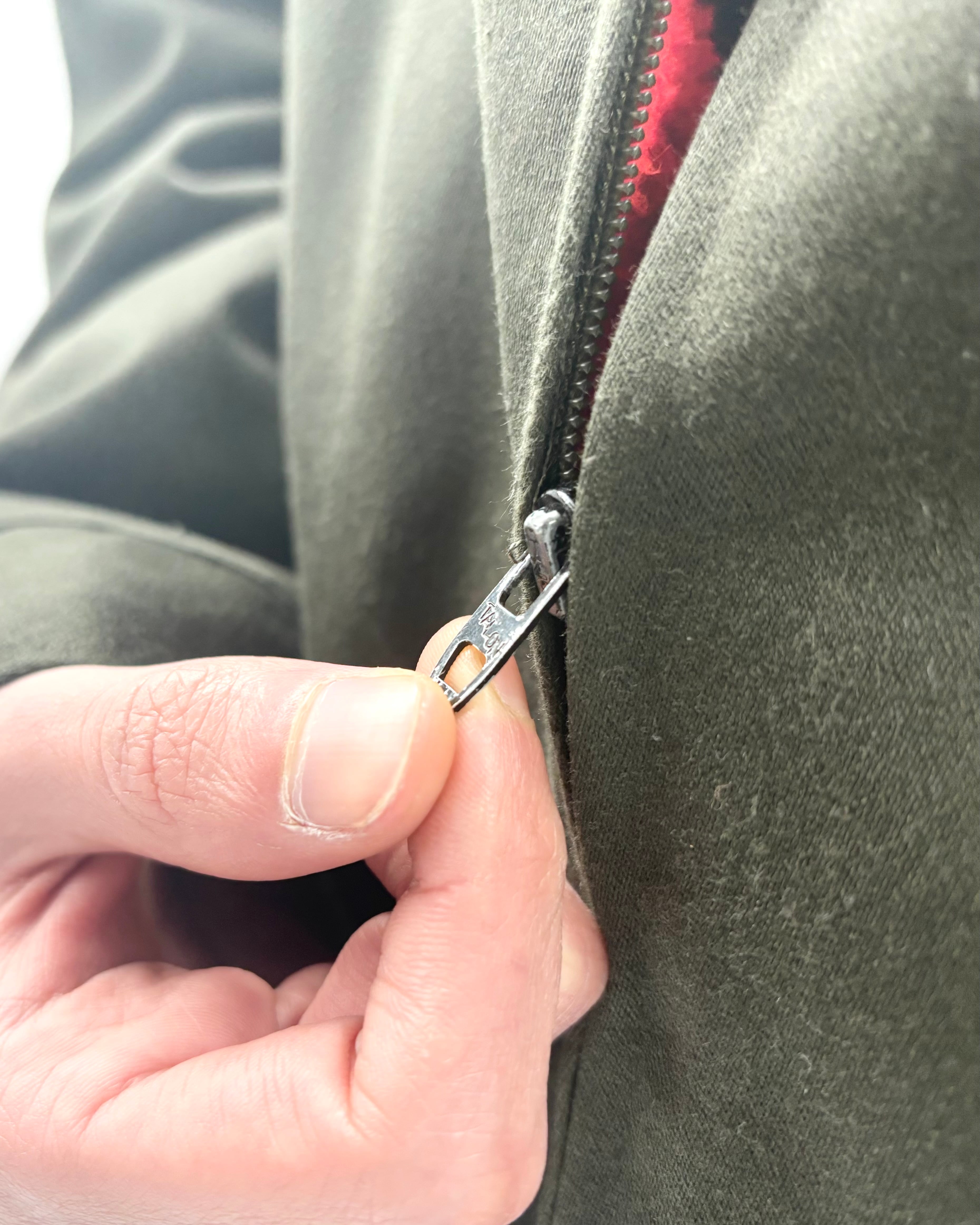 深いグリーンに裏地は鮮烈な赤。