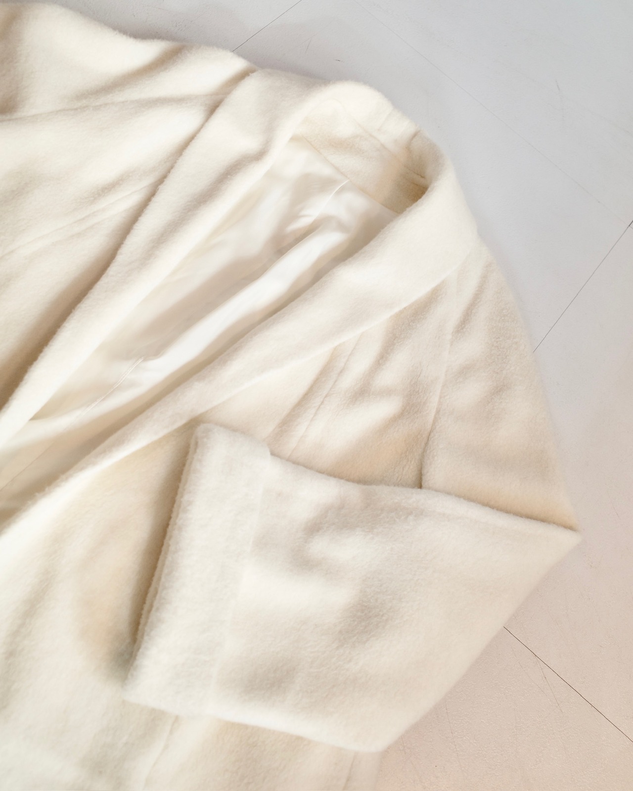 大きくも流線的なラペルデザインに、