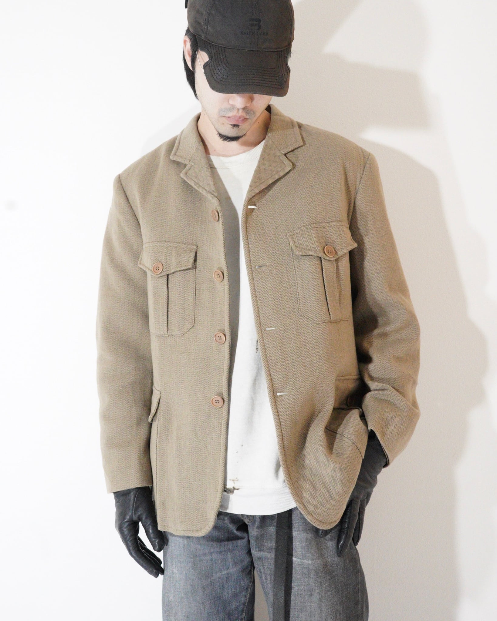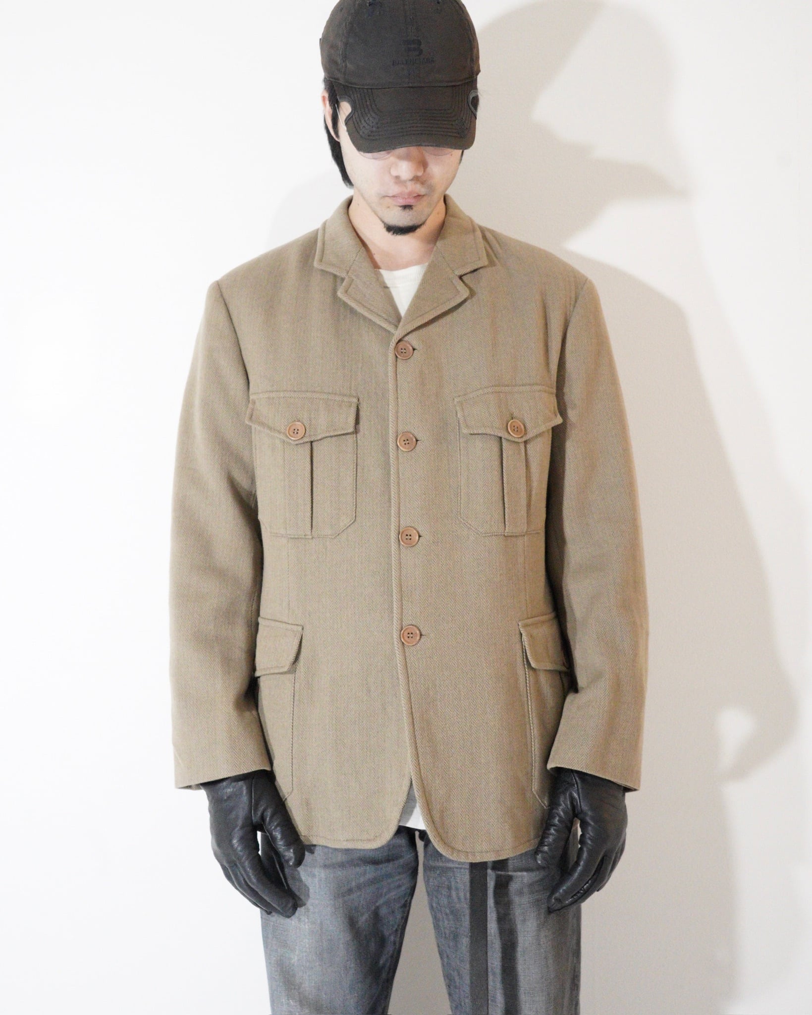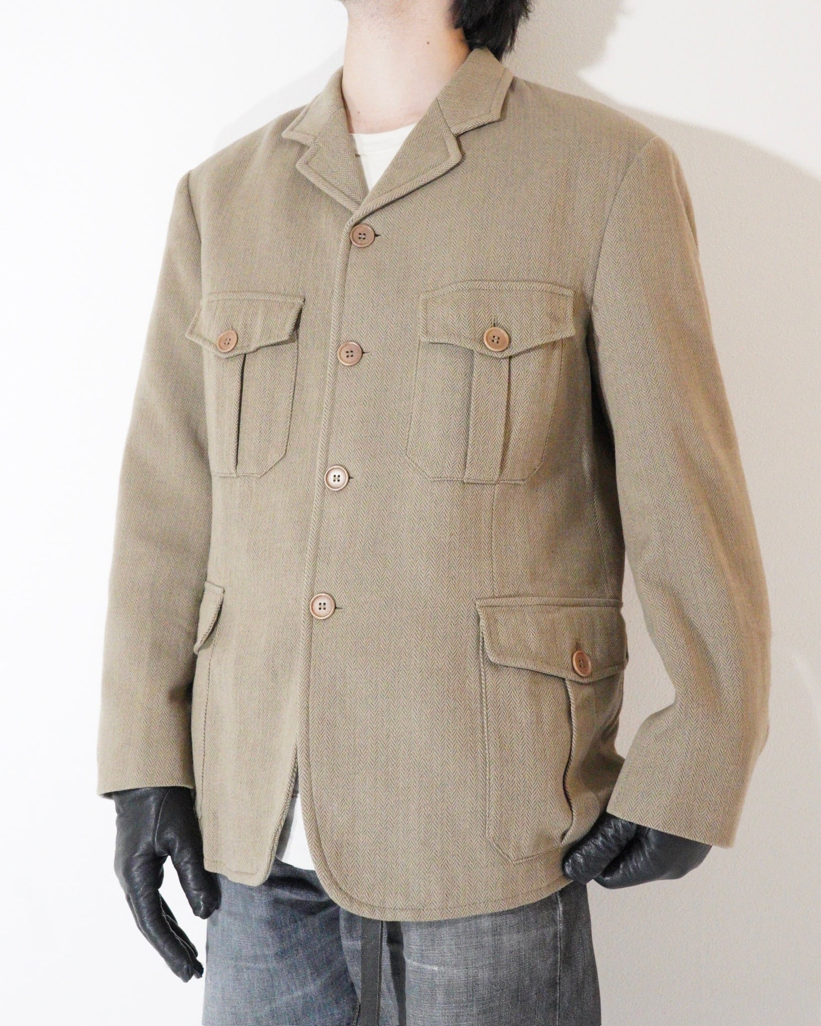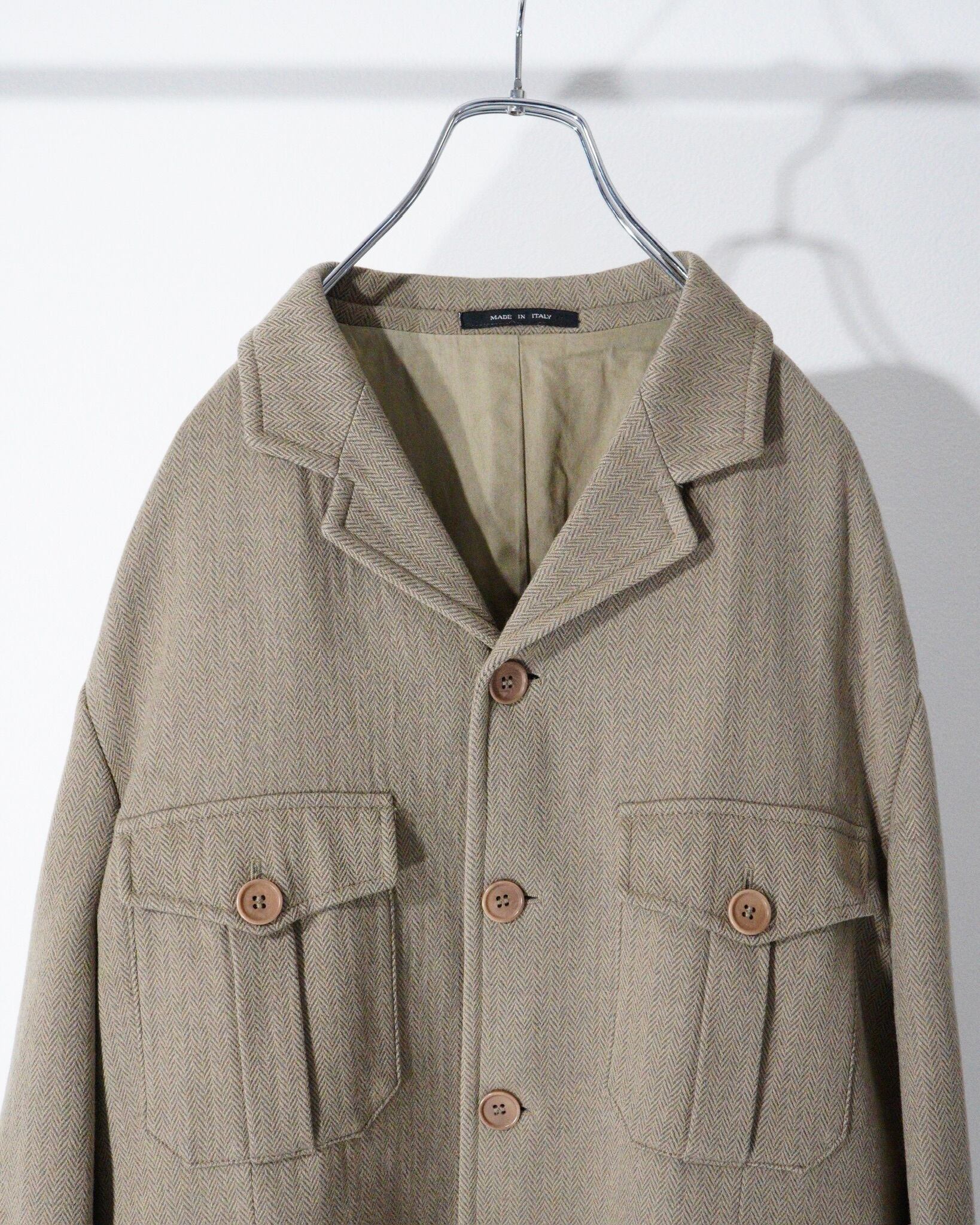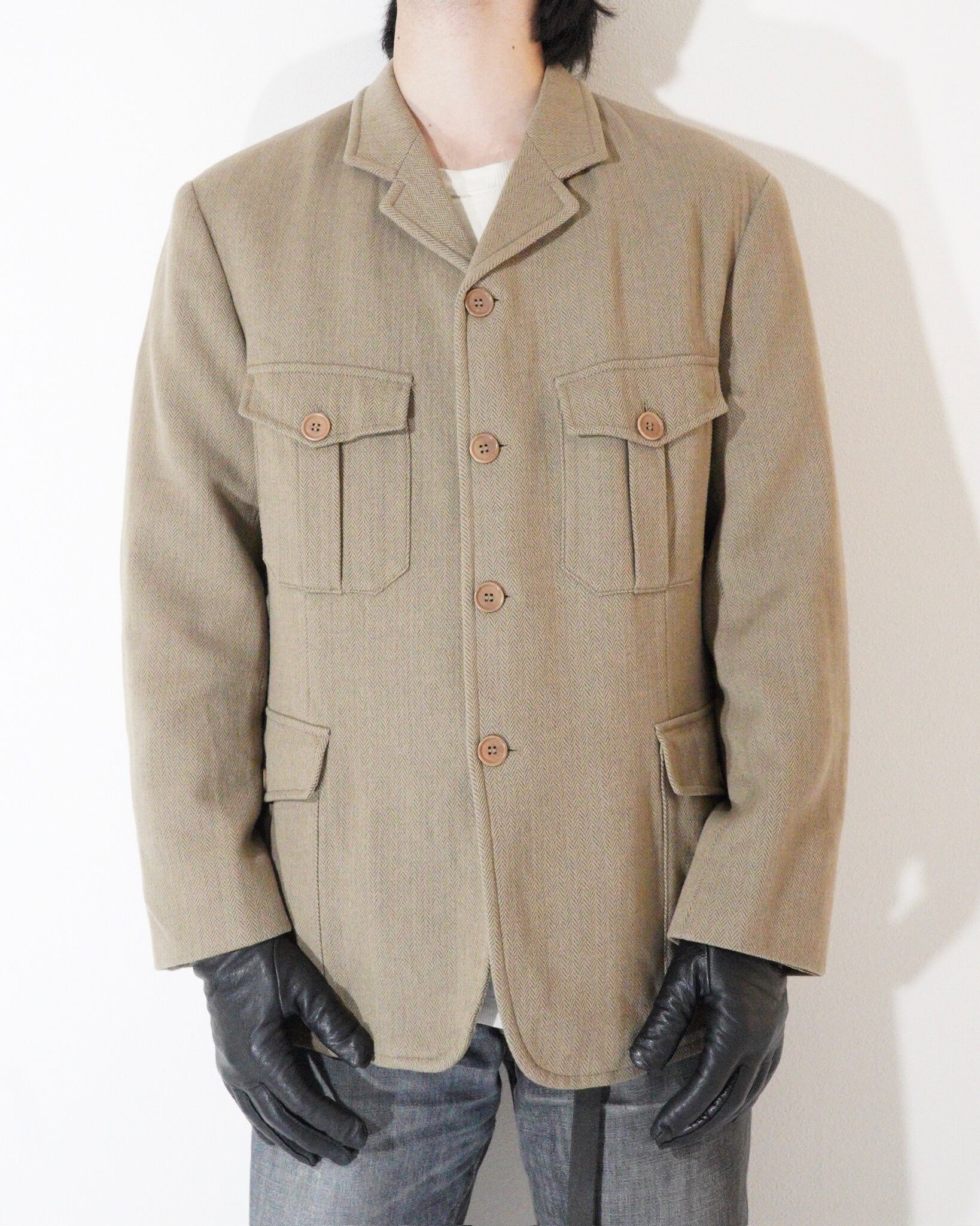 【90s EMPORIO ARMANI】Herringbone Safari Jacket Italy