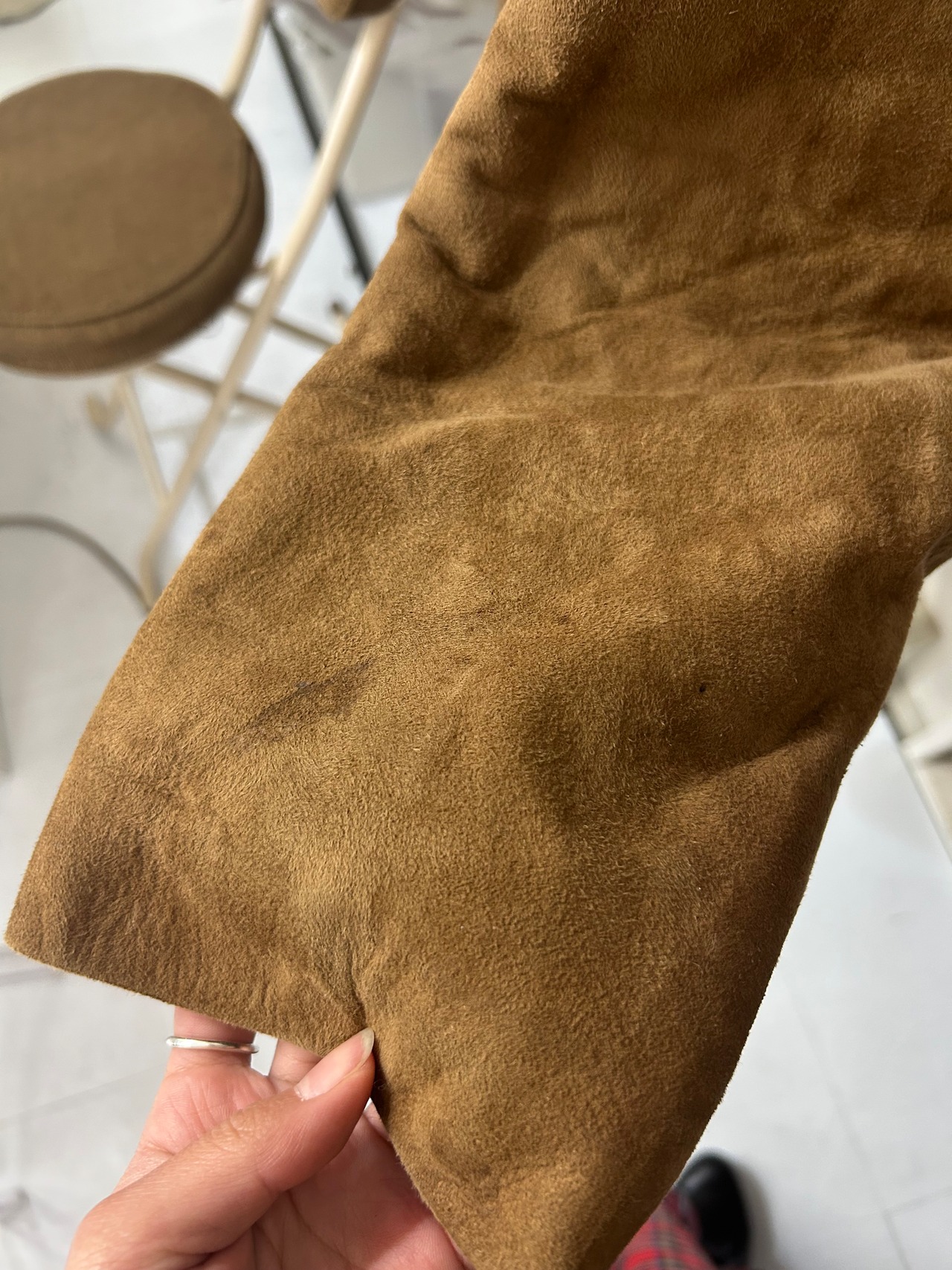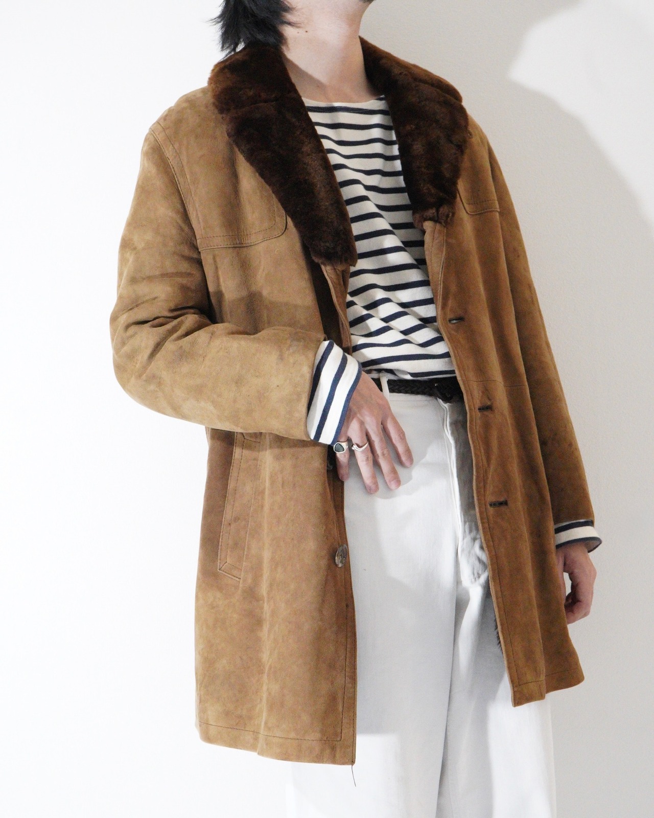 スエード素材のシアリングコート。