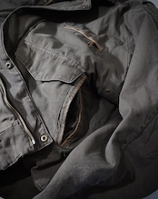 襟にレザーが入ったりと全体的には無骨なイメージが先行するジャケットですが、丸みを帯びたシルエットはどこか親しみやすさも感じます。
