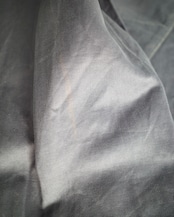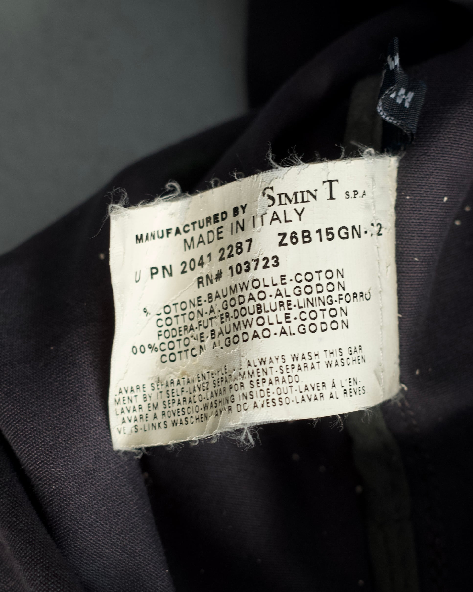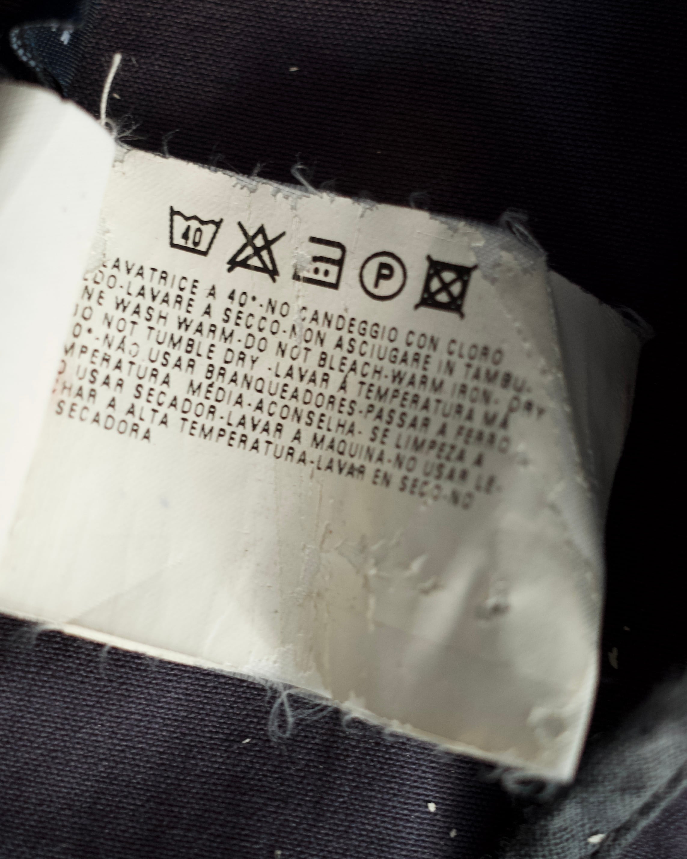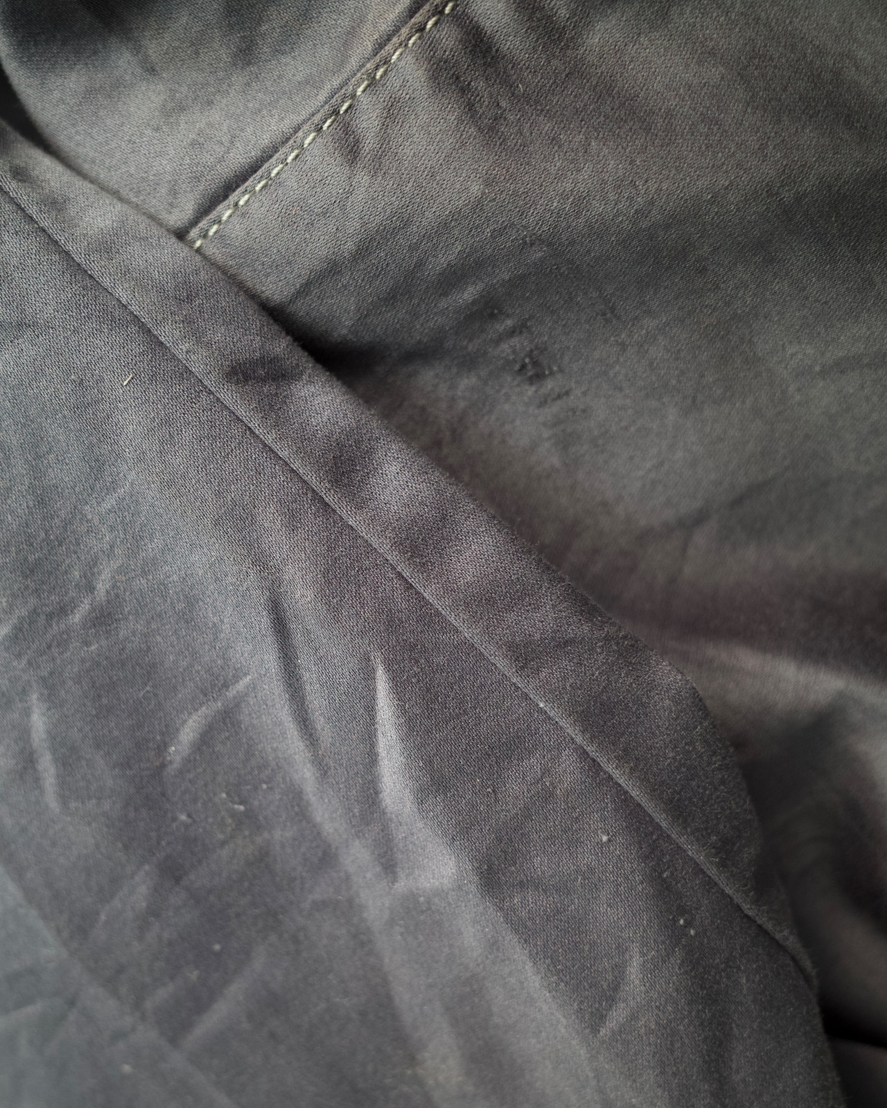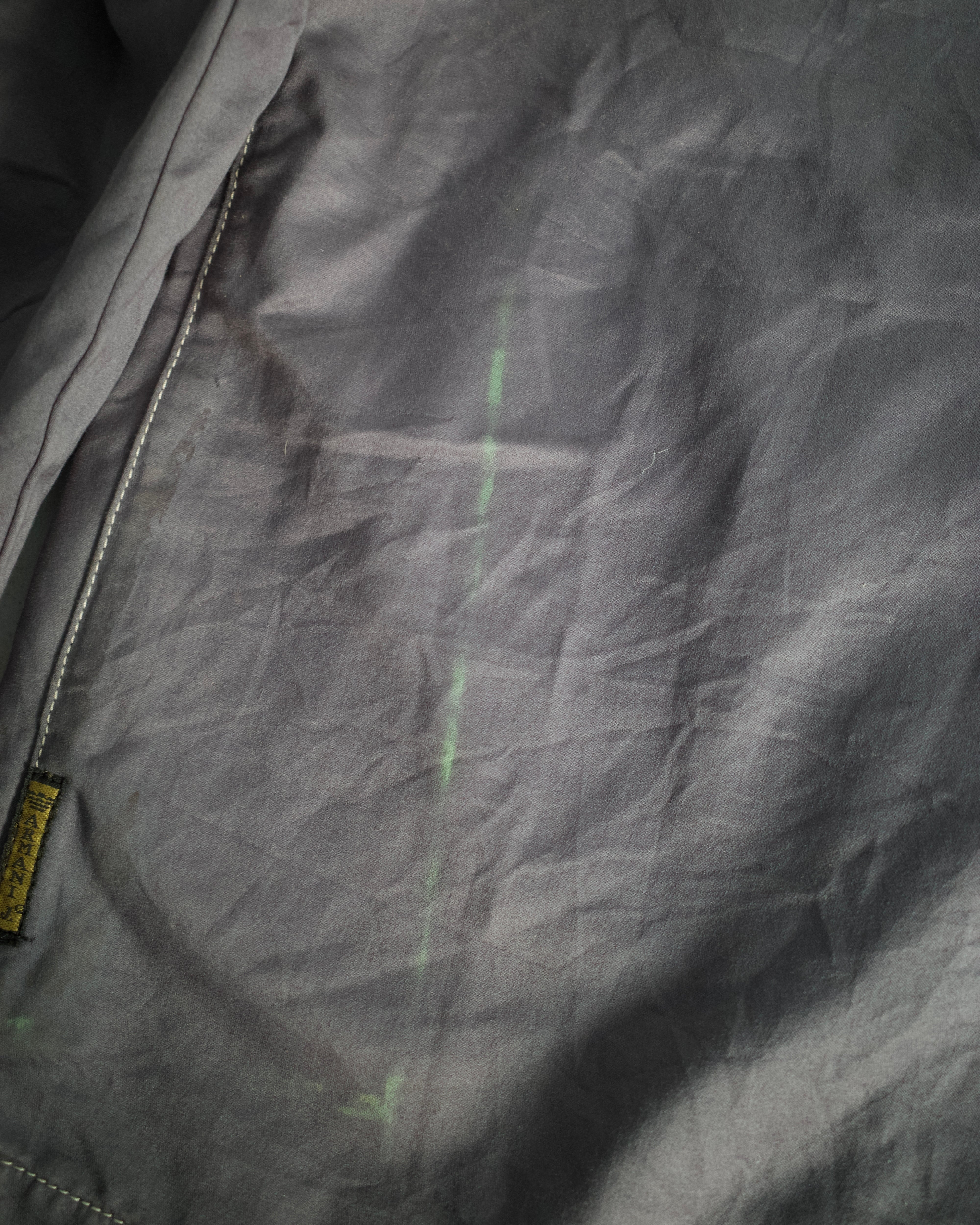 内タグの劣化。左肩や袖に若干のダメージ。背面裾に緑系の汚れ。首元の汚れ。また全体に皺がございます。