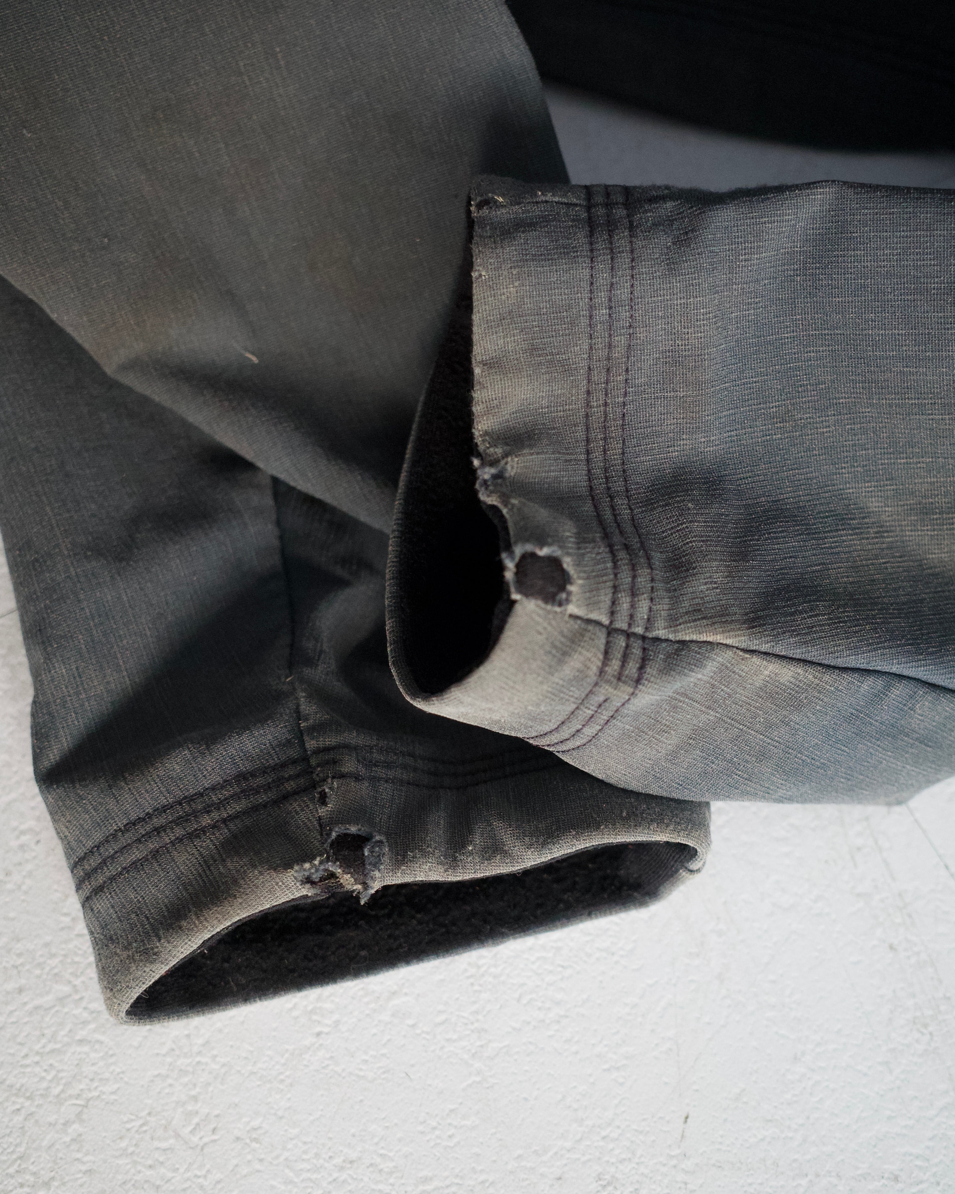 フロント右肩付近と袖口にダメージ。またダメージ付近を中心とし各所に汚れ。内タグのスレがございます。