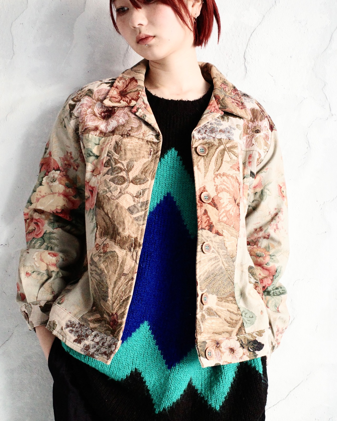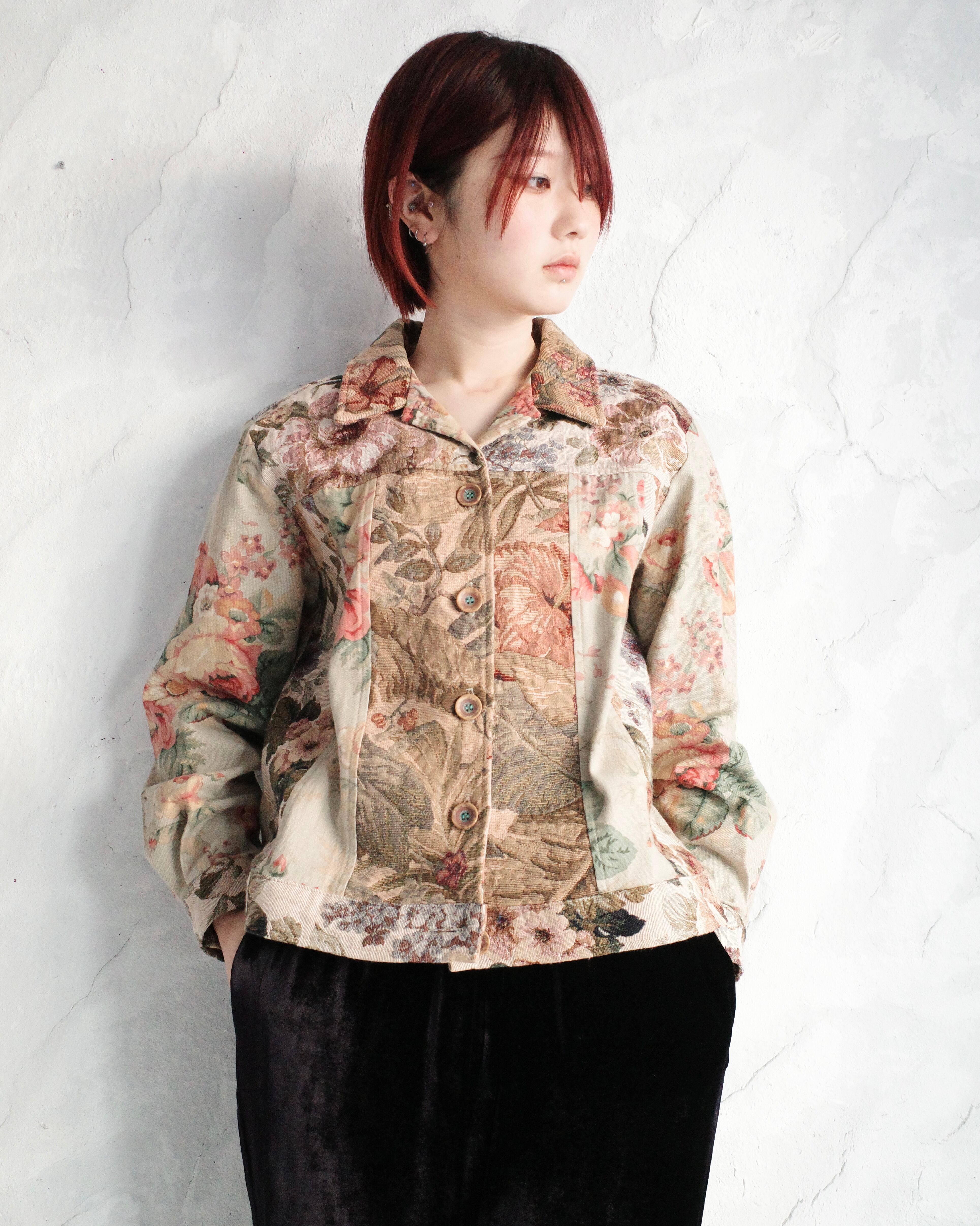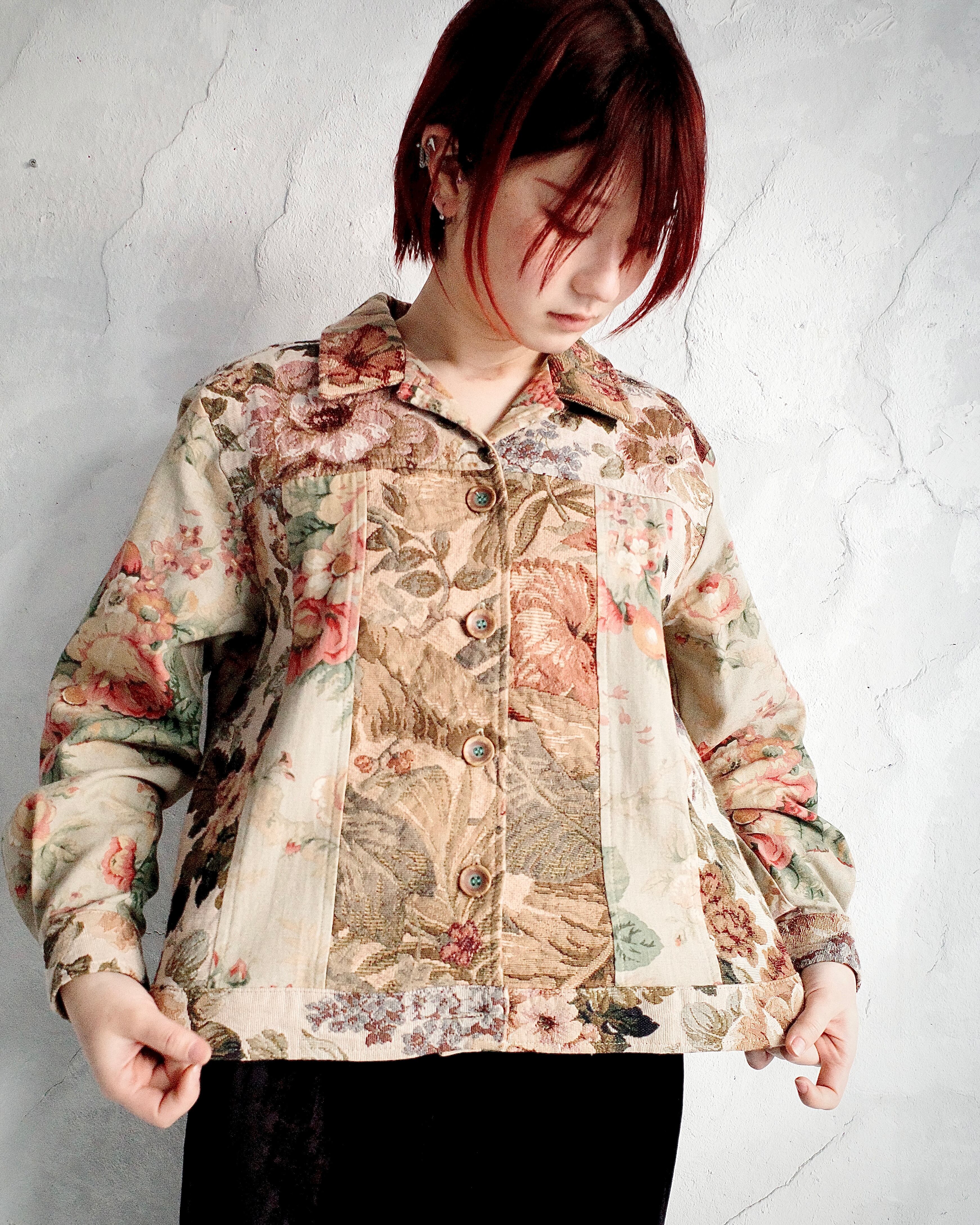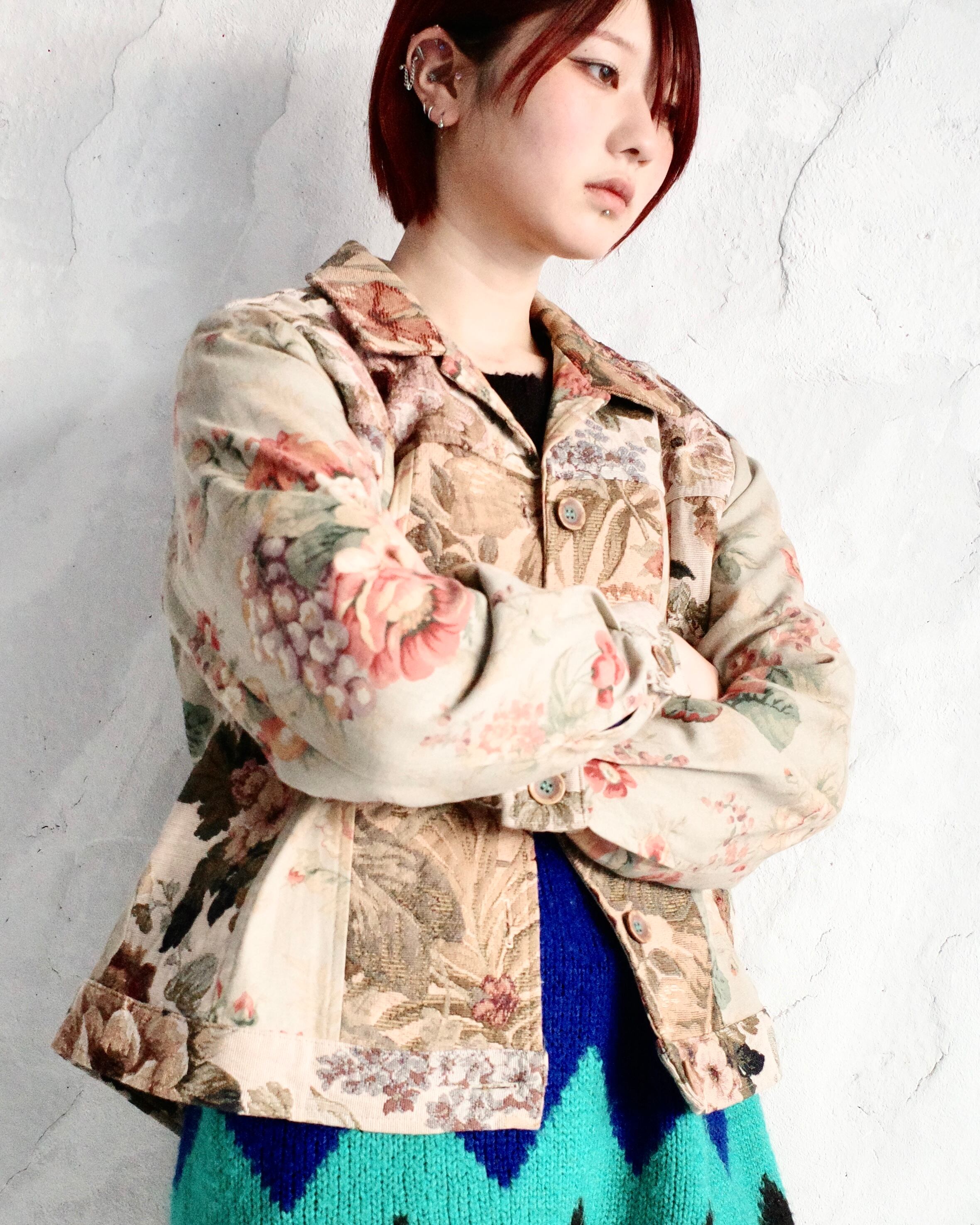 【90~00s Coldwater Creek】Floral Patchwork Tapestry Jacket