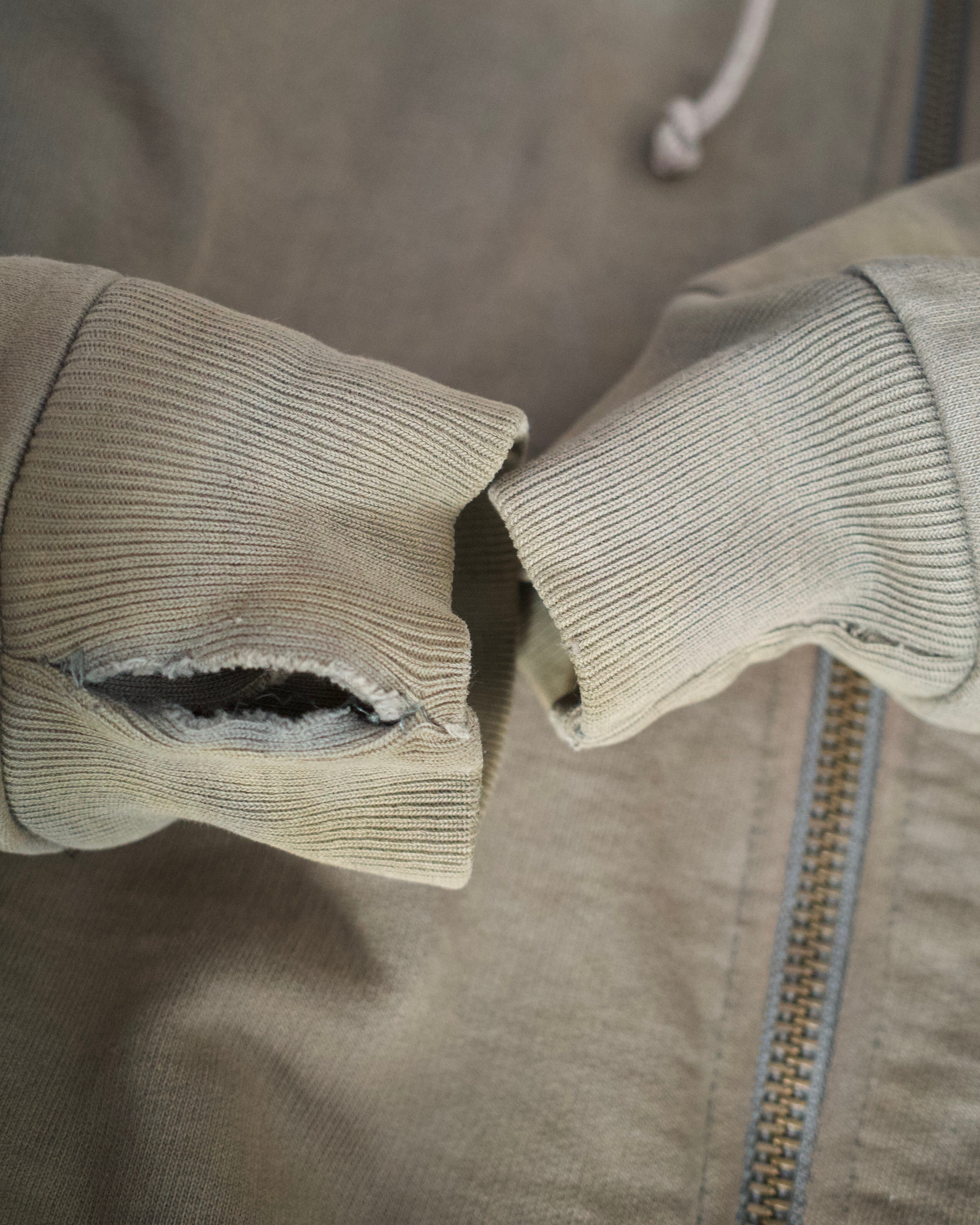 フード裏に汚れ。両袖にダメージ。また全体的にフェード等の使用感がございます。