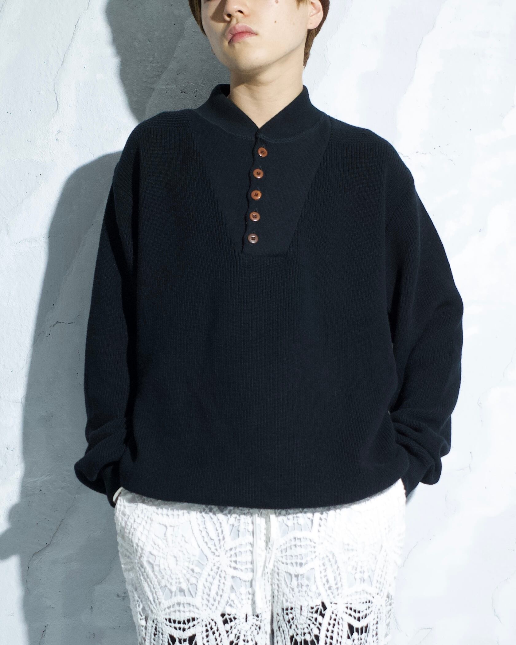 【90s LANDS'END】5 Buttons Henry Neck Knit