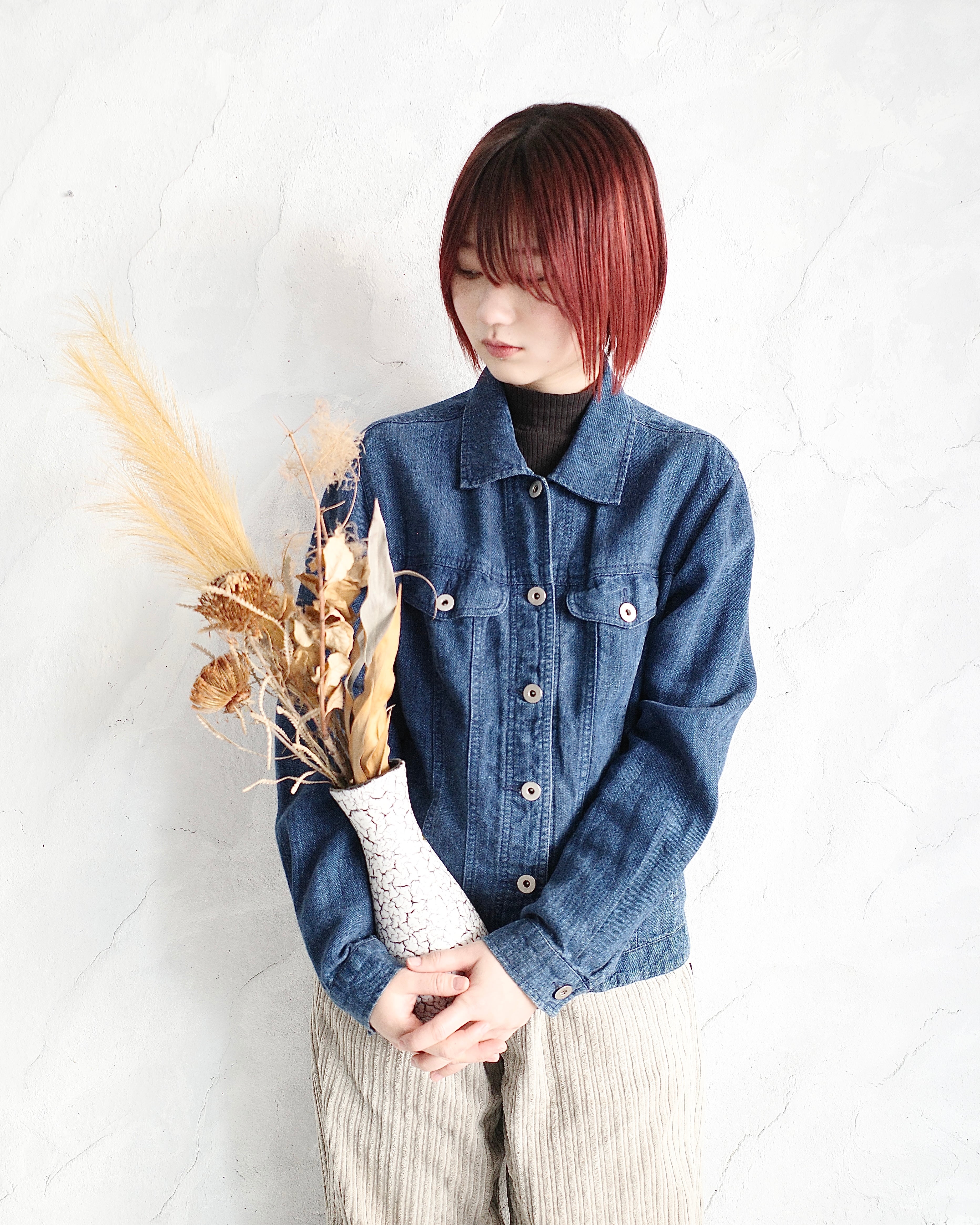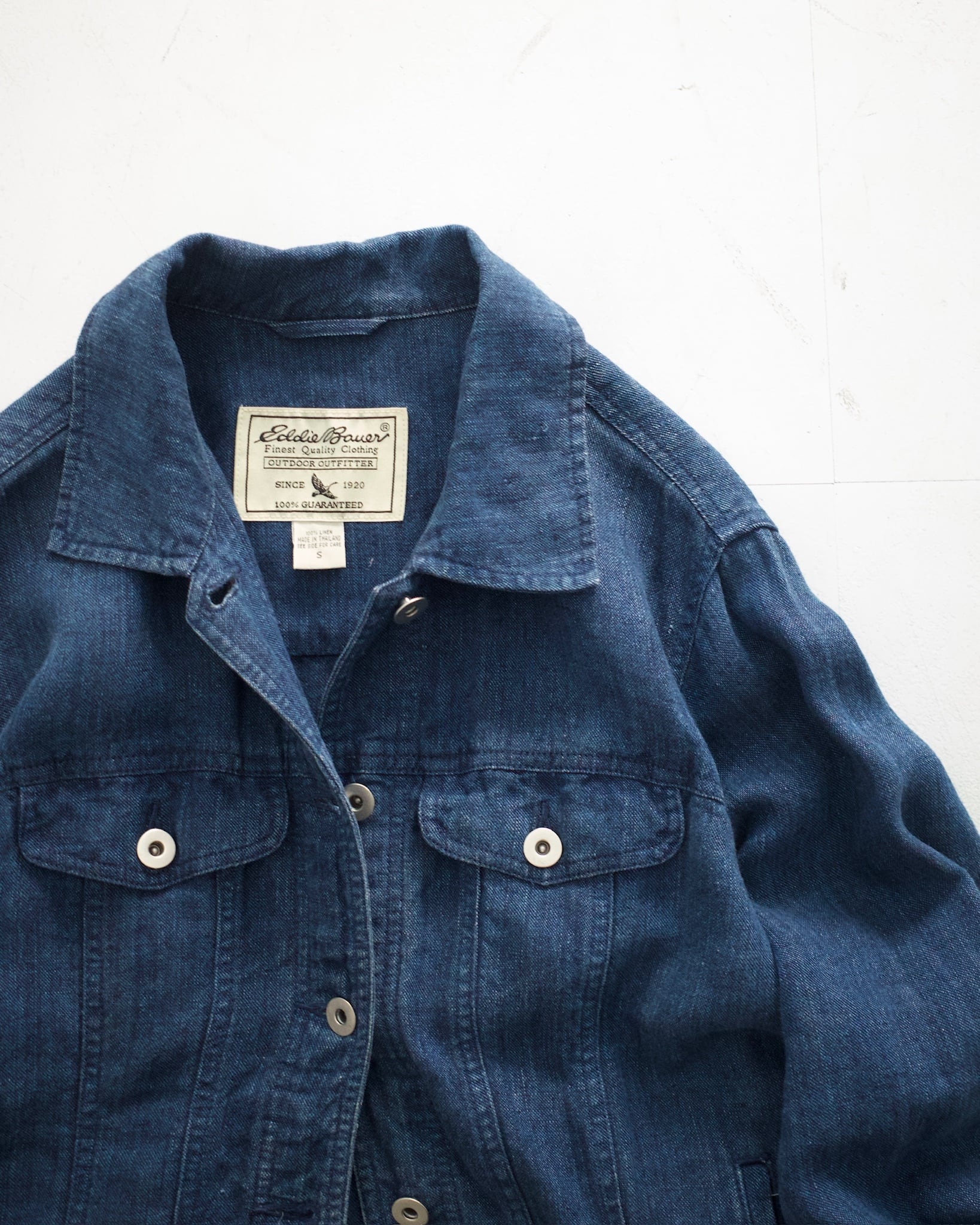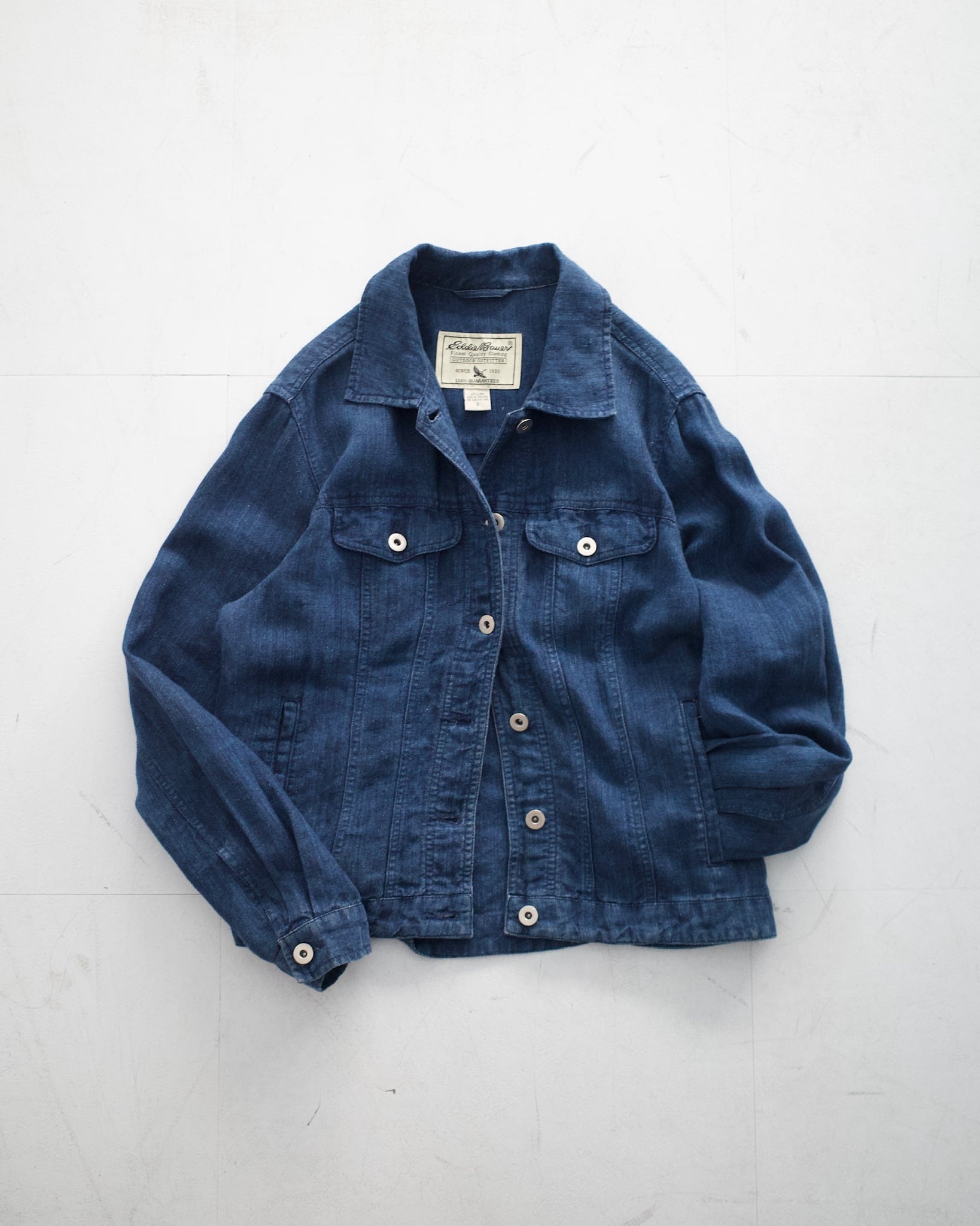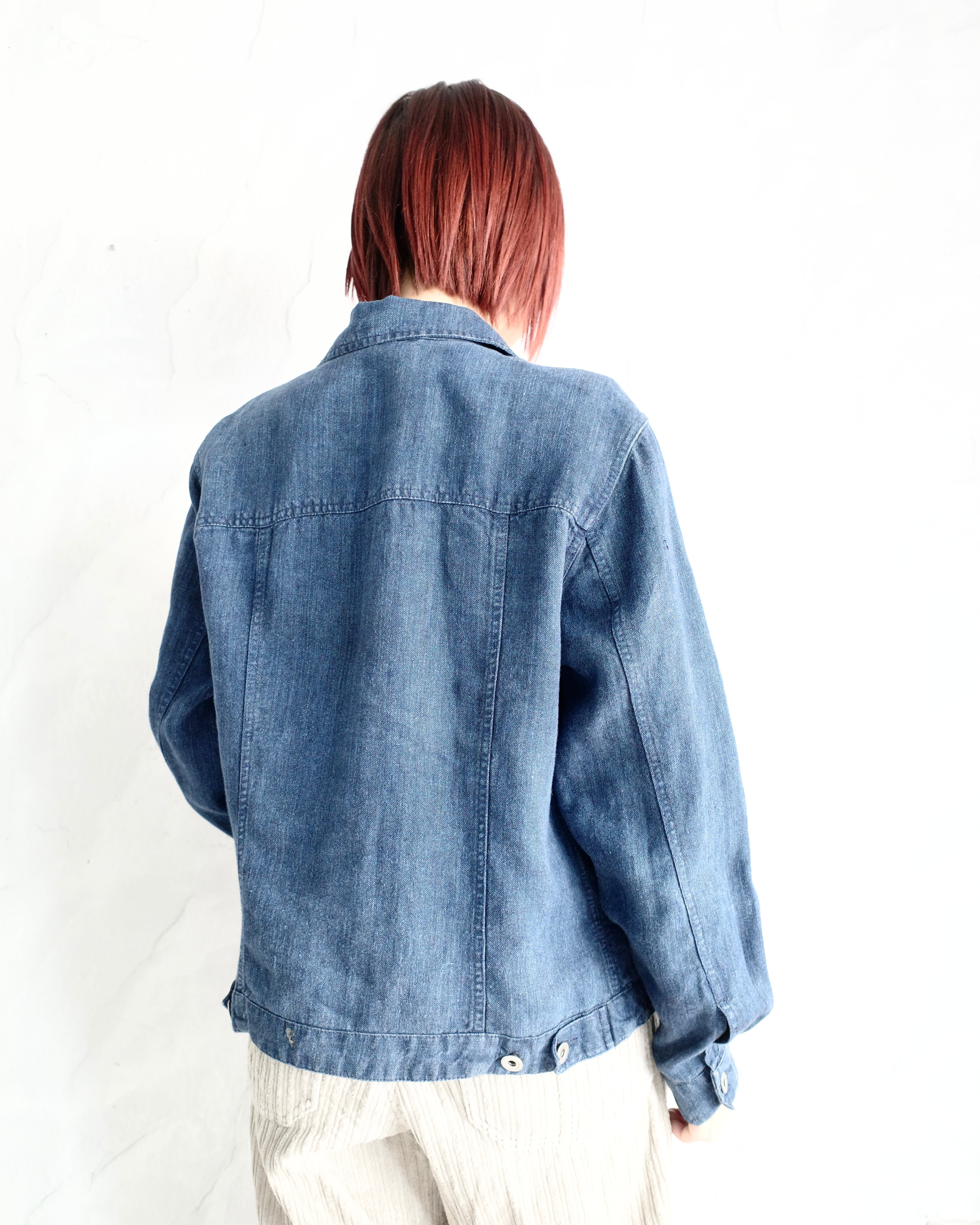 【00s Eddie Bouer】Denim Like Bule Linen Trucker Jacket