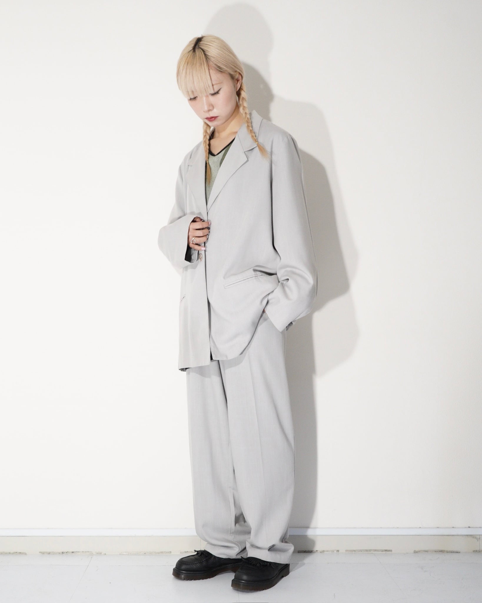 ホワイトグレーの明るい色味で、春らしい装いにぴったりです。