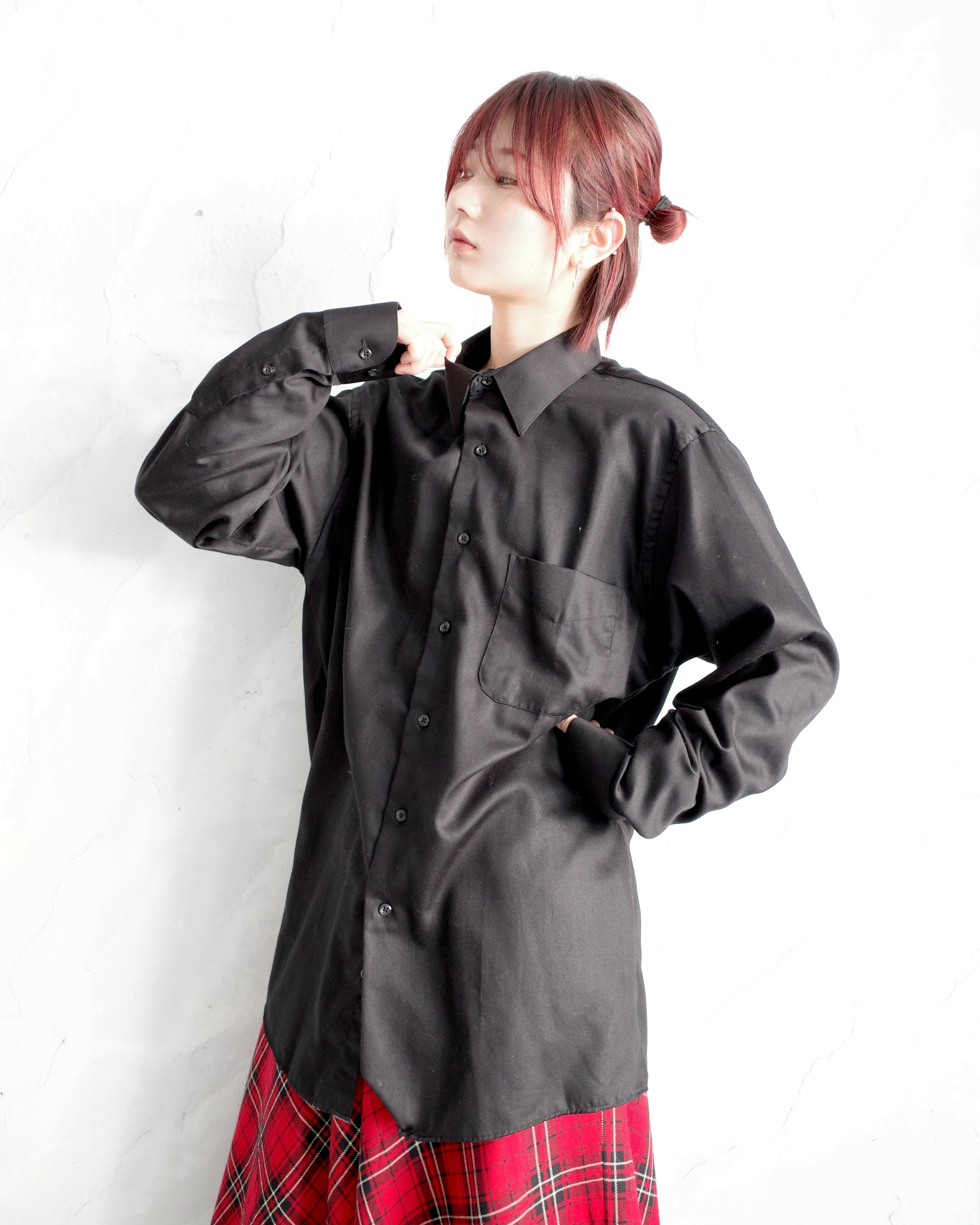 幅広く様々な着こなしで楽しんでいただける黒シャツです。
