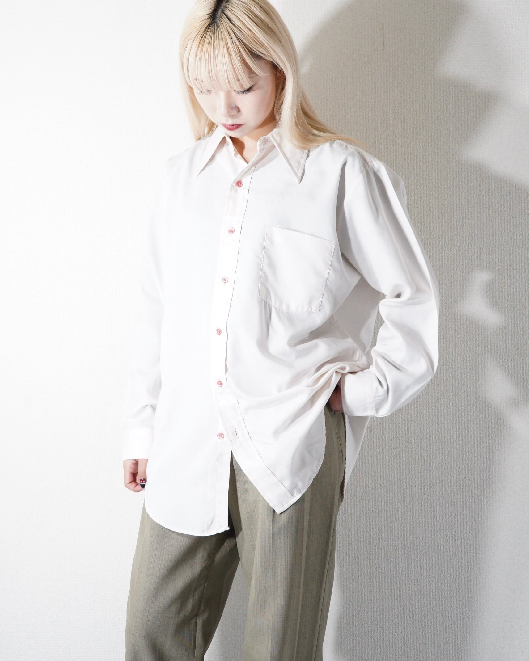 やわらかなペールピンクのシャツ。