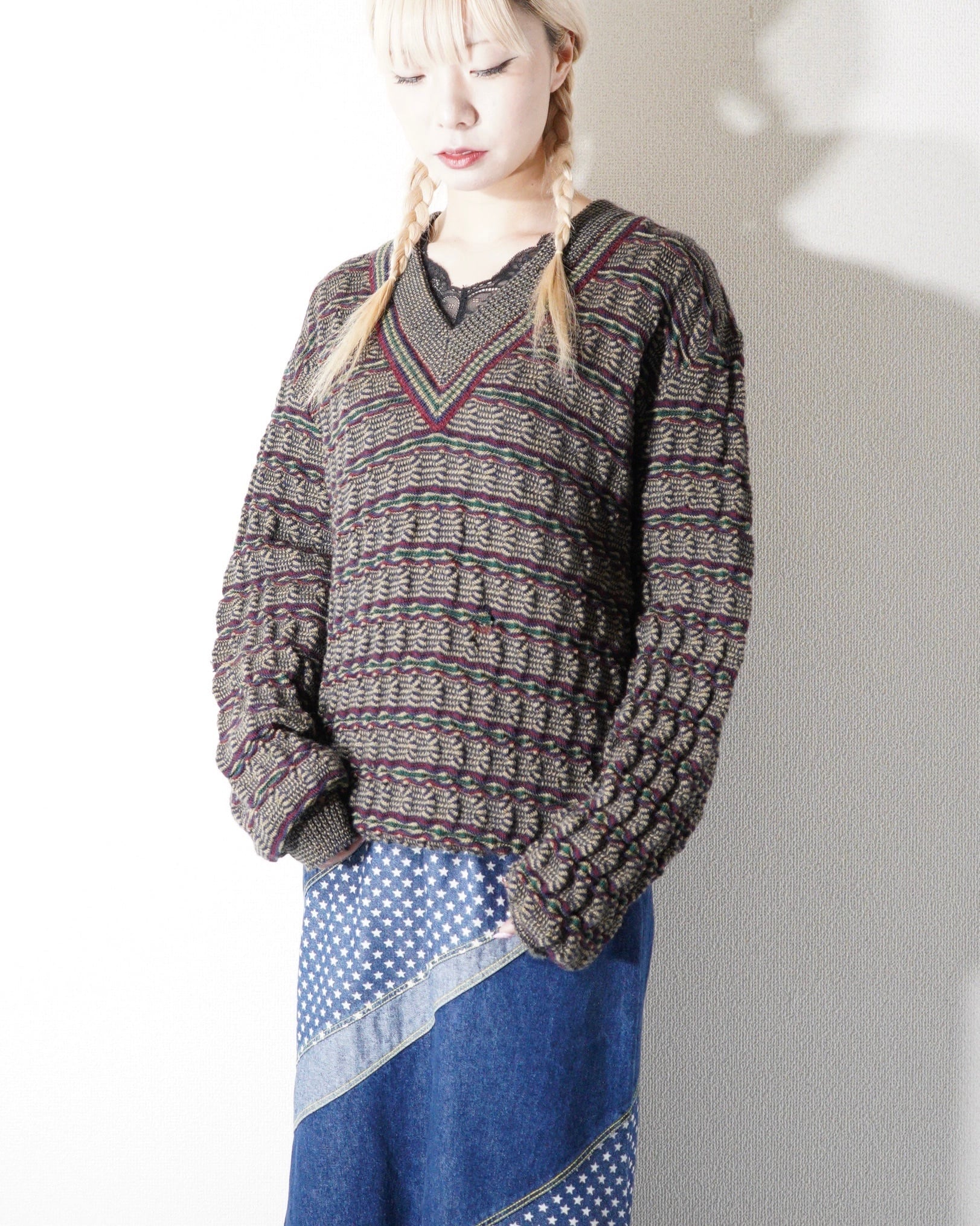 80s MISSONI V-neck 3D Knit