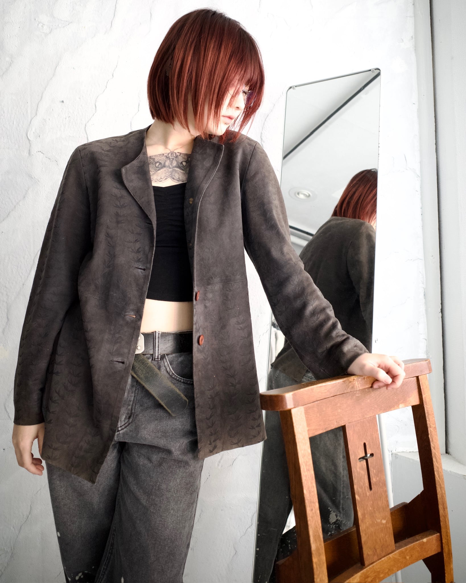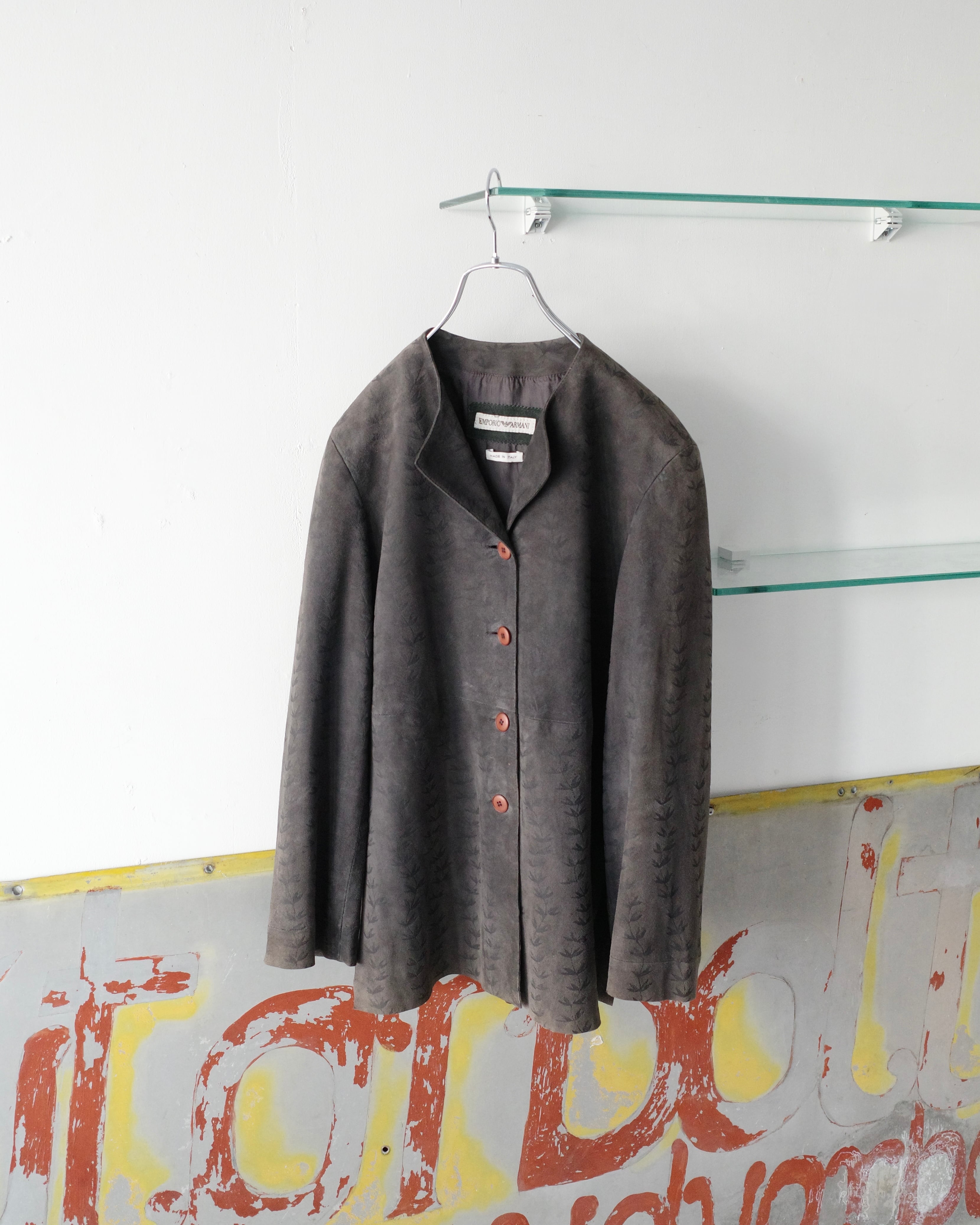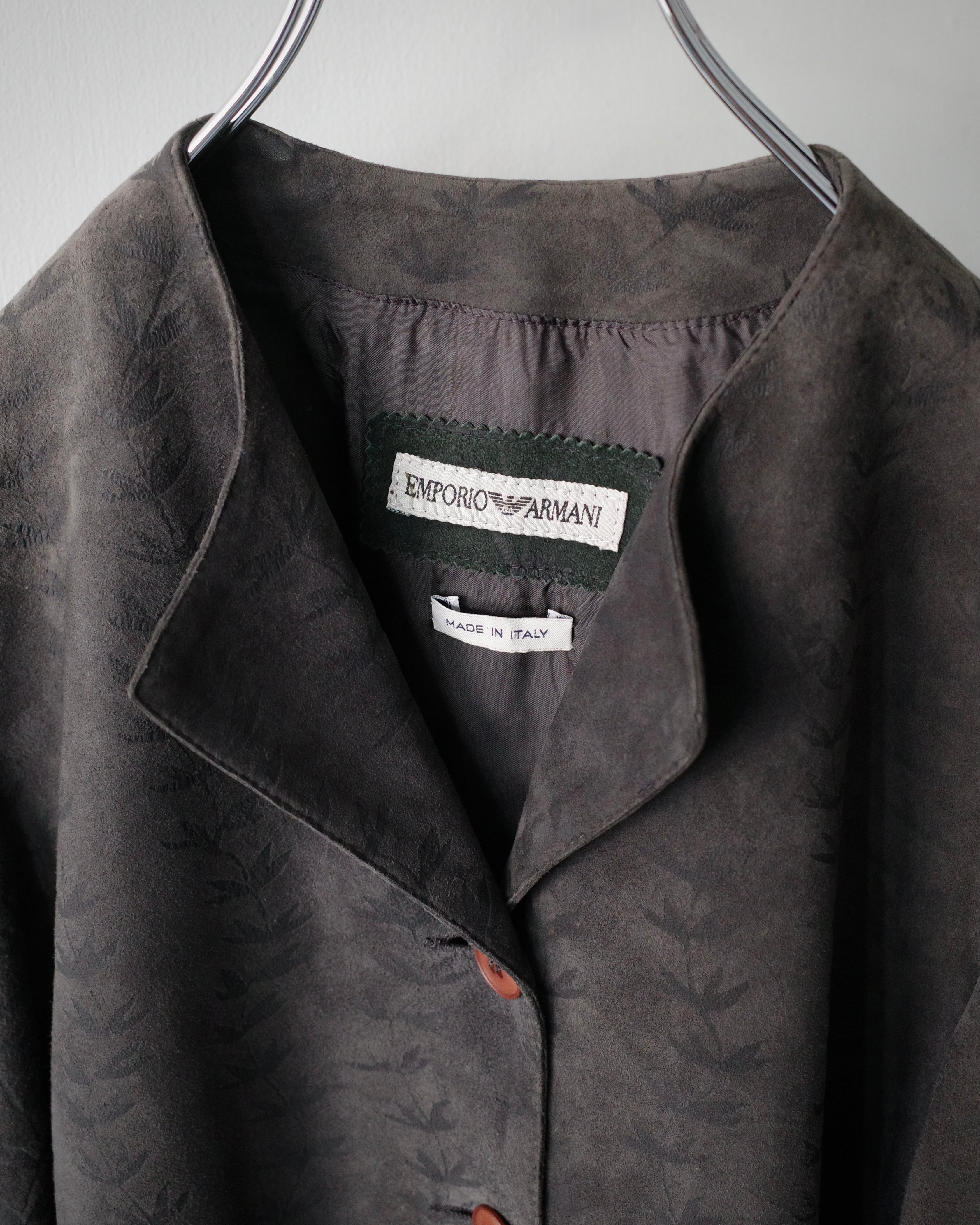 ・90s EMPORIO ARMANI Leaf Motif Goat Leather Jacket