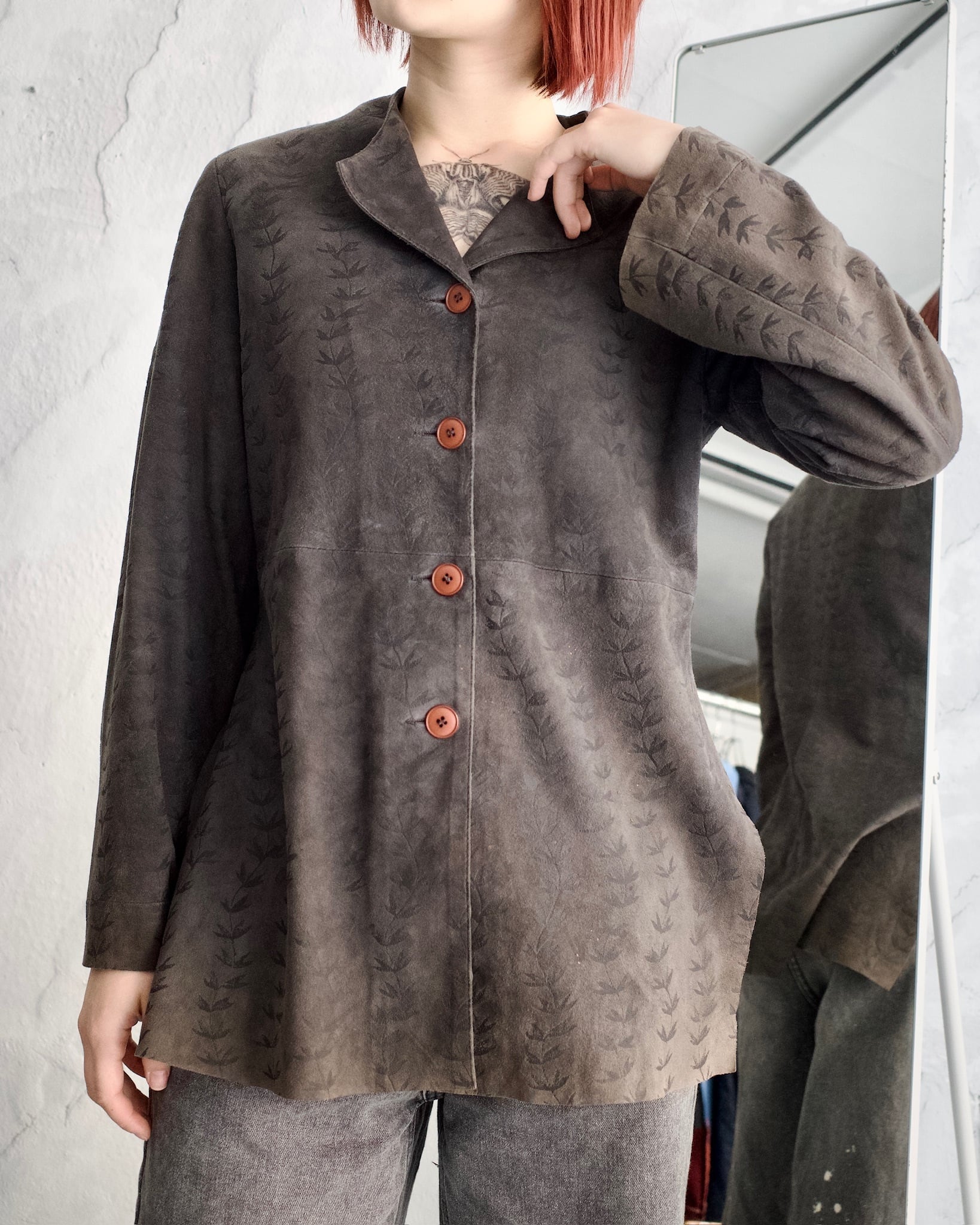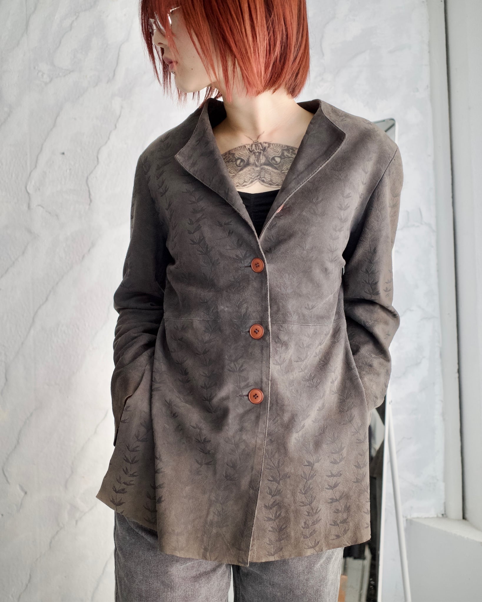 スエード一枚地で構成されたジャケット。