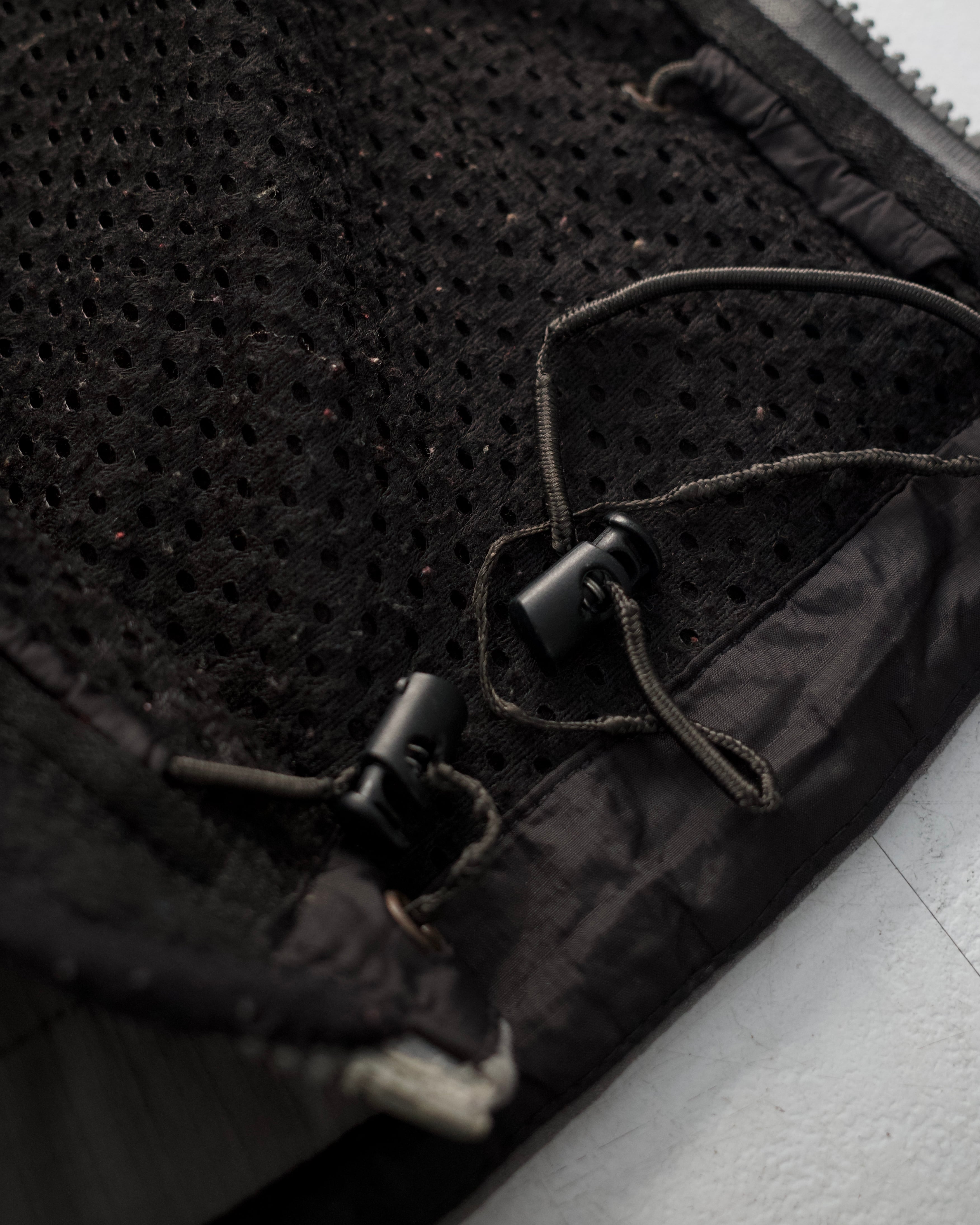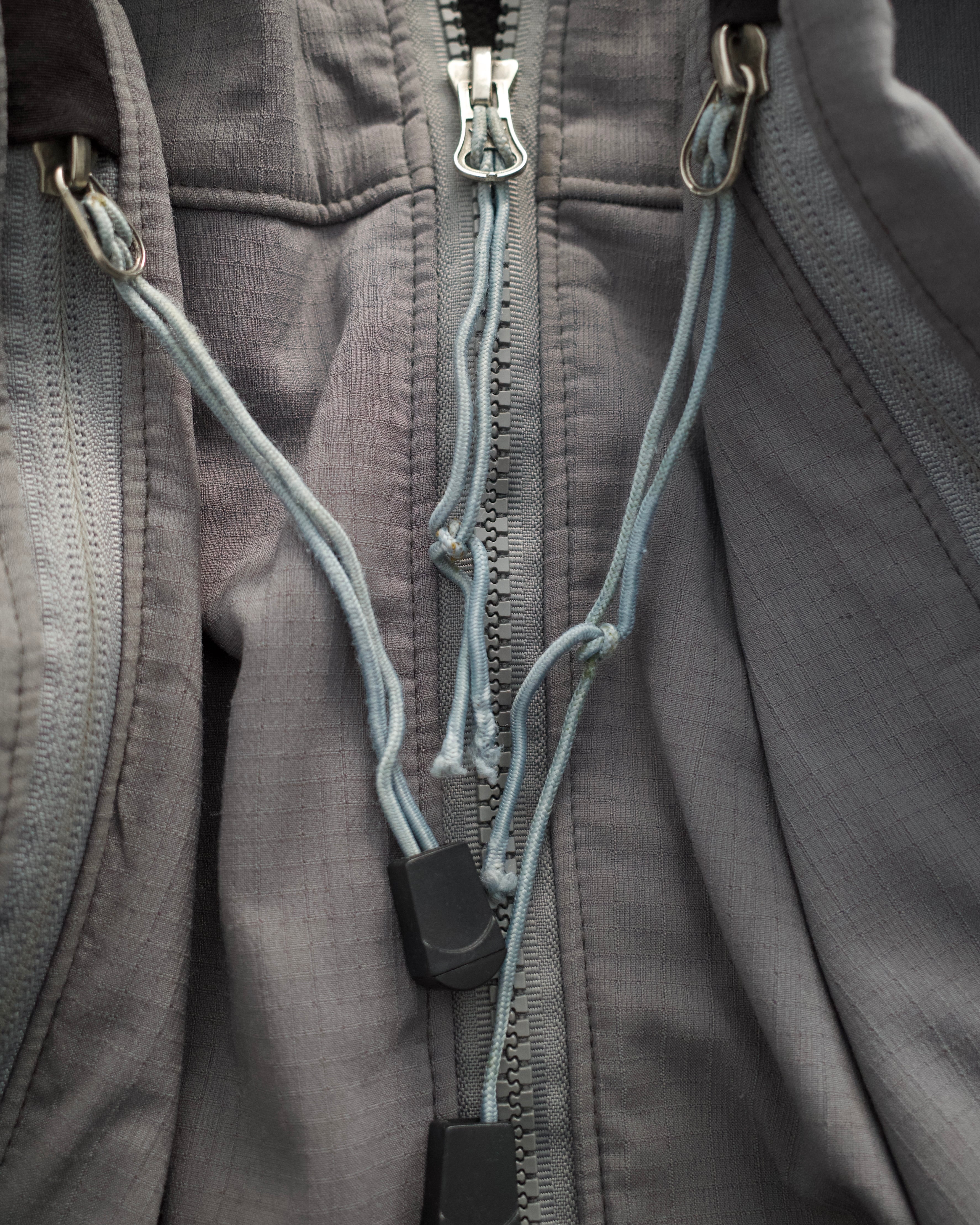 背タグの一部欠損。表地に若干の浮き。裏地には毛玉。フロント前立てや両側ポケットのジップ持ち手と、内側ドローコードに劣化がございます。