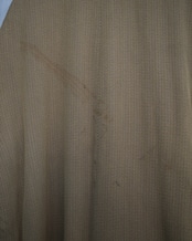 全体に傷。背面に汚れ。また恐らく洗濯されており全体的に特有の歪みがございます。