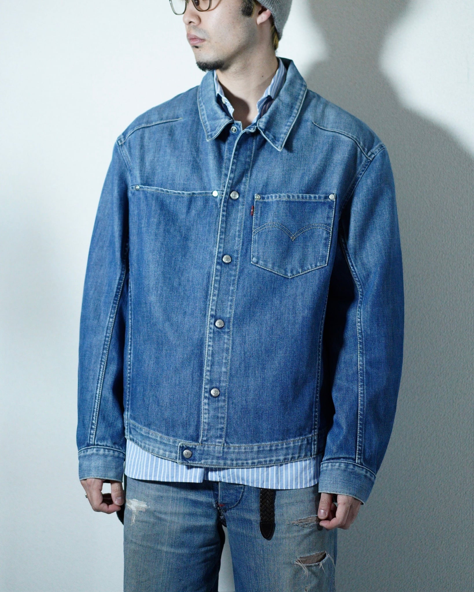 1999年、人間工学に基づきリーバイスにより作成された立体裁断シリーズ。従来のトラッカーなどよりも可動域などが広いため、めちゃ着やすいです。