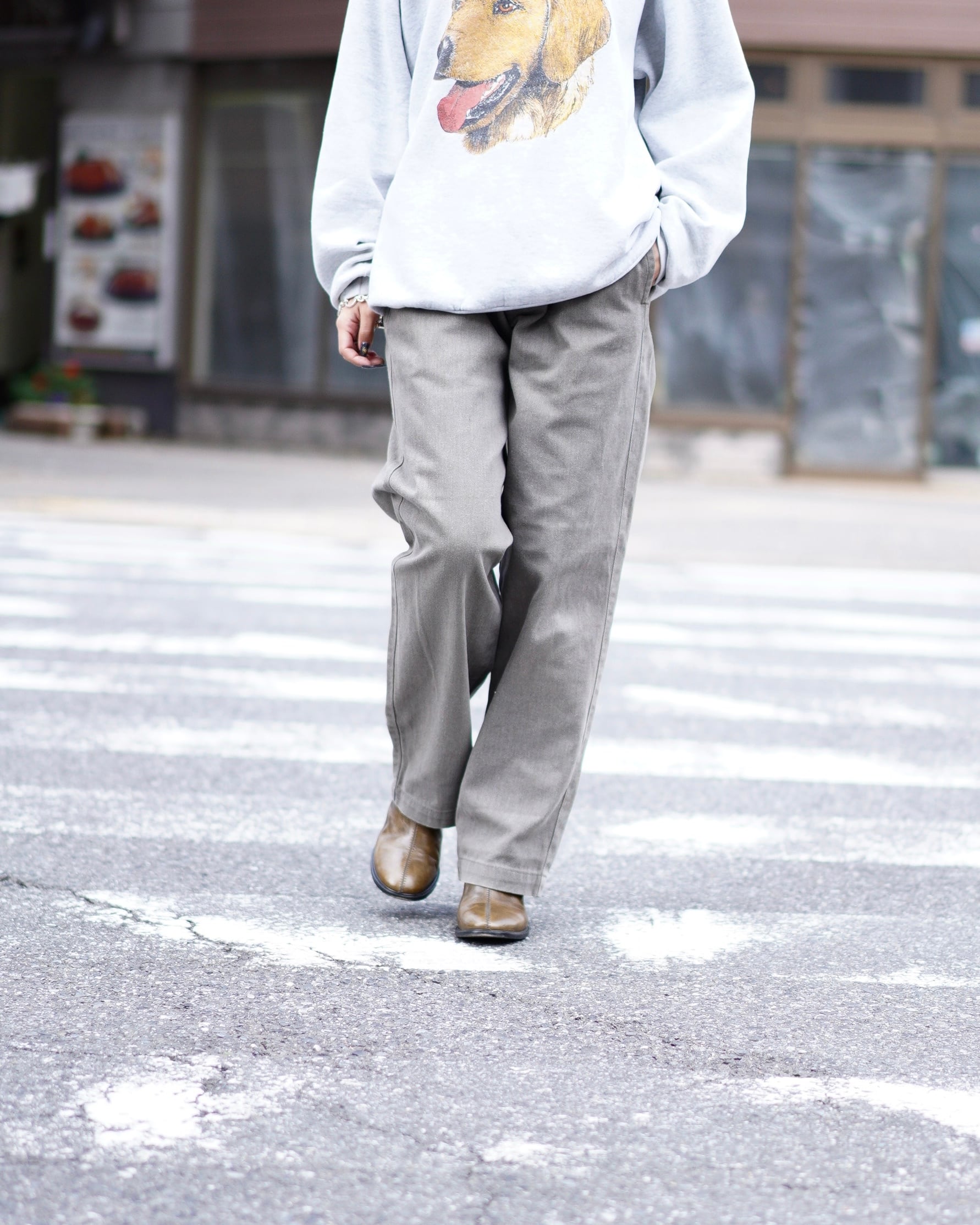 グレーとオリーブの中間のような落ち着いた色味。