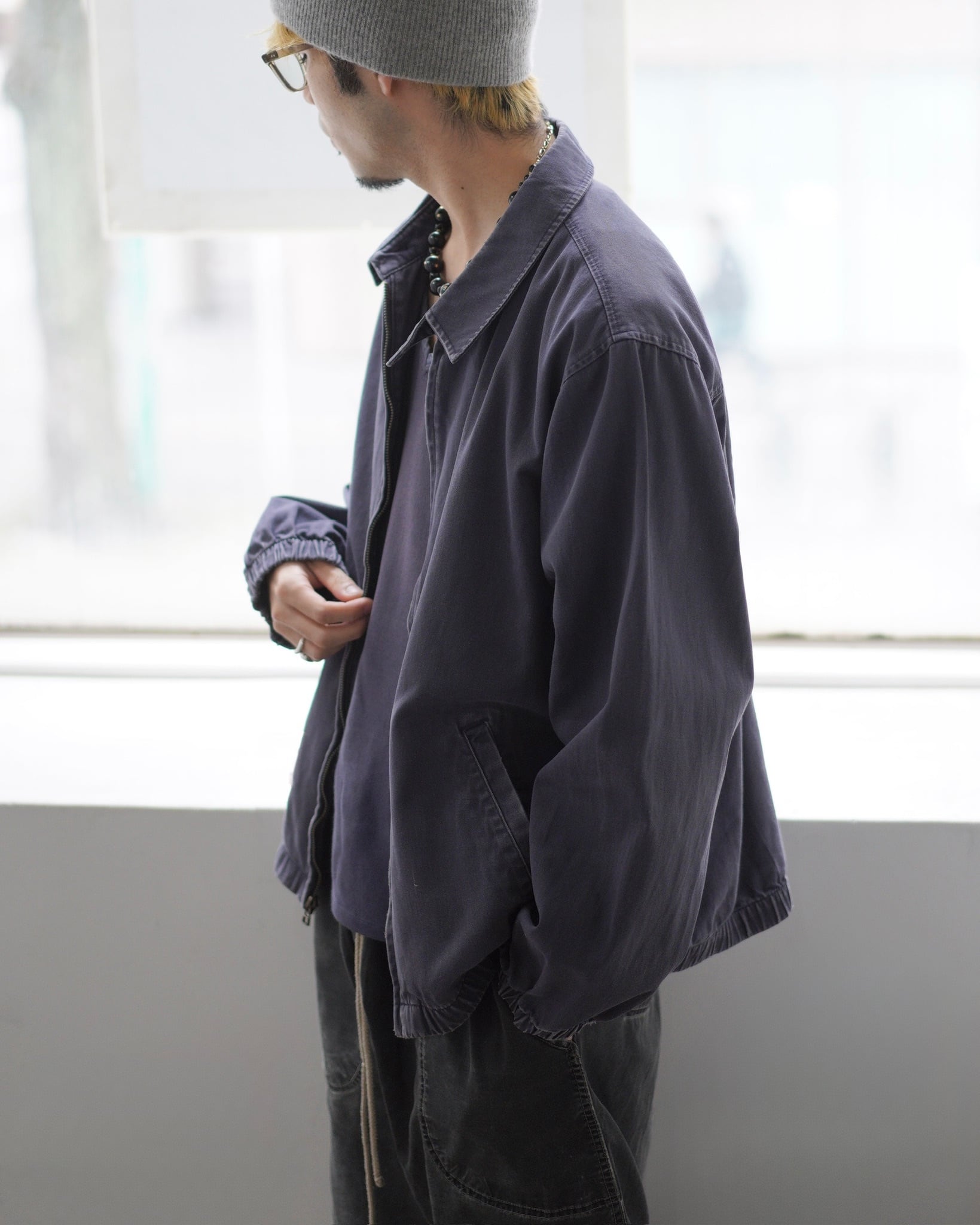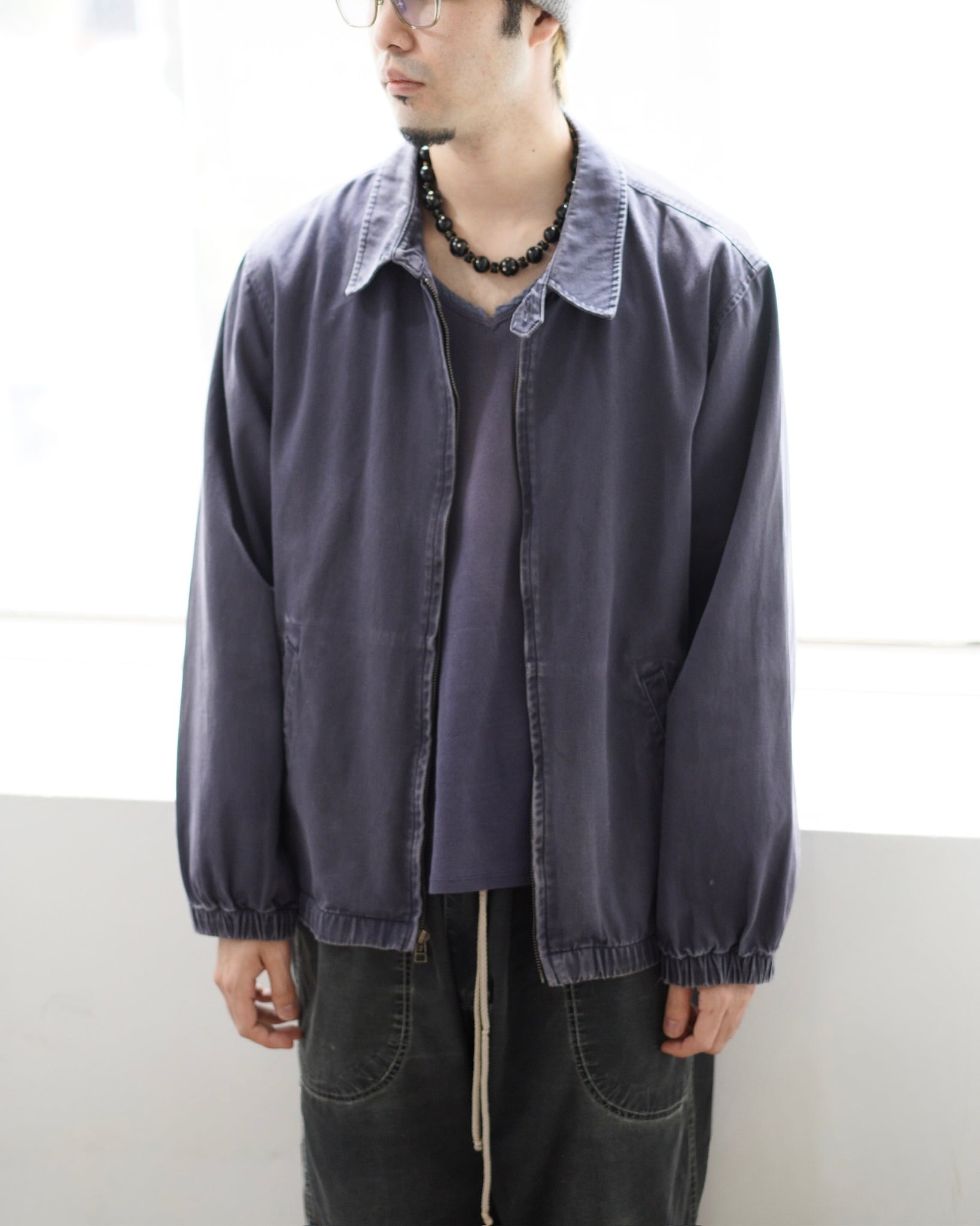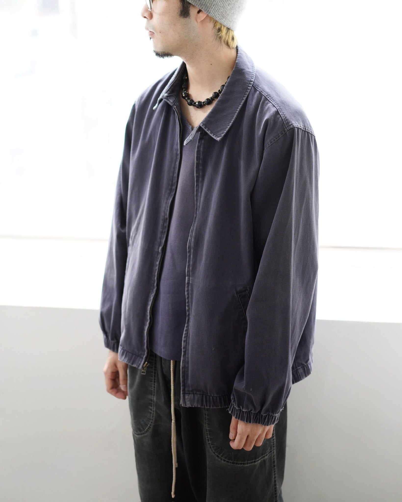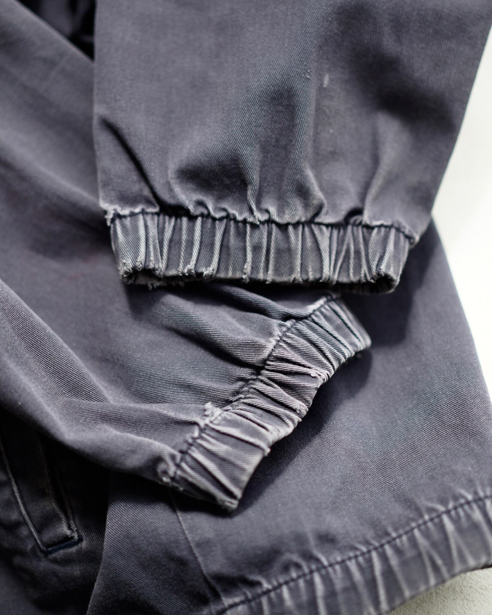 [B]全体的に色褪せあり。両袖口、裾のゴム部分にダメージあり。フロント左ポケット付近に茶汚れ。