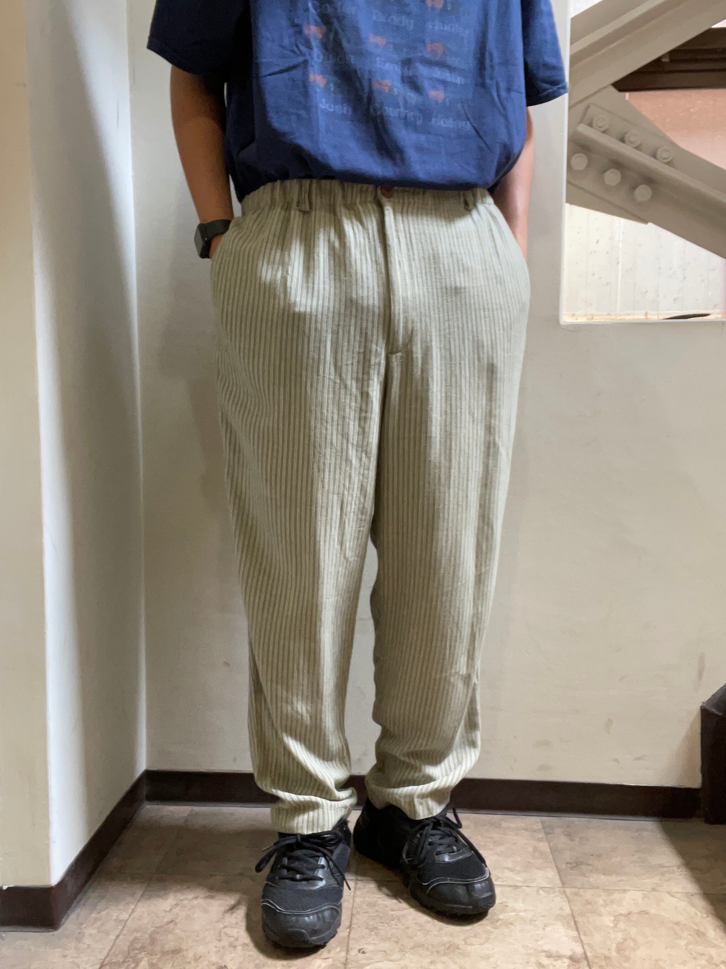 テーパードかかっててバルーンパンツのようなシルエット。