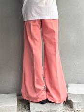 コーラルピンクのカラーリングがコーディネート全体を明るく魅せてくれます。ウエスト部分はゴムになっているので男女関係なく履きやすいパンツです。