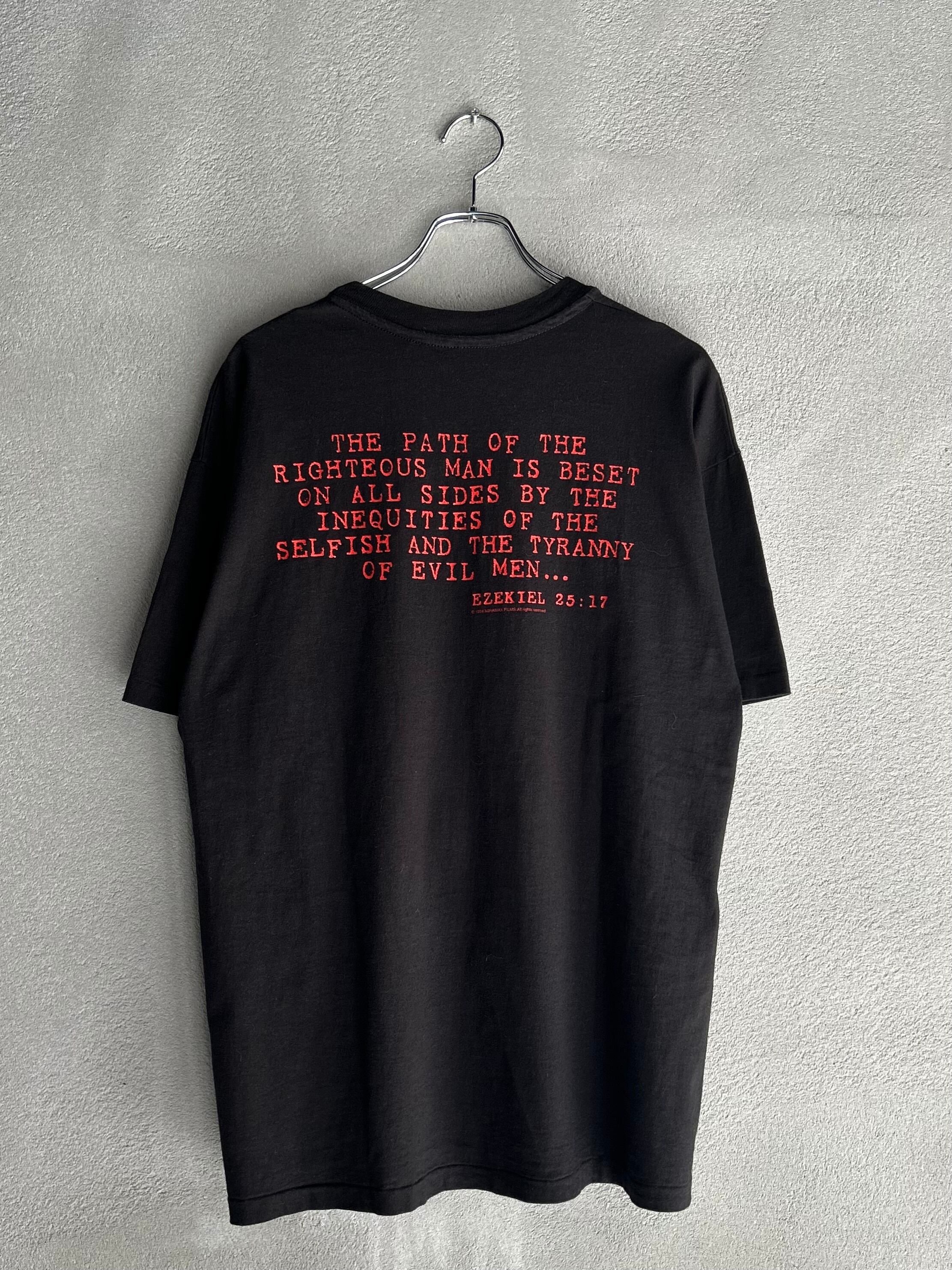 フロントは胸元にタイトルロゴのみと非常にシンプルなデザイン、バックは登場人物の中でも重要な立ち位置にいる殺し屋のジュールス・ウインフィールド(サミュエル・L・ジャクソン)のセリフが引用されております。
